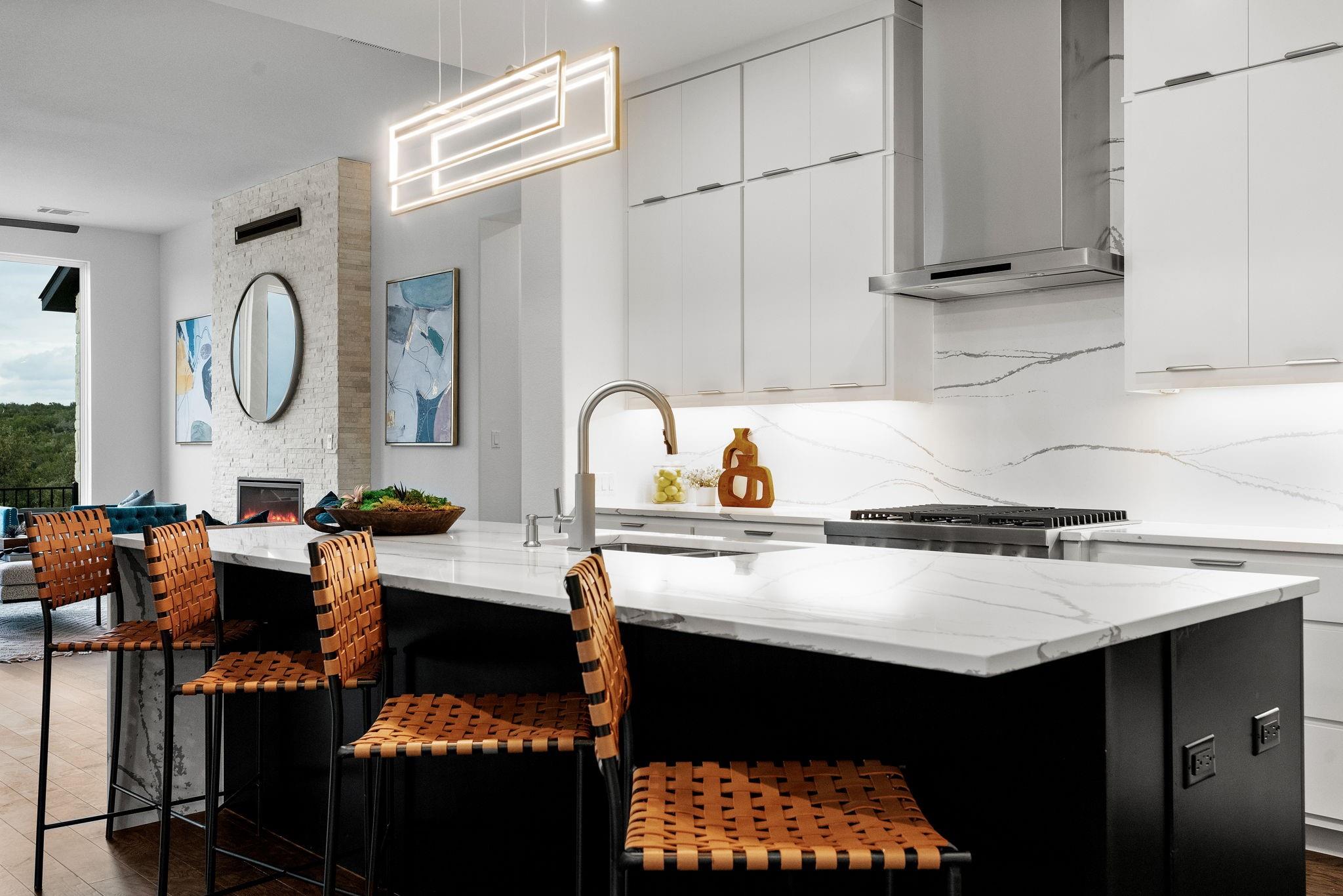 Take advantage of the benefits of a custom home, without the headache of building it yourself, and get it at a lower cost than it would take to build the home today! Nestled in the prestigious gated community of Creek's Edge, 6304 Caudill Ln, Austin, TX, unveils an unparalleled lifestyle on a private 1.7-acre lot with direct access to the serene Little Barton Creek. Boasting 5710 sqft of luxury, this brand-new custom home is a testament to meticulous craftsmanship and thoughtful design. A grand entrance sets the tone for the 5 bedrooms, 6 bathrooms, and a host of designer upgrades throughout. The chef's kitchen is a masterpiece, adorned with top-tier appliances and a walk-in pantry, ensuring culinary excellence. A dedicated office space provides a quiet retreat for work or study. Indulge in the luxury of a wine room, mudroom, and laundry room, all contributing to the seamless functionality of the home. The primary bedroom, located on the first floor, features a spa-like en-suite bath, complete with a large closet for added convenience. An additional guest suite downstairs offers privacy and comfort. Experience the epitome of indoor/outdoor living with an entertainer's dream patio, complete with a fire pit, outdoor kitchen, and a pool bath for convenience. The hill country views provide a picturesque backdrop for gatherings, and a second-floor balcony adds an extra layer of charm. Entertainment reaches new heights with a dedicated media room, perfect for movie nights or streaming marathons. The attached climate-controlled garage ensures comfort year-round, while a detached 3-car garage provides ample storage and flexibility. The expansive lot allows for future additions, with the potential to create your oasis, including a pool and guest casita. Located just minutes from the Hill Country Galleria and offering quick access to local schools, this property seamlessly blends luxury, privacy, and convenience. Be the first to call this masterpiece home.