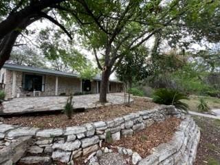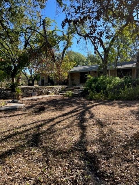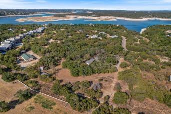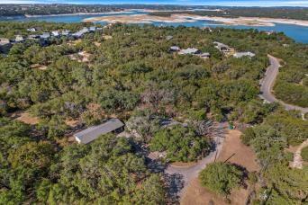 4.5 heavily wooded acres sitting on a hill directly across Eck Lane from Lake Travis, the property has an abundance of large trees (mainly live oaks and cedars) along with open pasture for animals of your choice (has been used as a small horse farm in the past). With new condo construction nearby it could be developed for new homes or enjoy a beautiful acreage tract for your dream home with abundant wildlife, large trees and the enjoyment of the peace and quiet. The 1978-bulit rock and wood 3 bedroom 2 bath home features a tile entry, rock fireplace, den/dining area open to a galley style kitchen with a breakfast bar, tile and stained concrete flooring, large covered front porch with huge rock back patio featuring a rock BBQ pit and plenty of light from outside for the home...also a perfect spot to build your dream home if desired with plenty of privacy. The large, sloping front yard is rock-terraced for your landscaping visions and the back features a two-car carport with an attached workshop. The property is fenced and cross-fenced with a natural waterway with a waterfall during the rainy times. Wildlife is abundant and you'll enjoy the peace and quiet...you won't want to miss this property with it's abundant potential for many uses. The Value is In the Land and Location!! The Seller welcomes Offers! Some OWNER FINANCING Available!!!