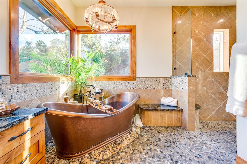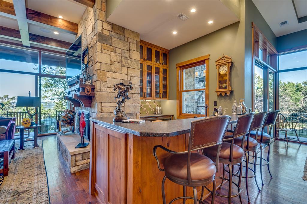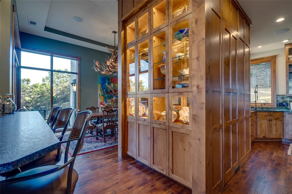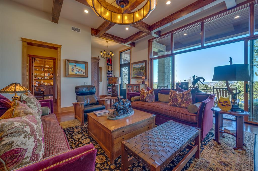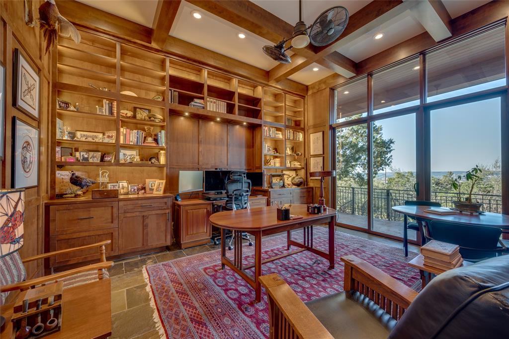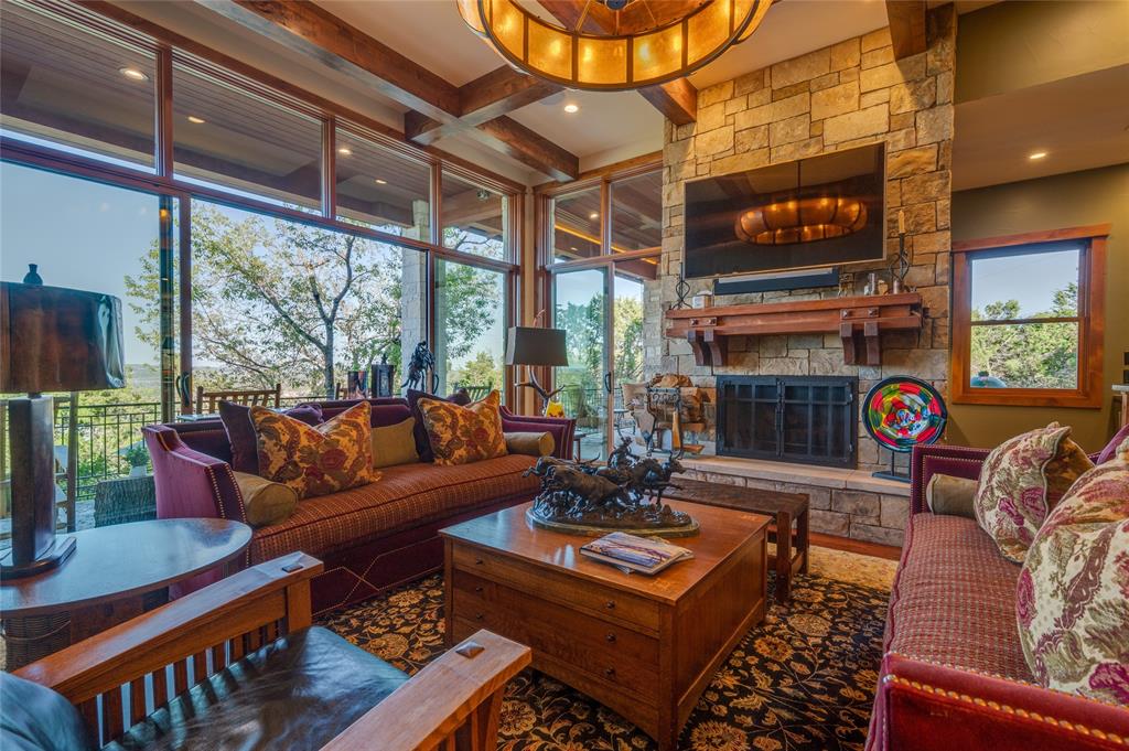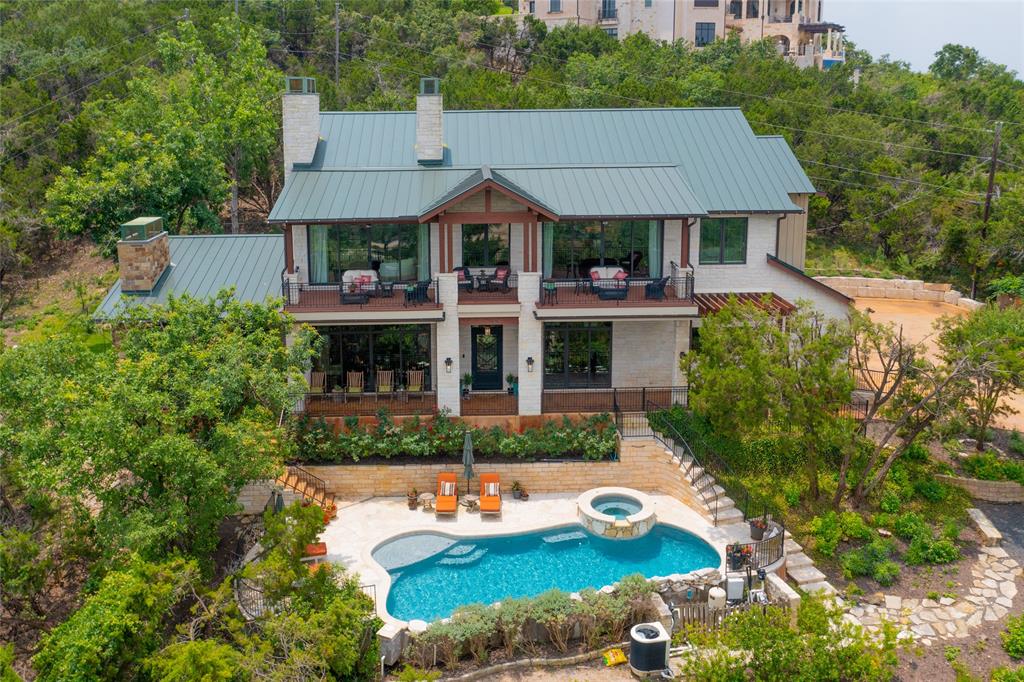 Welcome your most discerning buyers to this meticulously designed California Craftsman custom home in the Texas Hill Country. Only the finest materials were used in this stunning residence located in the highly-rated Eanes School District and offers breathtaking views from both levels with the convenience of a 5-person elevator! With four bedrooms, six full baths, and over 5367 square feet of luxurious living space, this home is perfect for entertaining and spending quality time with loved ones. The open and airy atmosphere, highlighted by 12-foot ceilings downstairs and 10-foot ceilings upstairs, creates a welcoming ambiance. Sliding glass walls in the Great Room, Office, and Dining Room provide seamless indoor-outdoor living, allowing you to appreciate the surrounding natural beauty. The Gourmet Kitchen features top-of-the-line appliances, a Butler's Pantry, and a climate-controlled wine closet. The home boasts craftsman-style Alder doors and millwork, complemented by mesquite hardwood floors and custom travertine, slate, onyx, tile, and wool carpets. The inviting primary suite features long-distance views, a wine/coffee bar, and dual primary baths. Three masonry fireplaces add elegance and warmth. Outside, a covered cooking and dining area with a large stone fireplace is perfect for entertaining. The Summer kitchen includes professional-grade appliances and leads to a resort-like pool and hot tub. The garage is a car enthusiast's dream, accommodating three cars and a golf cart and offering ample storage space. The home is equipped with a media/entertainment system, commercial-grade WiFi, Internet-controlled HVAC, Pool Equipment, and Irrigation. Energy-efficient features include a propane gas-fueled generator, a tankless hot water system, a metal roof, and full exterior spray foam insulation. Experience the unparalleled beauty and luxury of this truly unique custom home.