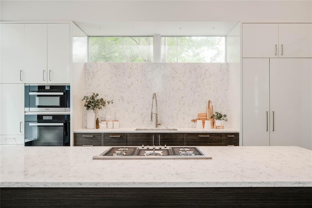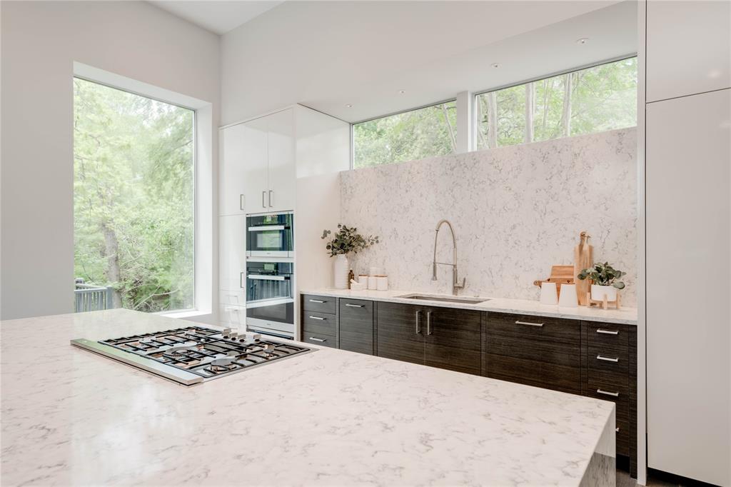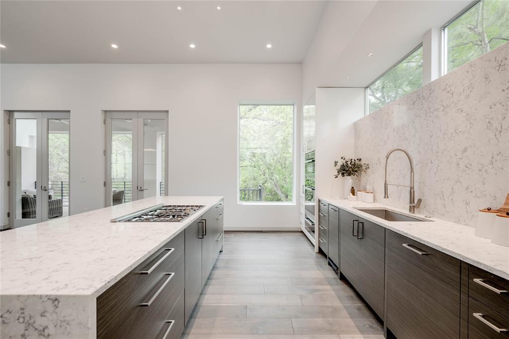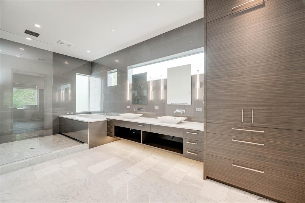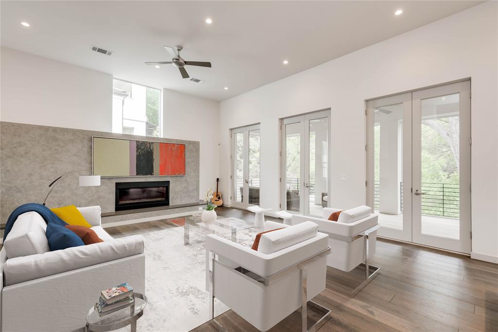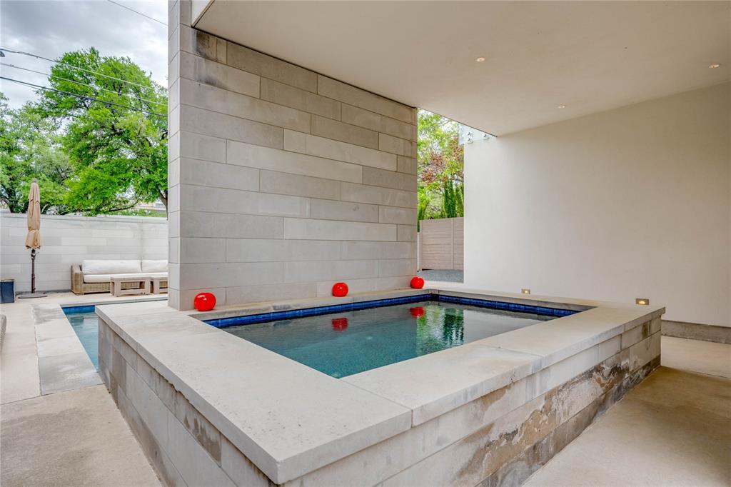 Discover this stunning, warm contemporary gem nestled behind a private wall in Central Austin's heart, merging urban convenience with nature's tranquility. The screened-in back porch invites al fresco dining, serene mornings, and evening contemplation. Active Austinites can access the Shoal Creek Hike & Bike Trail within 50 steps, offering a scenic route to downtown along the creek. The property boasts a private pool, water features, and a covered hot tub. Inside, you'll find cozy French Oak flooring, sleek glass stair railings, a modern Venetian plaster linear gas fireplace, and high ceilings. The gourmet kitchen is equipped with Miele appliances, a 36" cooktop, a Miele steam oven, and a built-in paneled refrigerator. A large butler's pantry can be concealed, providing the perfect space for everyday appliances. Additional kitchen highlights include a waterfall edge island and solid slab backsplash. The primary suite is a haven for rest and rejuvenation, featuring a luxurious bath with a floating vanity, dual sinks, marble tile, a dual-headed walk-in shower, and a deep soaking tub. This suite also offers two separate walk-in closets. Each of the other three-bedroom suites includes en-suite bathrooms and ample closet space, with one suite located on the main level. The glass-doored two-car garage comes with an electric car charging dock and storage space. Enjoy a bonus lower-level gym or craft room, offering a picturesque creek view and complete privacy from the rest of the home. Gated for privacy, this home is within walking distance to shopping, high-quality groceries, and superb restaurants. Austin's top private school, St. Andrews, is just across the street. Located mere minutes from four major hospitals and The University of Texas, this home is perfect for doctors and professors.