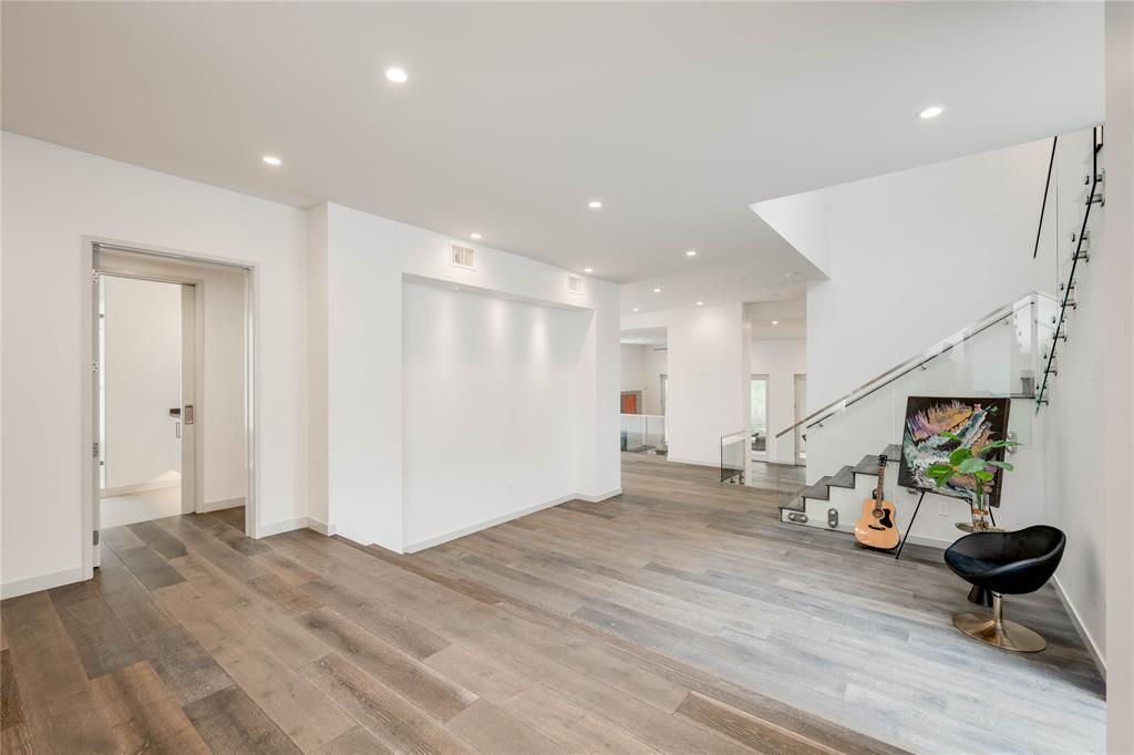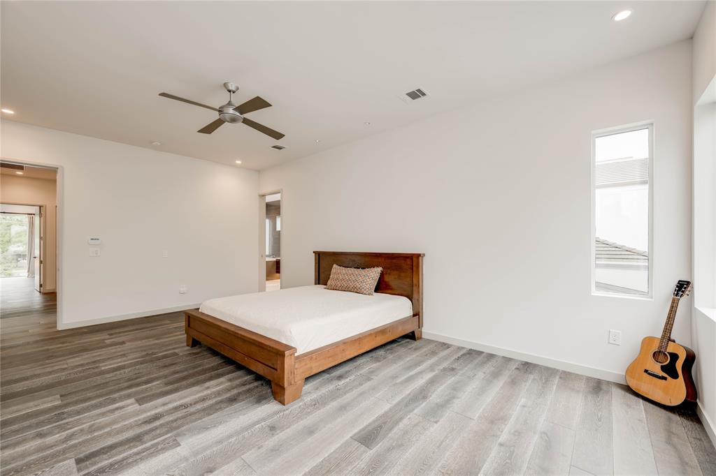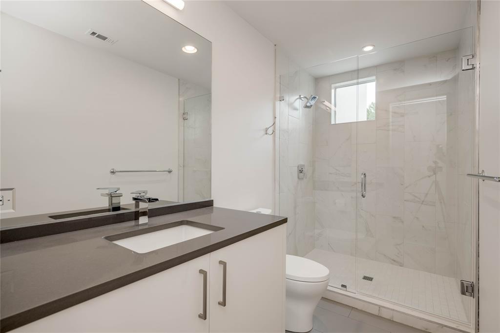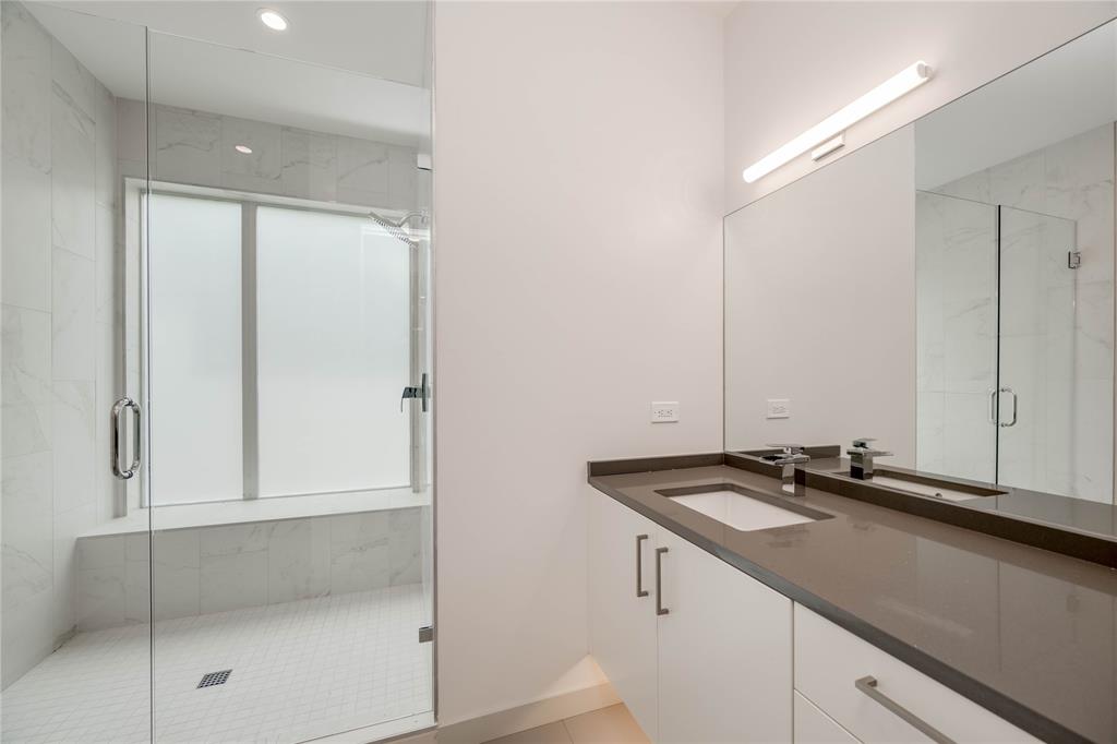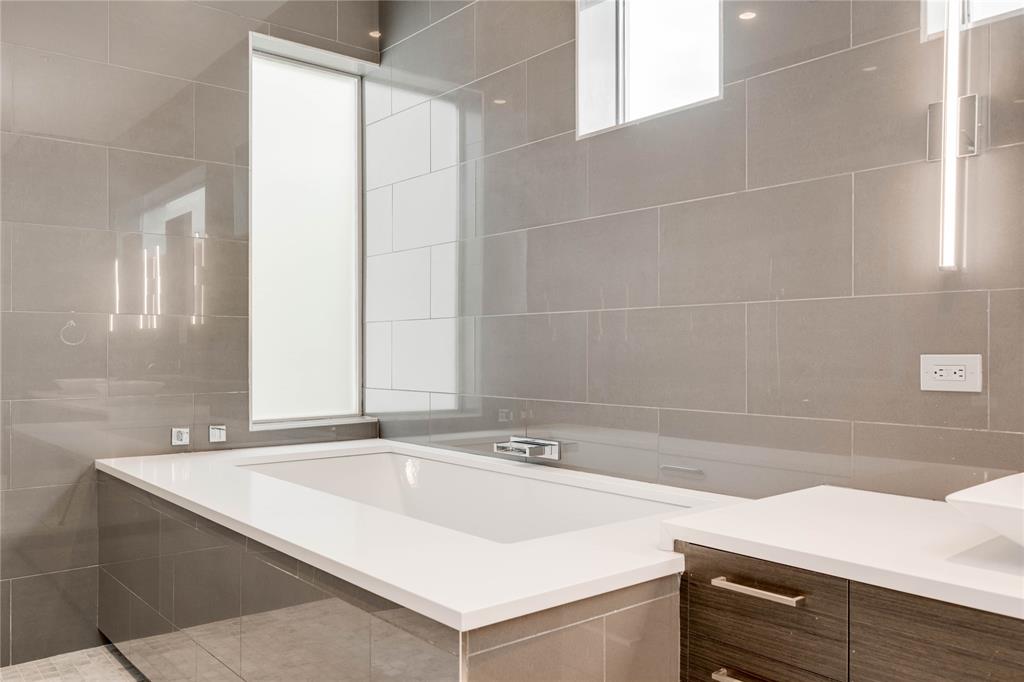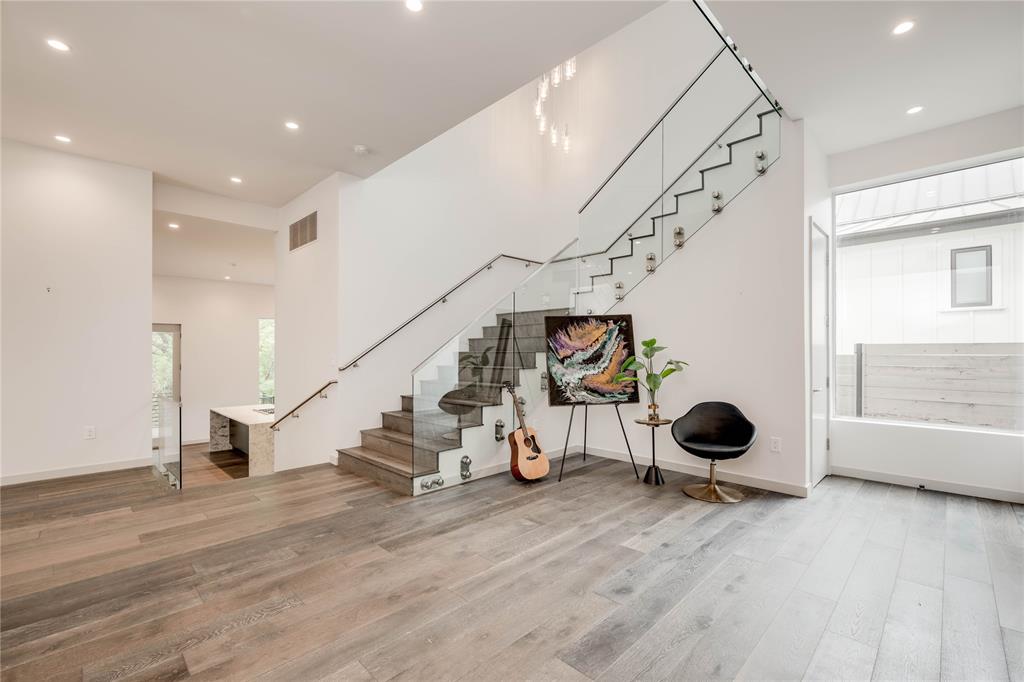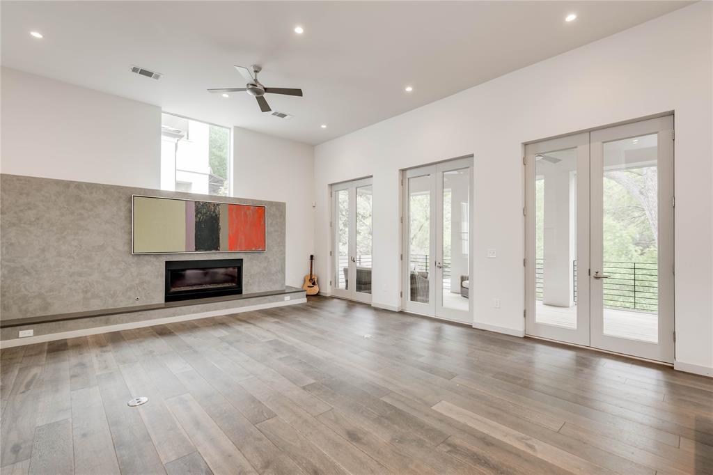 Discover this stunning, warm contemporary gem nestled behind a private wall in Central Austin's heart, merging urban convenience with nature's tranquility. The screened-in back porch invites al fresco dining, serene mornings, and evening contemplation. Active Austinites can access the Shoal Creek Hike & Bike Trail within 50 steps, offering a scenic route to downtown along the creek. The property boasts a private pool, water features, and a covered hot tub. Inside, you'll find cozy French Oak flooring, sleek glass stair railings, a modern Venetian plaster linear gas fireplace, and high ceilings. The gourmet kitchen is equipped with Miele appliances, a 36" cooktop, a Miele steam oven, and a built-in paneled refrigerator. A large butler's pantry can be concealed, providing the perfect space for everyday appliances. Additional kitchen highlights include a waterfall edge island and solid slab backsplash. The primary suite is a haven for rest and rejuvenation, featuring a luxurious bath with a floating vanity, dual sinks, marble tile, a dual-headed walk-in shower, and a deep soaking tub. This suite also offers two separate walk-in closets. Each of the other three-bedroom suites includes en-suite bathrooms and ample closet space, with one suite located on the main level. The glass-doored two-car garage comes with an electric car charging dock and storage space. Enjoy a bonus lower-level gym or craft room, offering a picturesque creek view and complete privacy from the rest of the home. Gated for privacy, this home is within walking distance to shopping, high-quality groceries, and superb restaurants. Austin's top private school, St. Andrews, is just across the street. Located mere minutes from four major hospitals and The University of Texas, this home is perfect for doctors and professors.