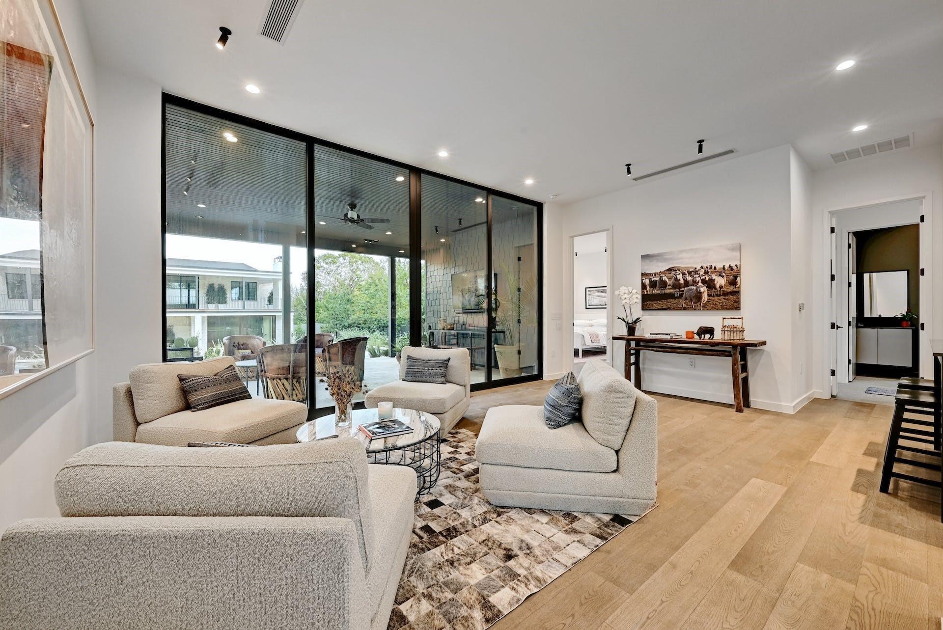 A gated, Two Home Estate, spread out on over a ONE-HALF ACRE in Central Austin. – Zilker – coveted 78704. 5125 sq ft • 5 Bedrooms including 2 Primary Suites • 4 Bathrooms • 2 Powder Rooms • 3 Car Garage + 2 additional onsite carparks • 1,007 sf of covered patios and porches. • 48 in Rumford Wood Burning fireplace • Wolf Sub Zero – Main; Thermador - Bungalow • Large 22 x 32 Pool/Spa • 10-foot glass - Western Sliders throughout. • 3 Dens - 3 Refrig Freezers - 2 Full size Samsung W/D’s • 3 Tankless Water Heaters. Steam Shower • Bevolo New Orleans gas lanterns • 2x6, Spray foam, insulated garage • Slot Diffusers – HVAC, Dimmers, Screwless Decora outlets • Smart Home –Ring active • pre-wired with Google Fiber. • Additional; Nora Art lighting, WAC recessed lighting, Quartzite, Spanish and Italian stone • Verdant landscape – living fences – abundant adaptive plantings. Fire suppression system. Room for Gym, Yoga Studio, Family Office, Guest Quarters, pickleball court – private setting perfect for entertaining.