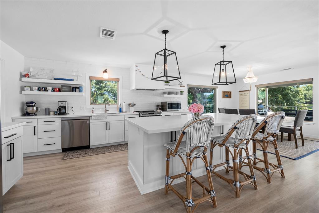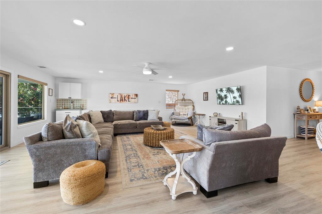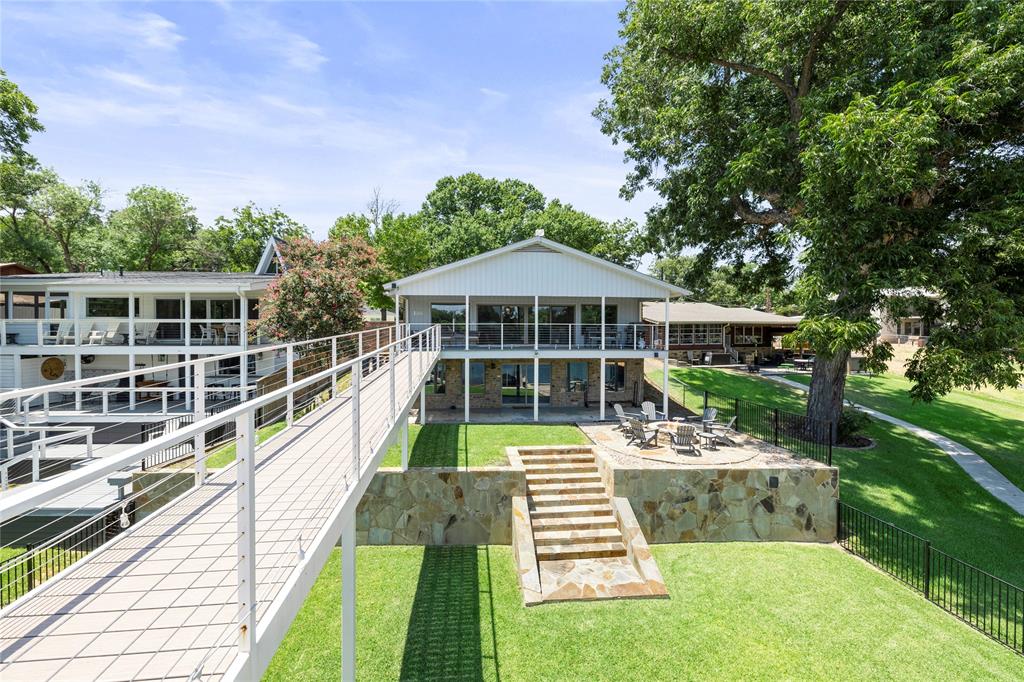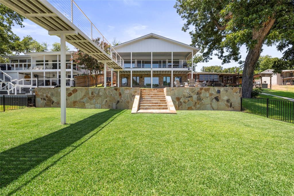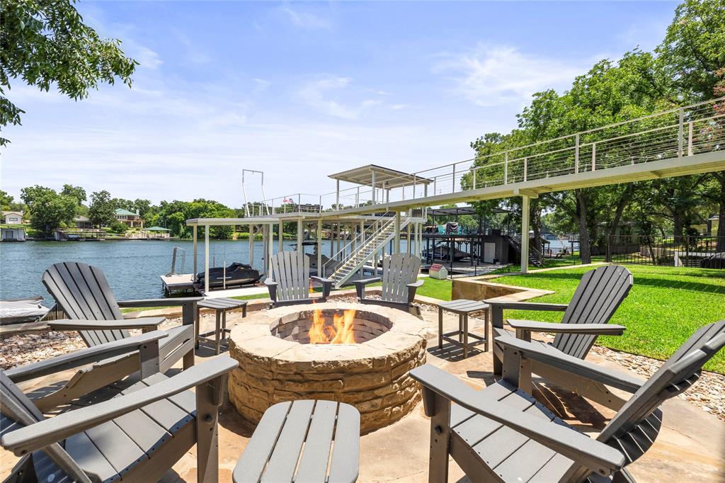 Comprehensive opportunity to own on the coveted Colorado Arm of Lake LBJ. Own both sides of the road with this property. Fully updated home with kitchen and living and 3 bedrooms and 2.5 bathrooms on the main level. Lower level features rec/game room with full bath and potential for kitchenette. Full covered porches across the back of the home with direct access to yard with fire pit and walkways to incredible waterside infrastructure. Dock is a two-story design with two boat lifts, a two jet ski covered lift, with open and covered areas on both levels. Flat and flexible lower back yard at waterside. Upper flat back yard with fire pit. Incredible views up and down the lake. Though this home has not been rented, this is a lucrative short term rental area. Lot across the road features 2 car carport attached to large enclosed storage area with electricity and water. Additional storage behind. Numerous parking spots in front driveway. On Kingsland MUD, so no septic or LCRA. The work has been done on this one...Come enjoy!!