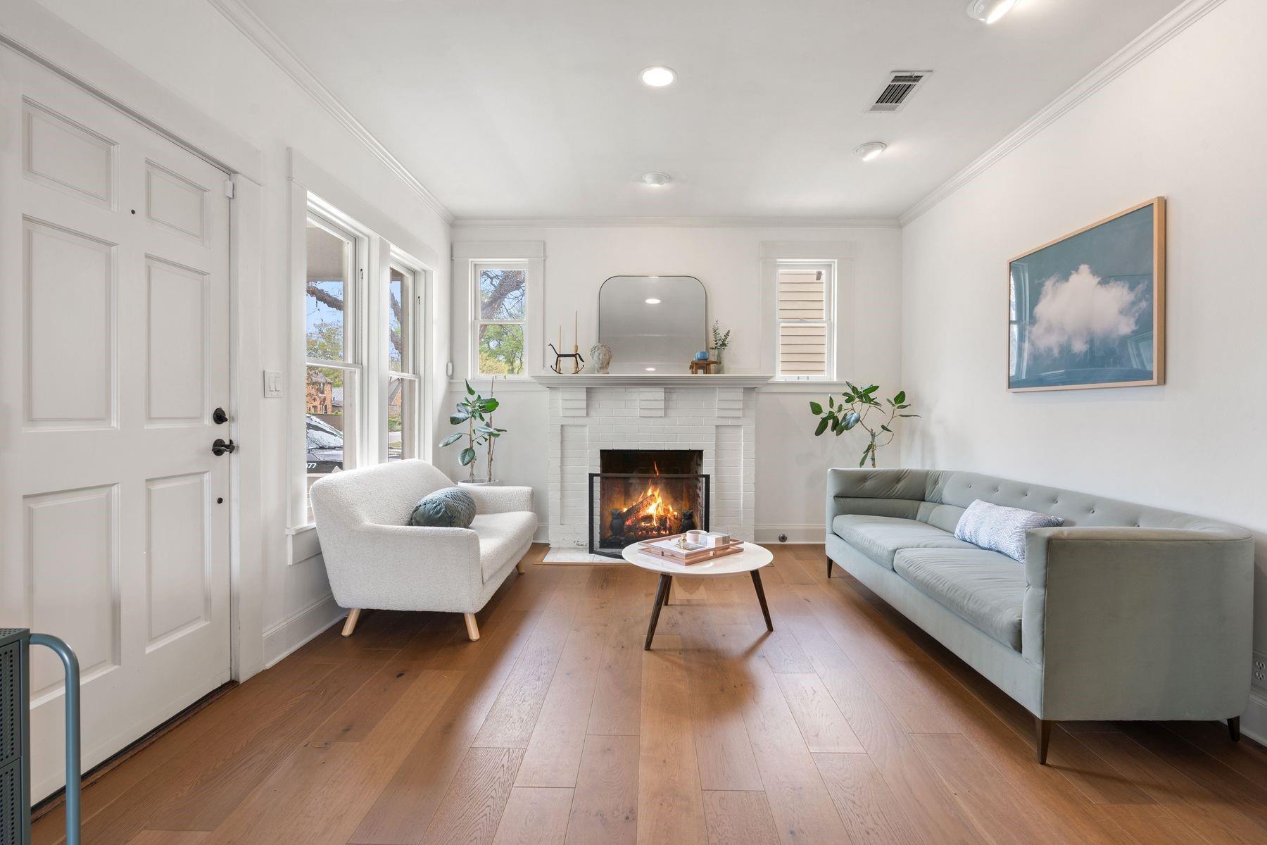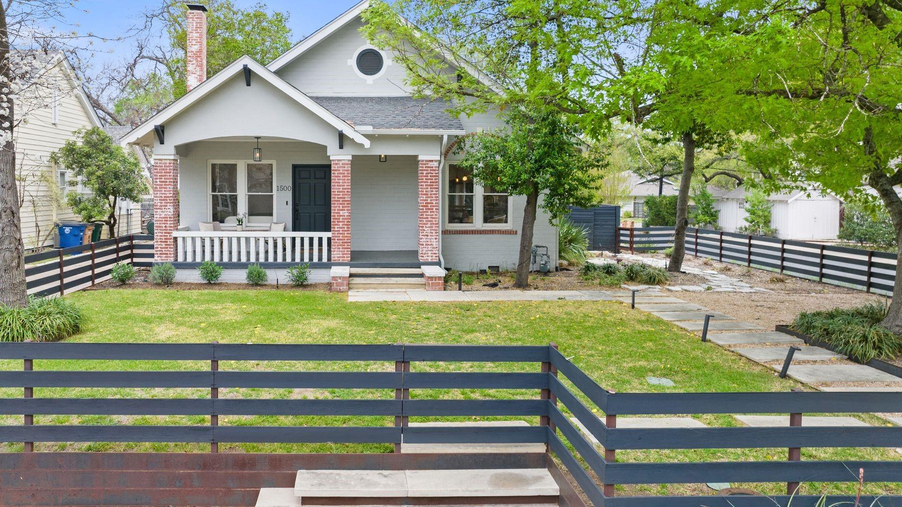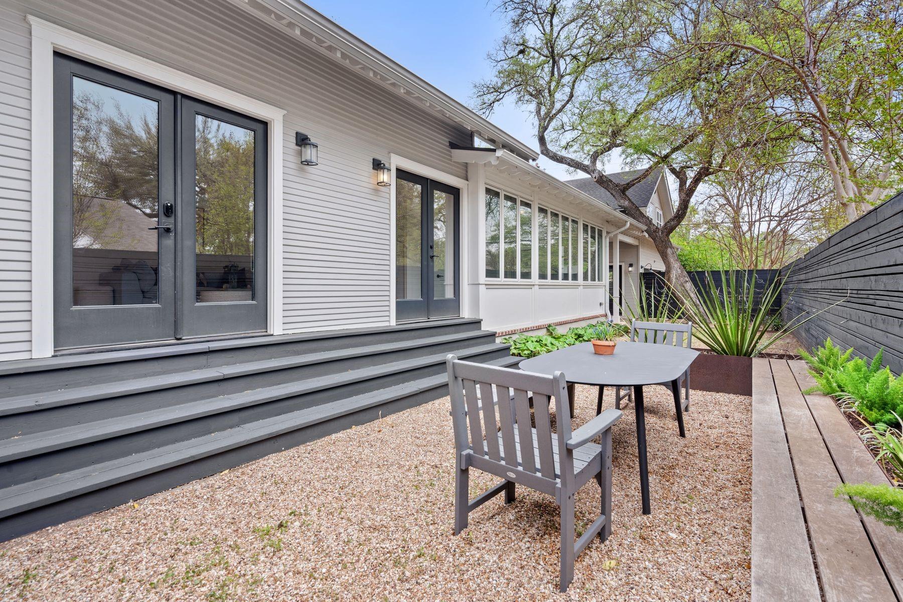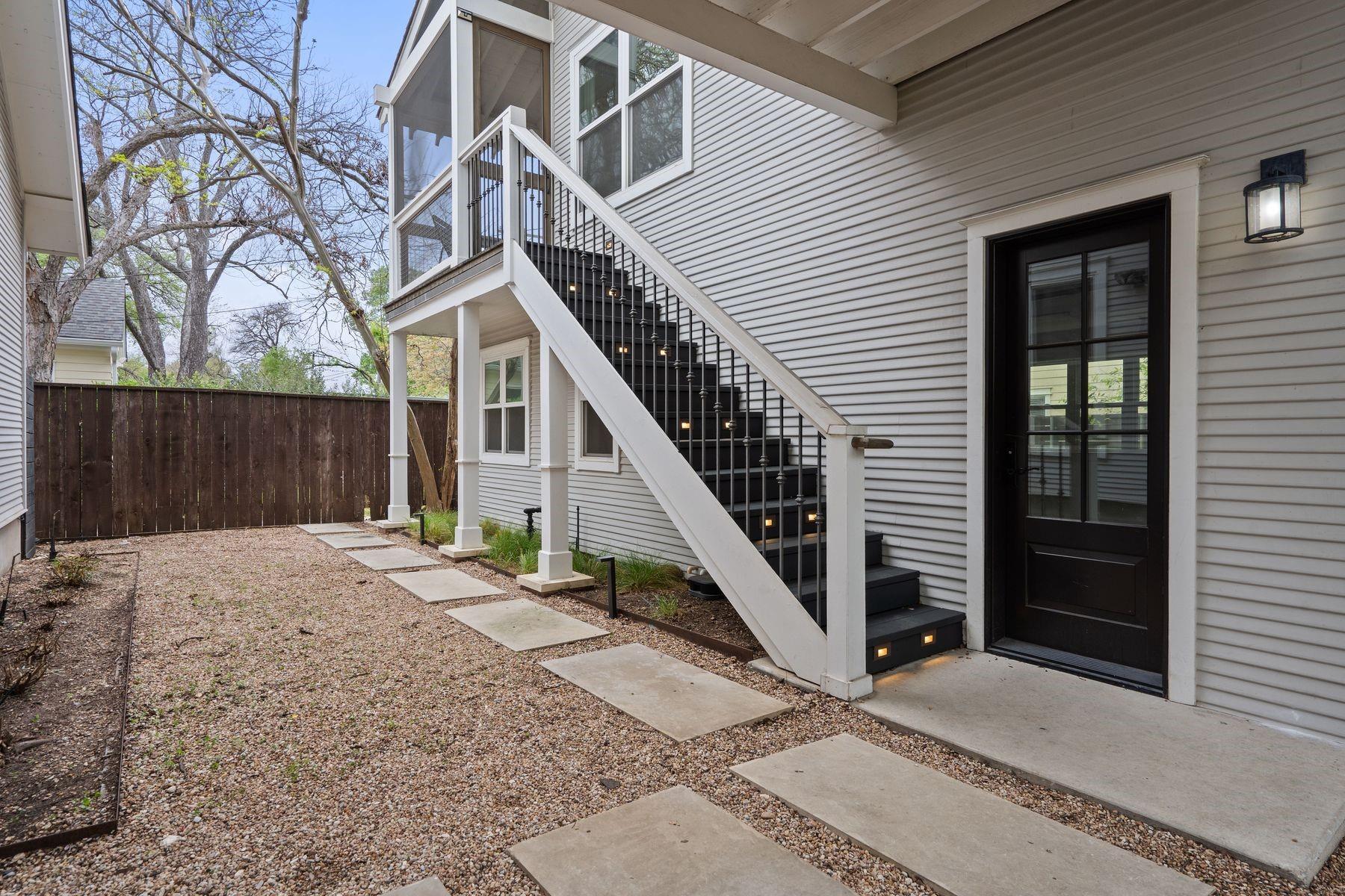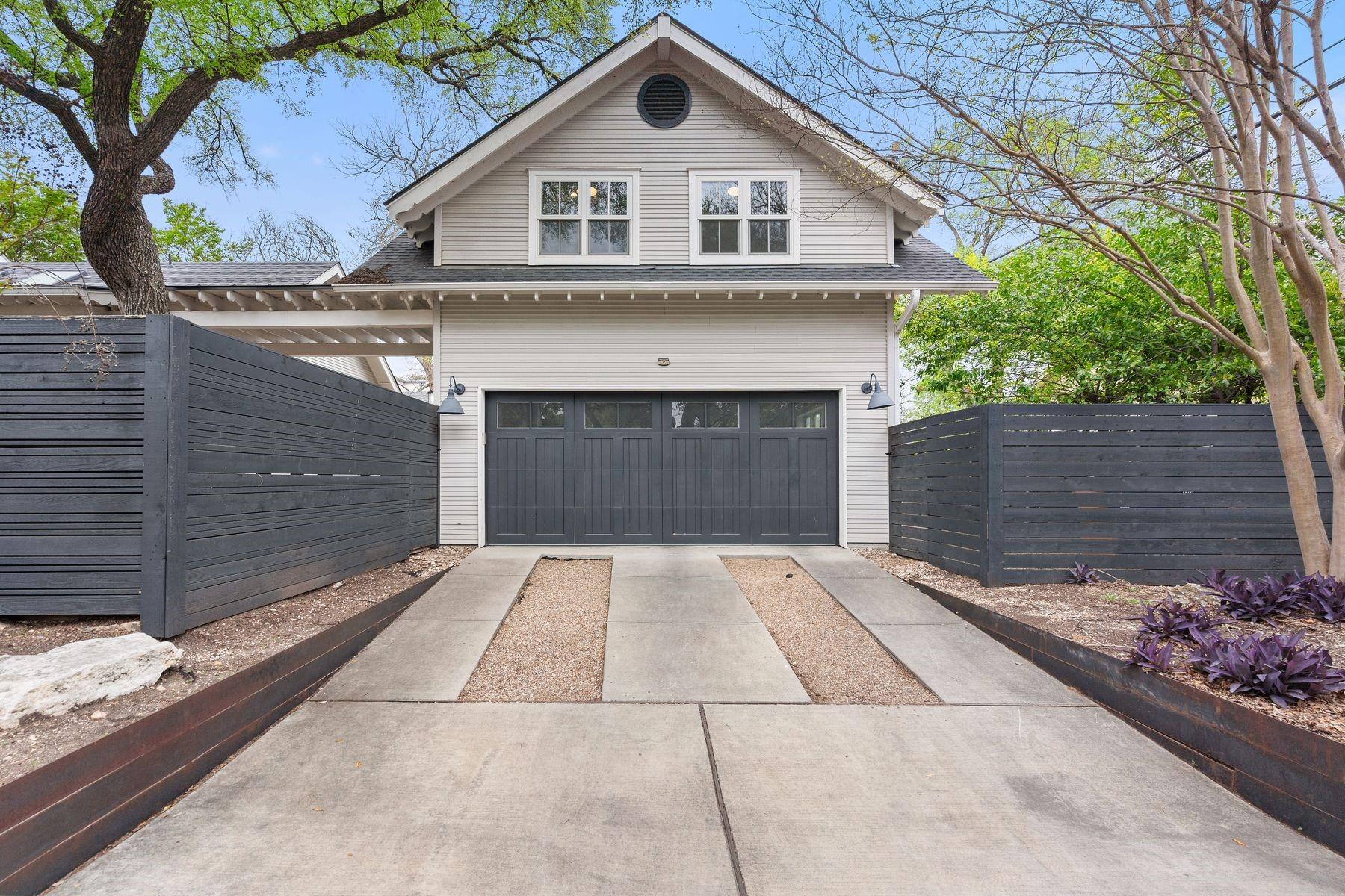 1500 Northwood, reimagined by the acclaimed McWalters Collaborative, is a classic gem in Pemberton Heights, marrying classic finishes with modern flair. This home welcomes you with its sophisticated charm and luxury, highlighted by high-end finishes that define its timeless appeal. The open floor plan boasts vaulted ceilings and facilitates a seamless flow between the living areas, dining space, and a modern kitchen. The primary suite, located at the home's rear, serves as a private retreat, complete with an updated primary bathroom that features elegant fixtures, and a spacious shower that exudes a spa-like ambiance. This area also includes a dedicated office space or dressing room, enhancing the suite's functionality and privacy. In addition to the main residence, the property offers separate living quarters above the two-car garage. This distinct space includes a screened-in porch, providing a peaceful outdoor retreat. Inside, the living quarters feature a separate office downstairs with a built-in desk, ideal for focused work or creative endeavors. A covered flex space adds versatility, suitable for various activities or storage needs. This arrangement, set in the heart of the iconic Central Austin neighborhood, offers both additional living space and potential for a variety of uses, reflecting the thoughtful design and utility of the entire property. *square footage per architect