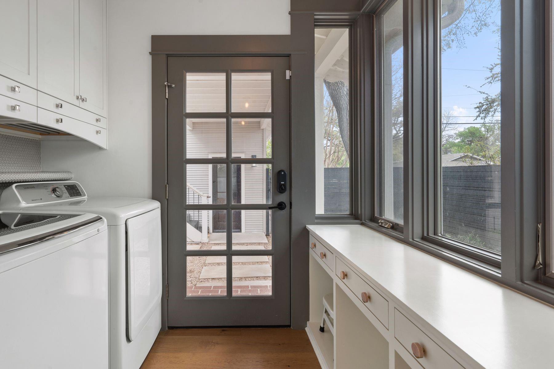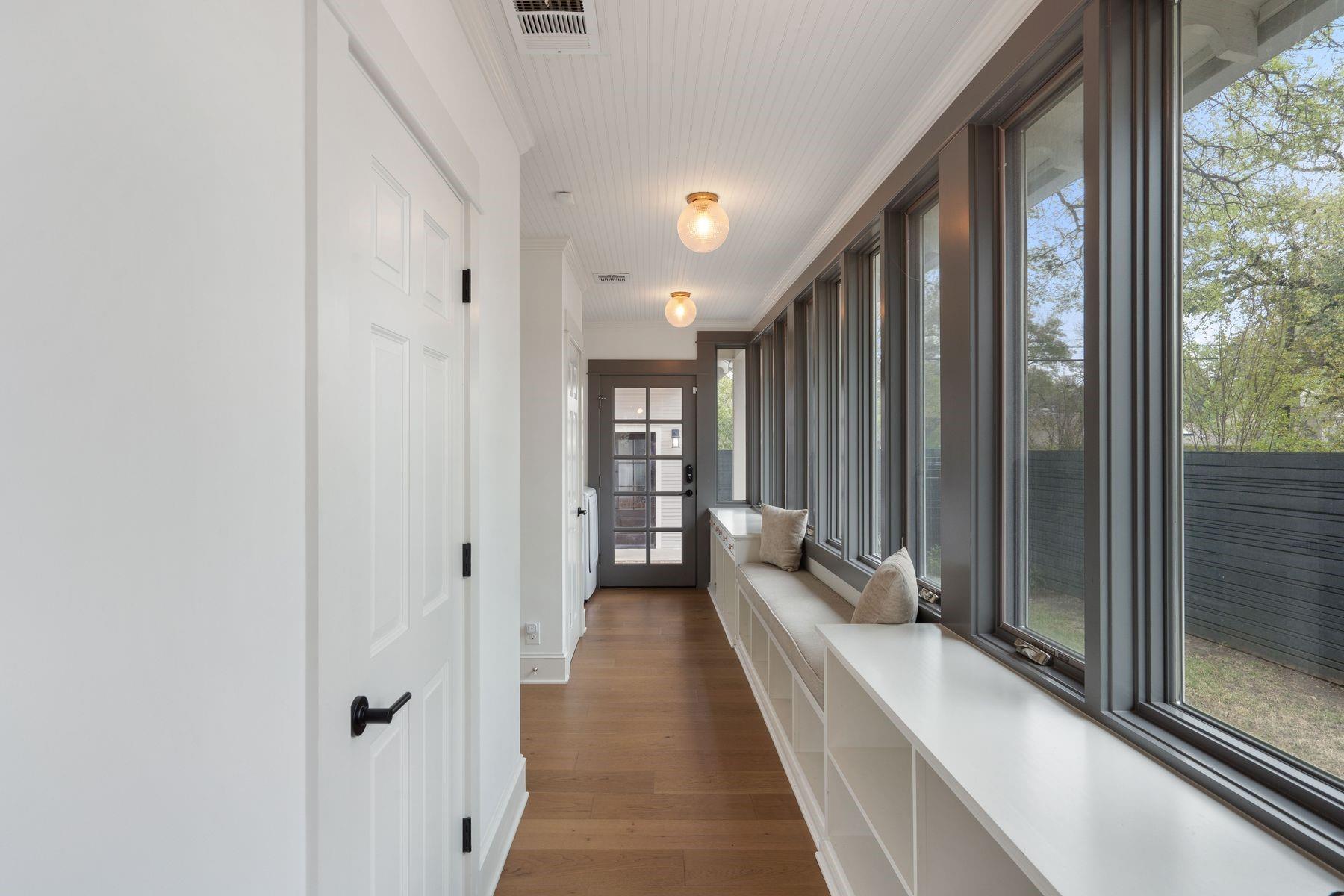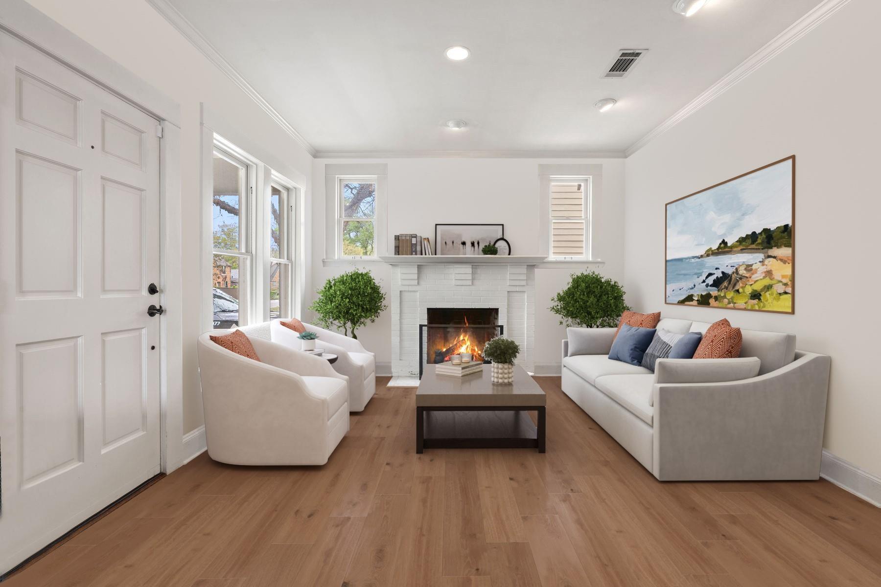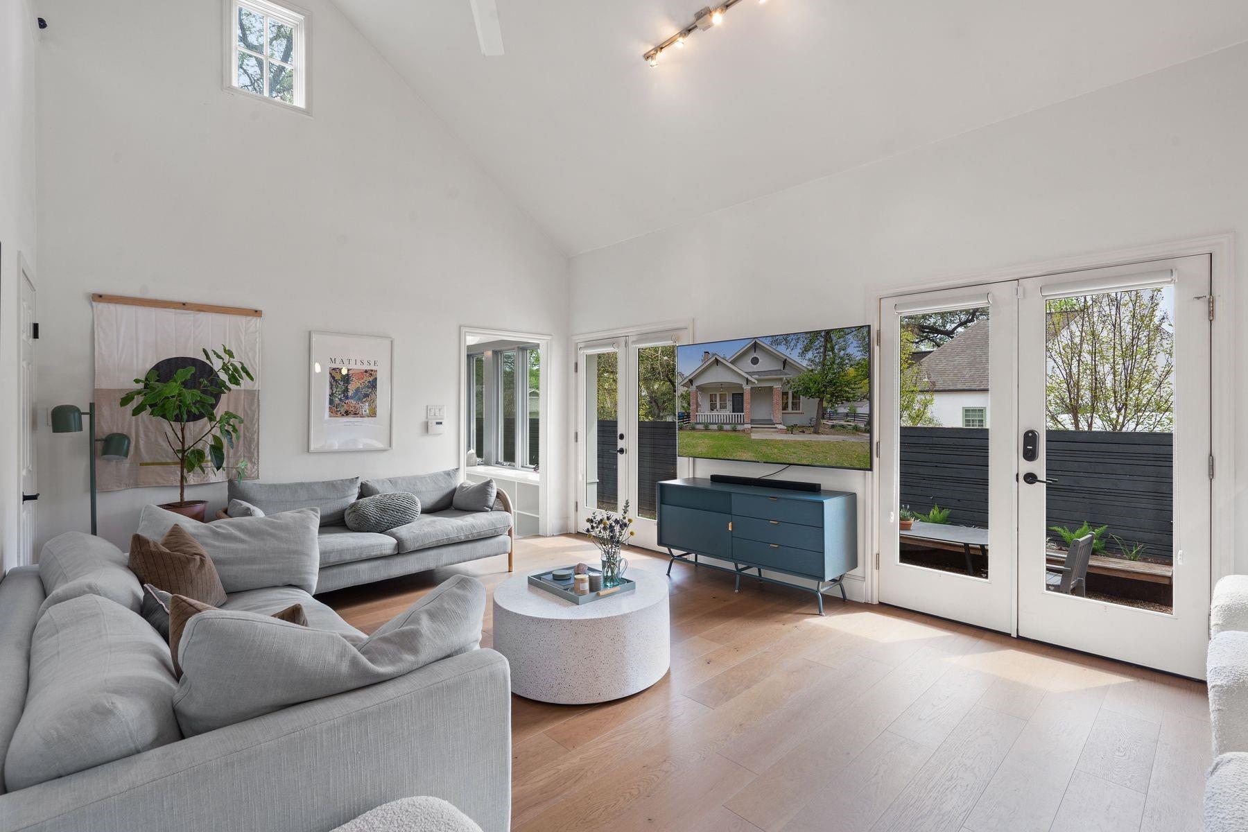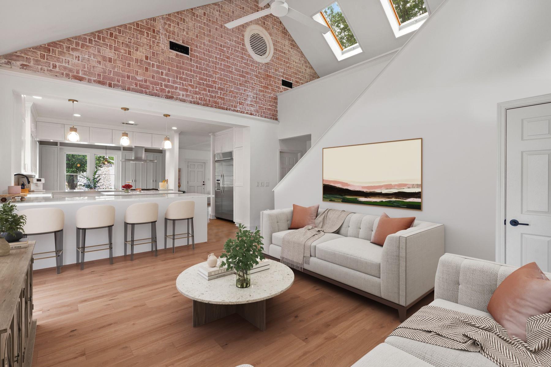 1500 Northwood, reimagined by the acclaimed McWalters Collaborative, is a classic gem in Pemberton Heights, marrying classic finishes with modern flair. This home welcomes you with its sophisticated charm and luxury, highlighted by high-end finishes that define its timeless appeal. The open floor plan boasts vaulted ceilings and facilitates a seamless flow between the living areas, dining space, and a modern kitchen. The primary suite, located at the home's rear, serves as a private retreat, complete with an updated primary bathroom that features elegant fixtures, and a spacious shower that exudes a spa-like ambiance. This area also includes a dedicated office space or dressing room, enhancing the suite's functionality and privacy. In addition to the main residence, the property offers separate living quarters above the two-car garage. This distinct space includes a screened-in porch, providing a peaceful outdoor retreat. Inside, the living quarters feature a separate office downstairs with a built-in desk, ideal for focused work or creative endeavors. A covered flex space adds versatility, suitable for various activities or storage needs. This arrangement, set in the heart of the iconic Central Austin neighborhood, offers both additional living space and potential for a variety of uses, reflecting the thoughtful design and utility of the entire property. *square footage per architect