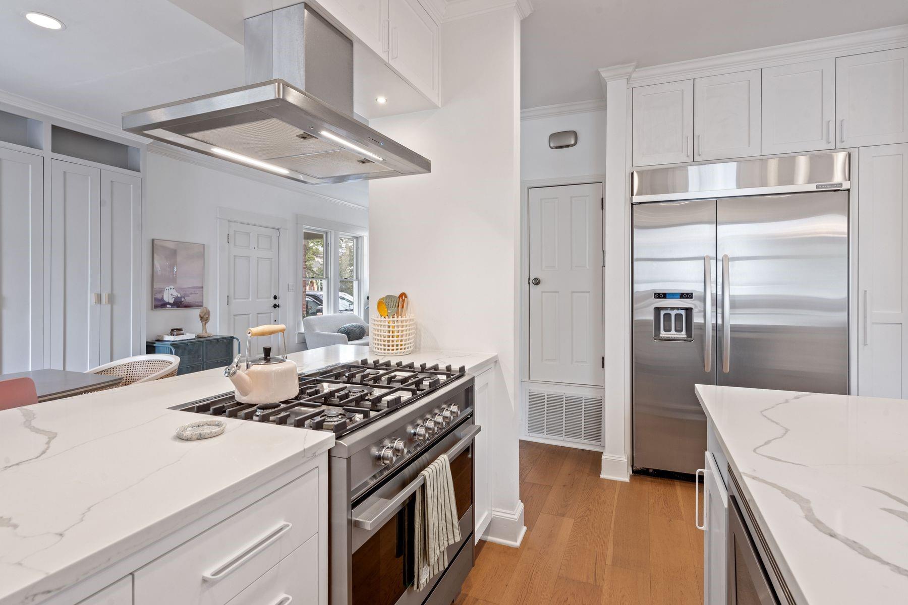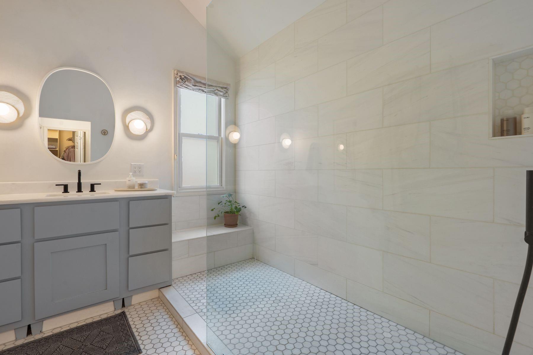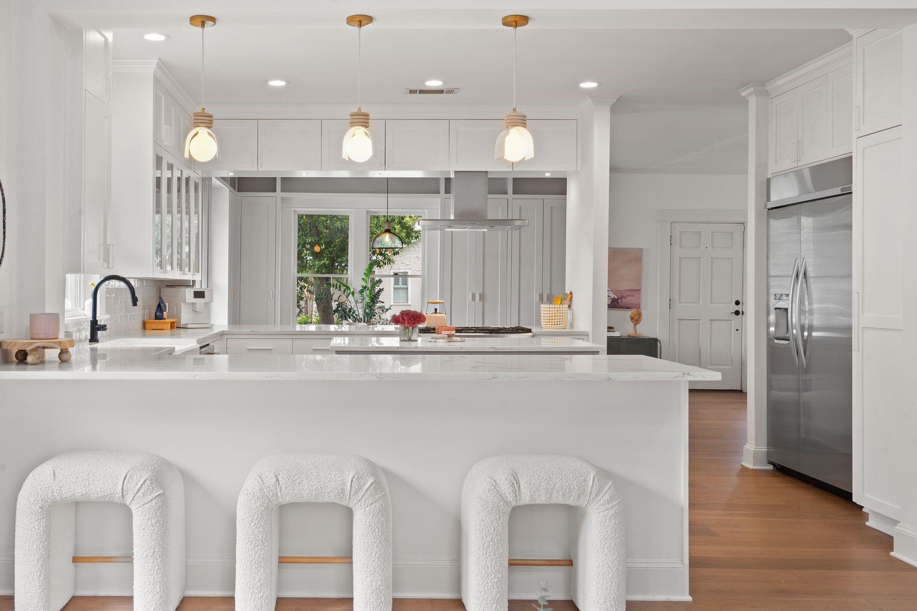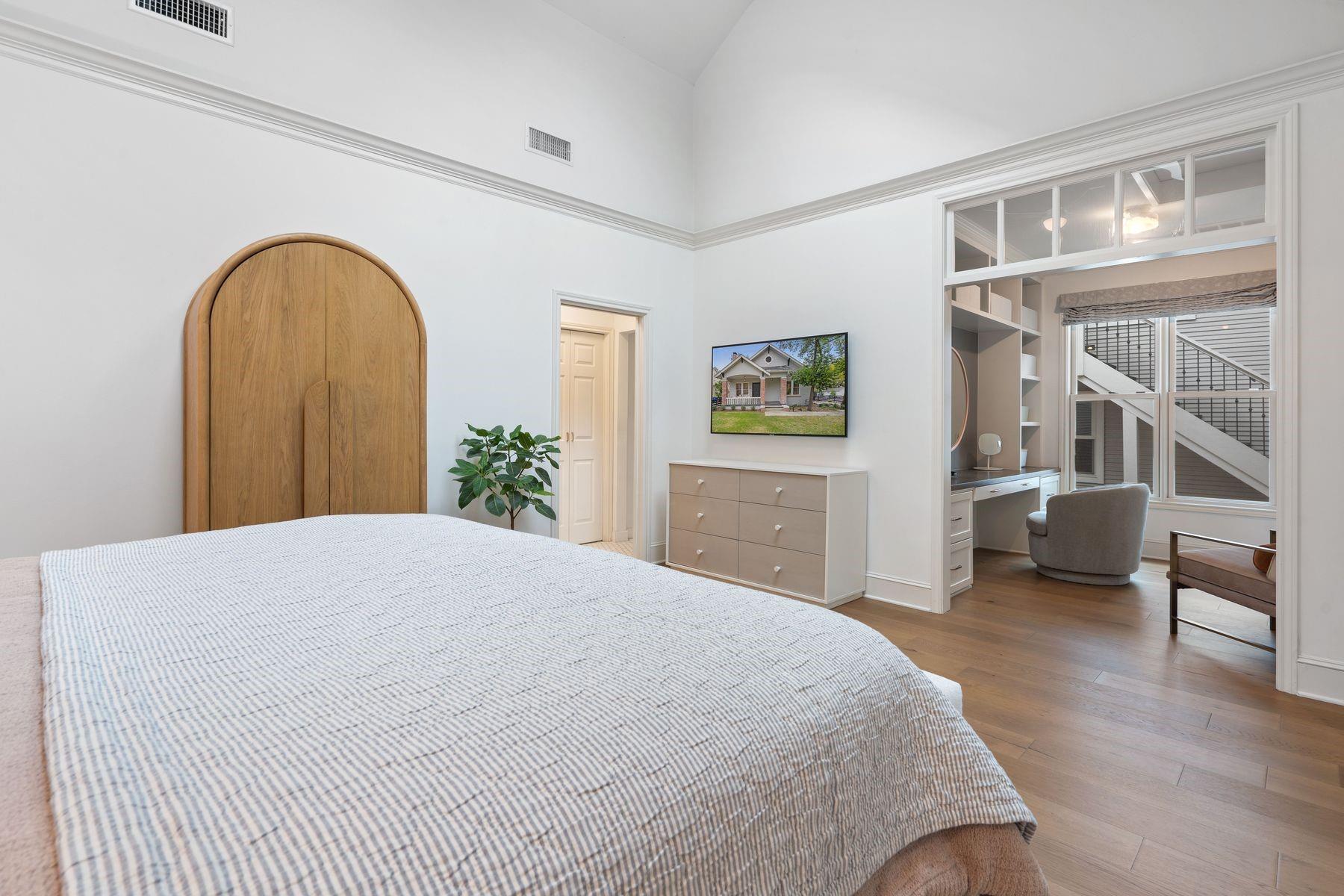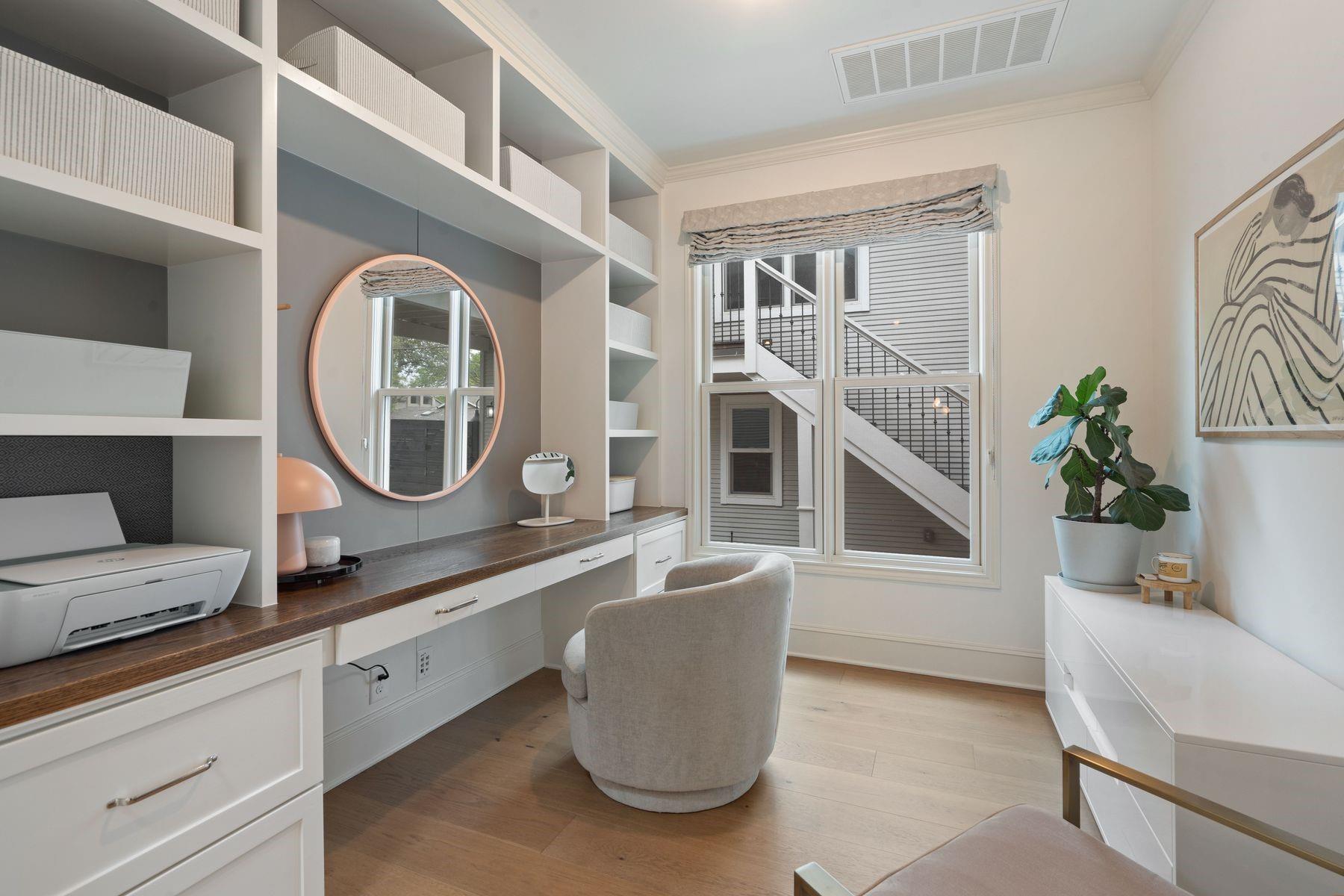 1500 Northwood, reimagined by the acclaimed McWalters Collaborative, is a classic gem in Pemberton Heights, marrying classic finishes with modern flair. This home welcomes you with its sophisticated charm and luxury, highlighted by high-end finishes that define its timeless appeal. The open floor plan boasts vaulted ceilings and facilitates a seamless flow between the living areas, dining space, and a modern kitchen. The primary suite, located at the home's rear, serves as a private retreat, complete with an updated primary bathroom that features elegant fixtures, and a spacious shower that exudes a spa-like ambiance. This area also includes a dedicated office space or dressing room, enhancing the suite's functionality and privacy. In addition to the main residence, the property offers separate living quarters above the two-car garage. This distinct space includes a screened-in porch, providing a peaceful outdoor retreat. Inside, the living quarters feature a separate office downstairs with a built-in desk, ideal for focused work or creative endeavors. A covered flex space adds versatility, suitable for various activities or storage needs. This arrangement, set in the heart of the iconic Central Austin neighborhood, offers both additional living space and potential for a variety of uses, reflecting the thoughtful design and utility of the entire property. *square footage per architect
