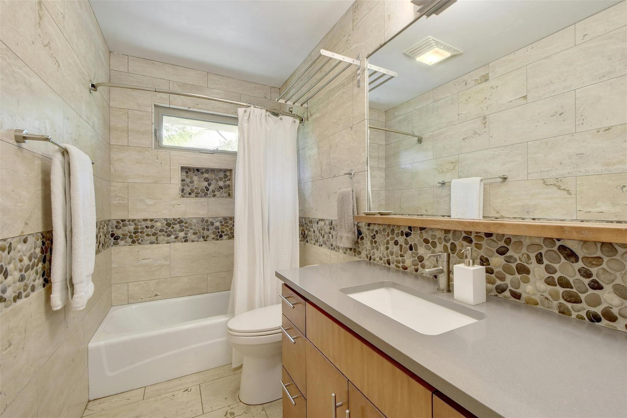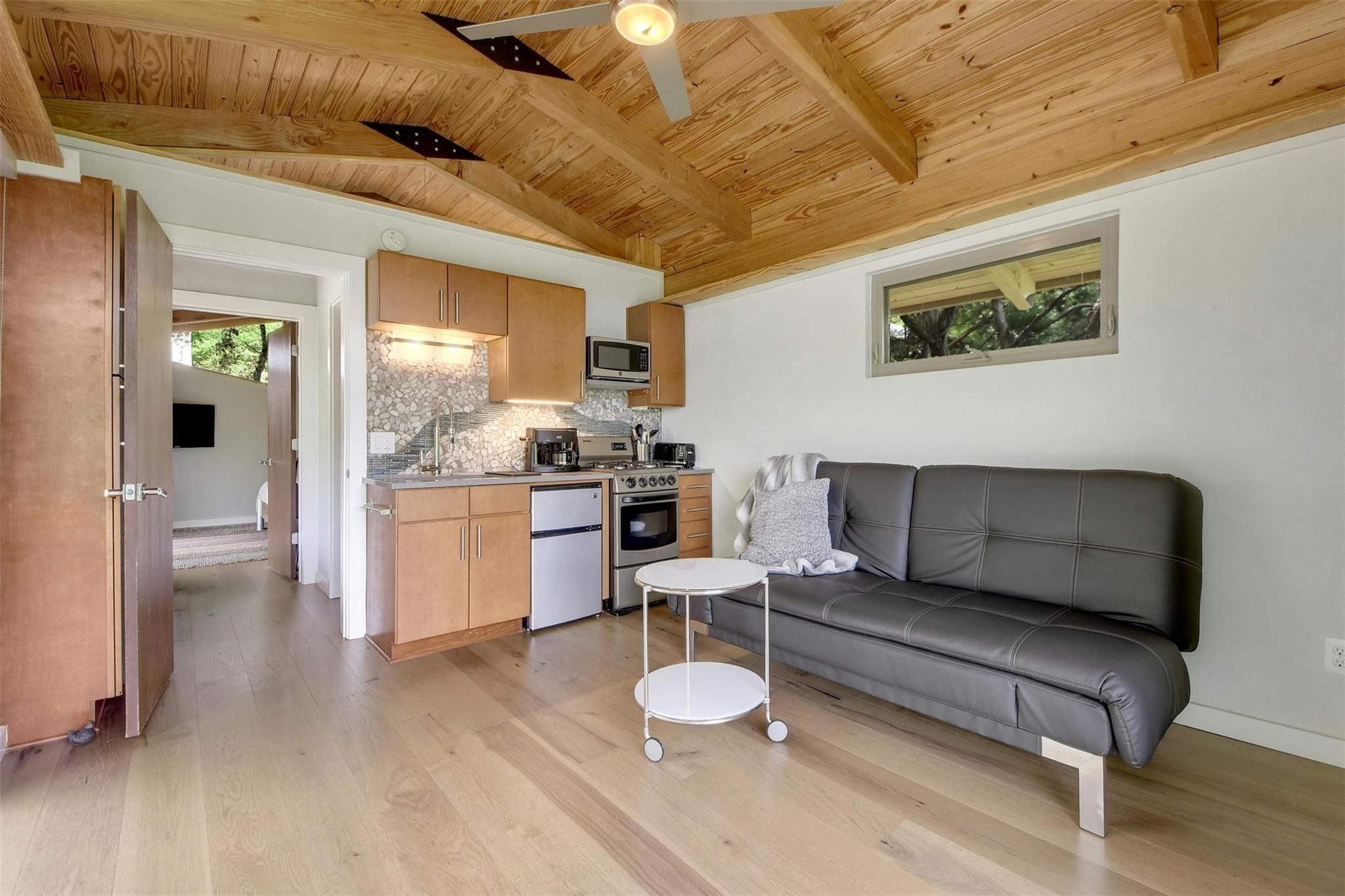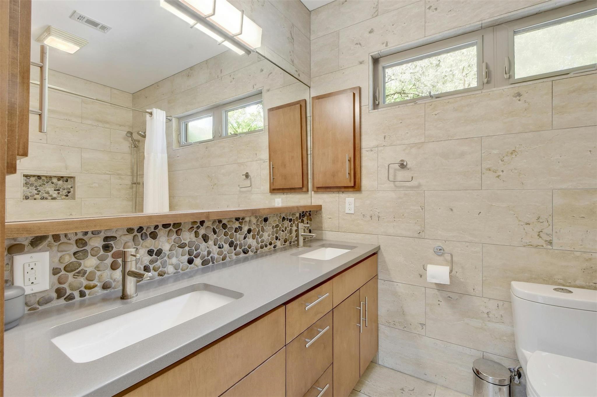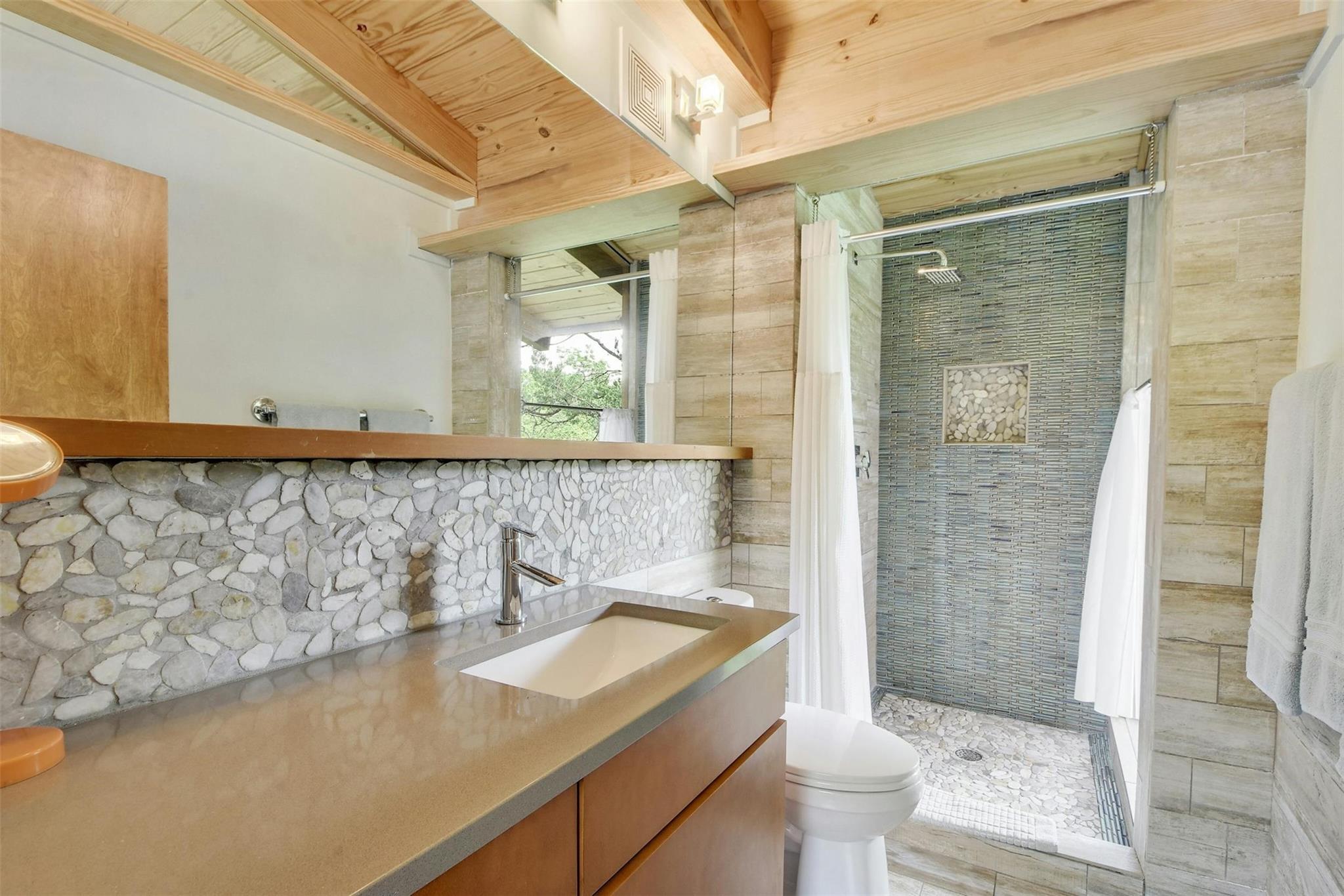 MULTIPLE OFFERS RECEIVED, HIGHEST AND BEST DUE THURS 3/28 AT 10AM. Welcome to 2611 Deerfoot Trail. Nestled on nearly an acre of land with a pool and sports court, this exceptional property overlooks the Barton Creek greenbelt in the highly sought-after Barton Hills neighborhood. The thoughtfully designed home is comprised of a main house and a detached two-story casita, each surrounded by expansive decks that capture the greenbelt views.The main residence is 1723-sq feet,built in mid-century modern style, and underwent a comprehensive down-to-the-studs remodel in 2012.With 3 bedrooms and 2 baths, it presents a comfortable, well-appointed living space.The two-story detached casita, completed in 2013, spans 850 sq ft & offers a flexible space for additional bedrooms, home office or studio.Built with a modern tree house vibe, the upper level features 2 rooms with a full bath and kitchen, accessible from the street.The lower level comprises 2 rooms with a half bath and kitchenette, opening onto the pool and sports court.Encompassing a total of 0.937 acres, the property includes an undeveloped buildable lot, graced with its own enchanting grotto and a captivating cascading waterfall during heavy rain.Ideally situated just 3 miles from downtown & 12 miles from ABIA,Barton Hills is surrounded by greenbelt trails and is home to an award-winning elementary school. Located on a tranquil street, the residence is a mere 15 min stroll to Barton Springs, Zilker Park & Lady Bird Lake, with easy access to dining and shopping on S. Lamar & S. Congress.This property's unique combination of greenbelt positioning and substantial lot size is a rare find. 2611 Deerfoot Trail offers tremendous potential for expansion while currently presenting a beautifully constructed and inviting home.Contact us to schedule your private appointment and discover the extraordinary allure of this property.