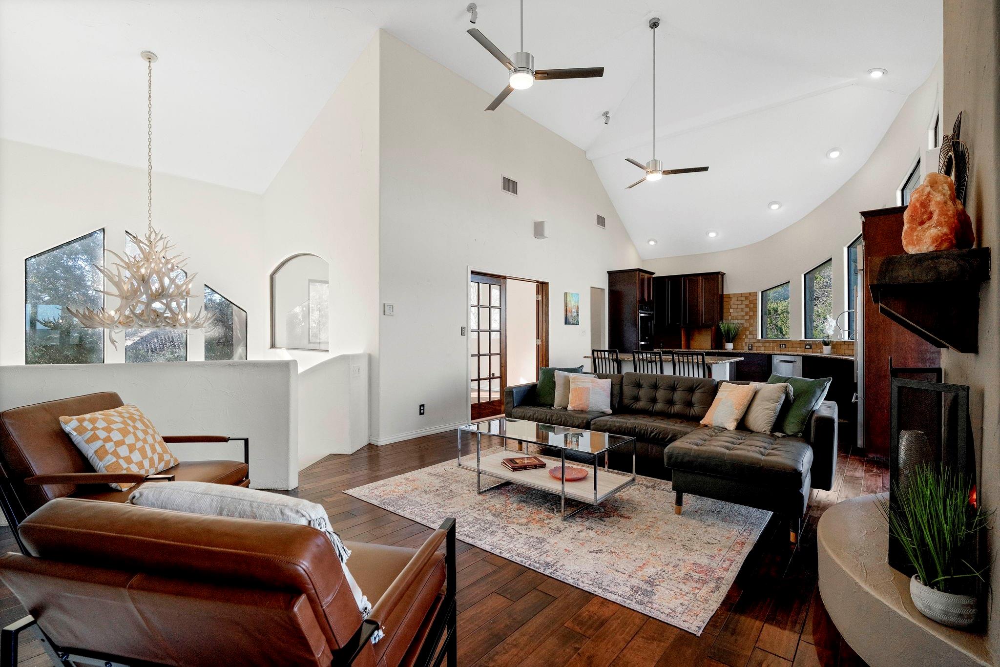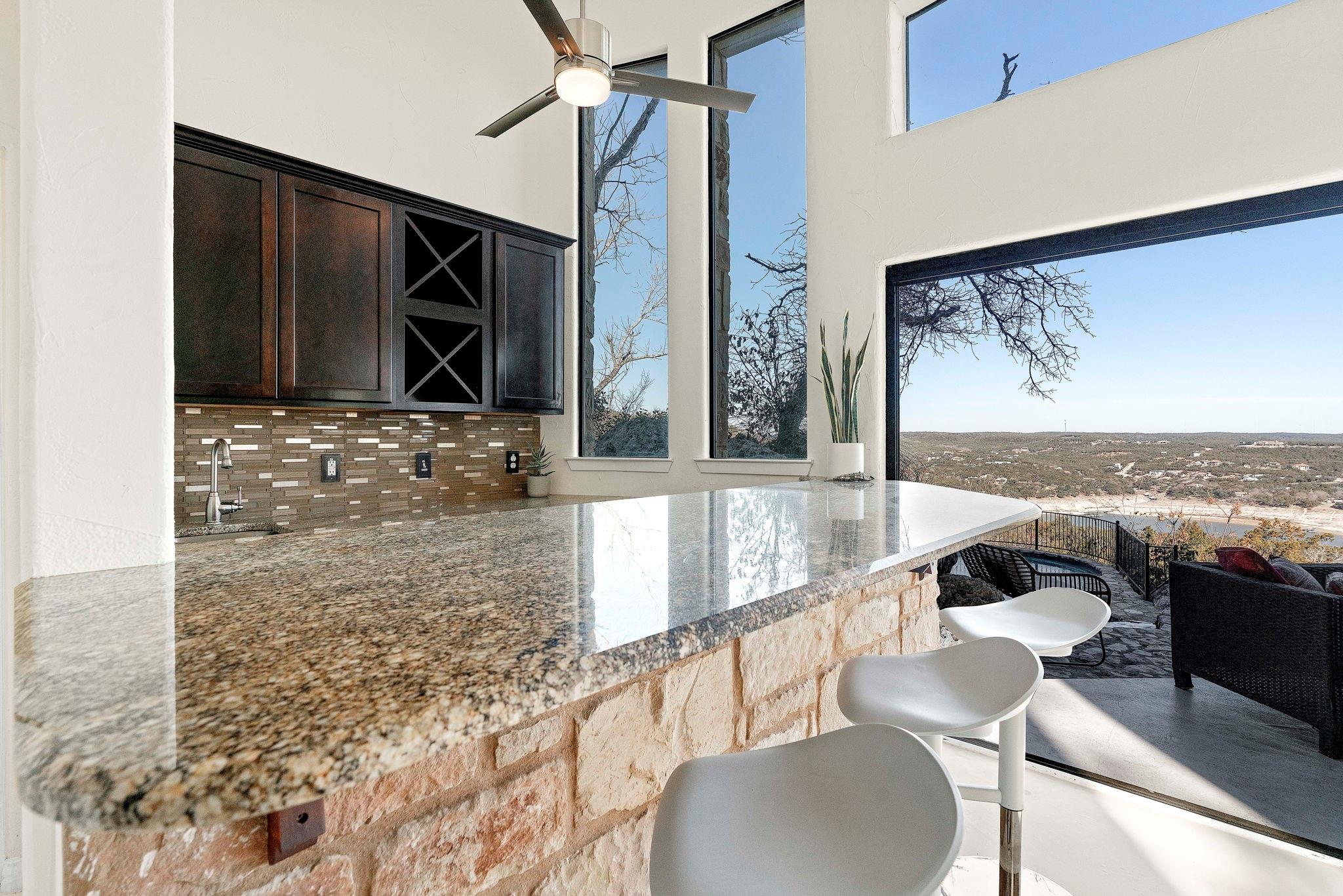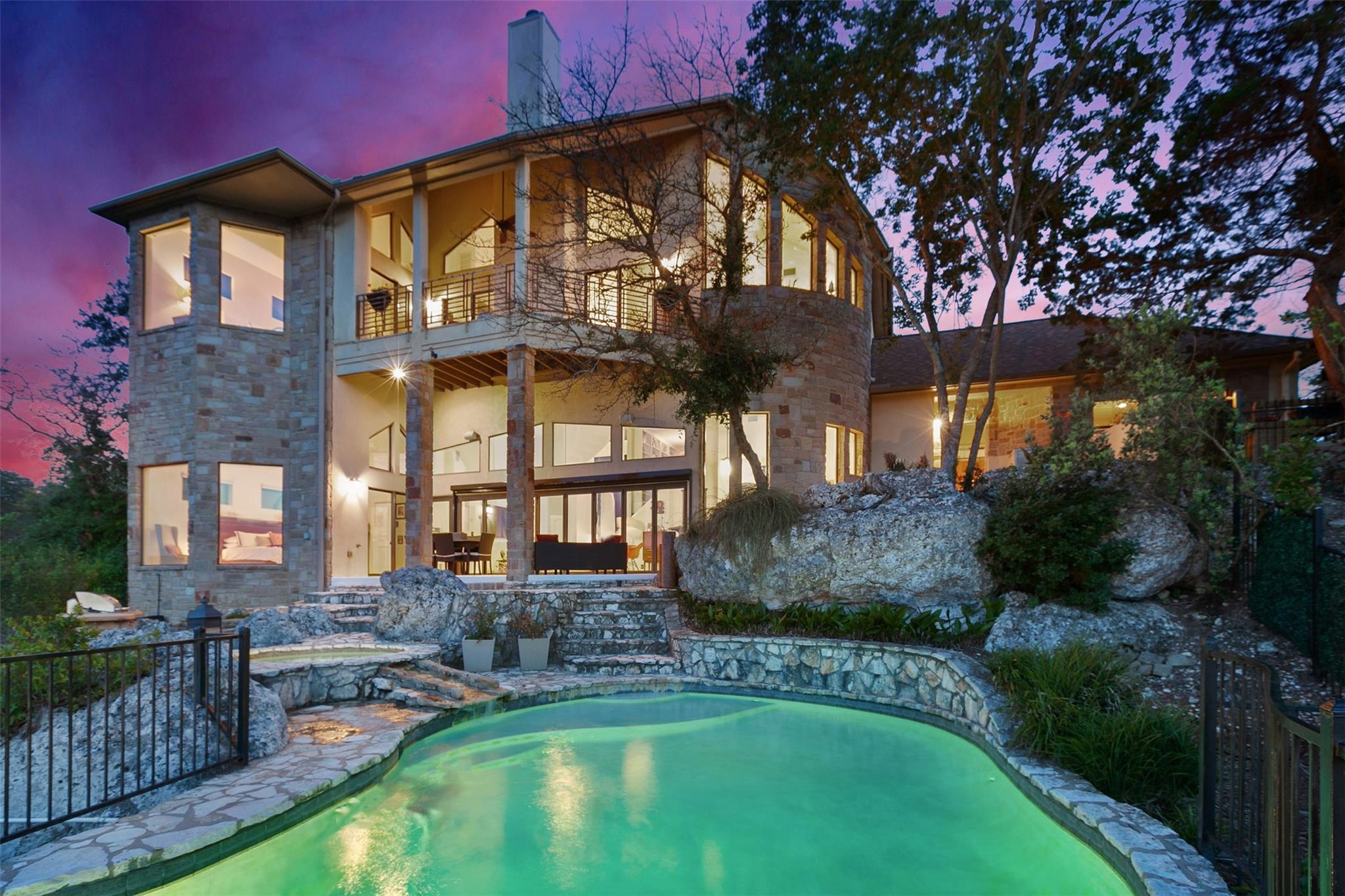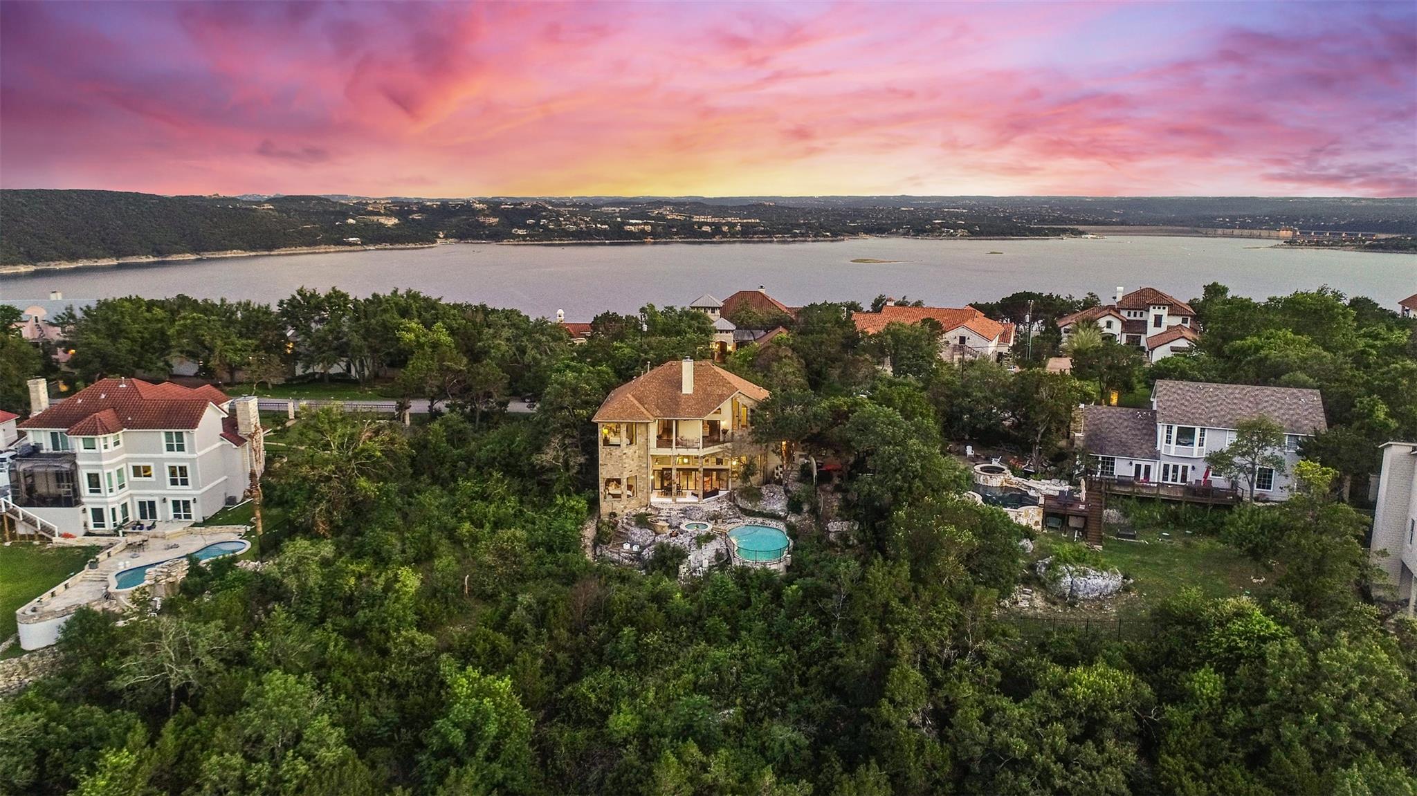 Welcome to your dream retreat overlooking Lake Travis! Nestled in the tranquil hills of West Austin, this sprawling home offers unparalleled luxury & breathtaking panoramic views. Cool off on hot summer days in the sparkling pool & enjoy the night under the stars in the heated spa. The expansive living area boasts floor-to-ceiling windows in a seamless blend between indoor & outdoor living. The gourmet kitchen features top-of-the-line appliances & a spacious island, perfect for gathering with loved ones. Retreat to the luxurious master suite, where serenity awaits amidst awe-inspiring views. Pamper yourself in the spa-like ensuite bathroom complete with a soaking tub & oversized shower. With multiple guest suites, this home is perfect for hosting friends & family with ease. Located just moments away from The Oasis, Anderson Mill Marina, shopping, & recreational opportunities, this home is the perfect blend of seclusion & convenience. Welcome to Lake Travis living at its absolute best!