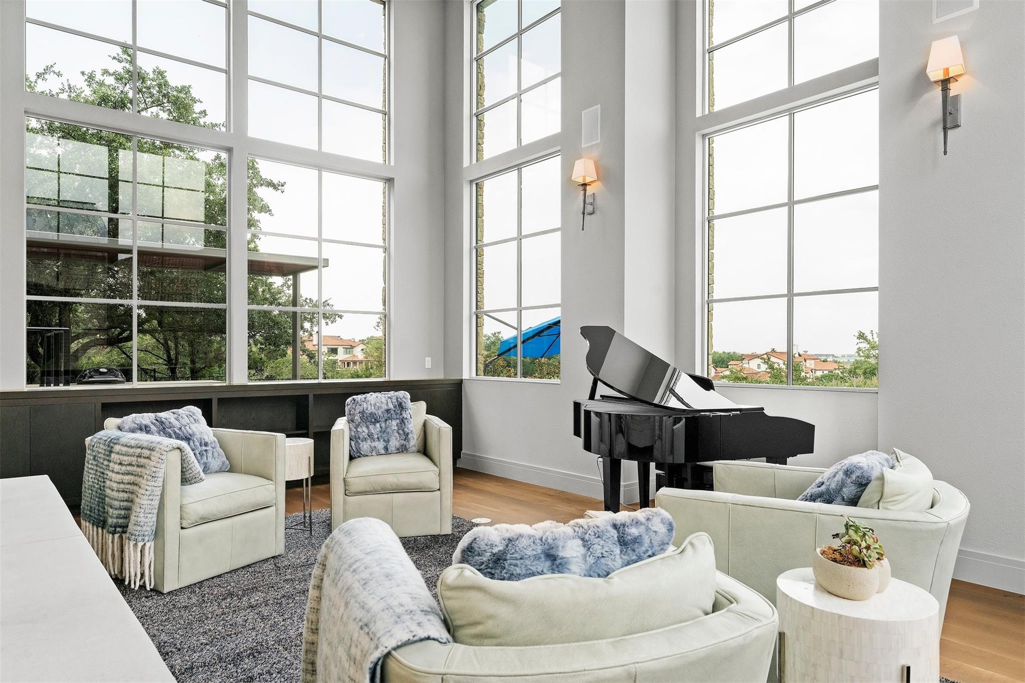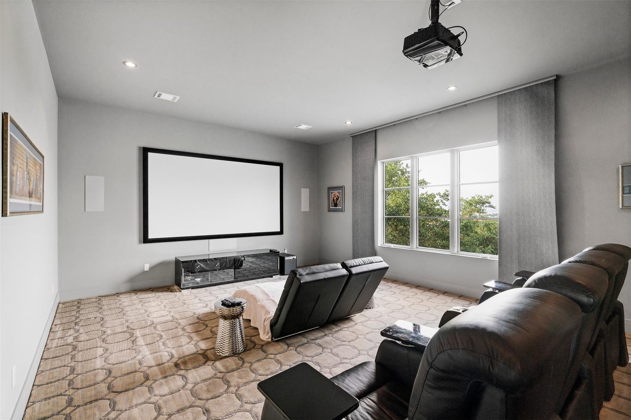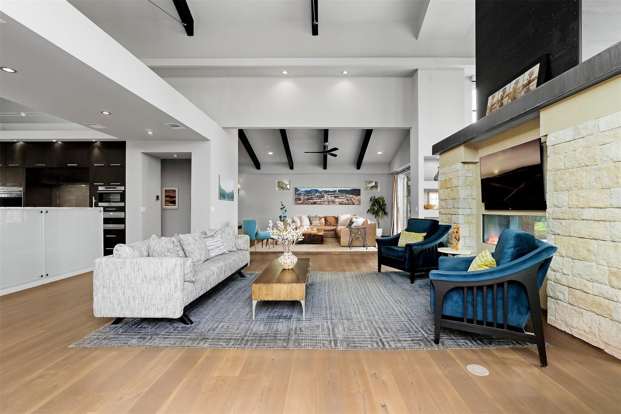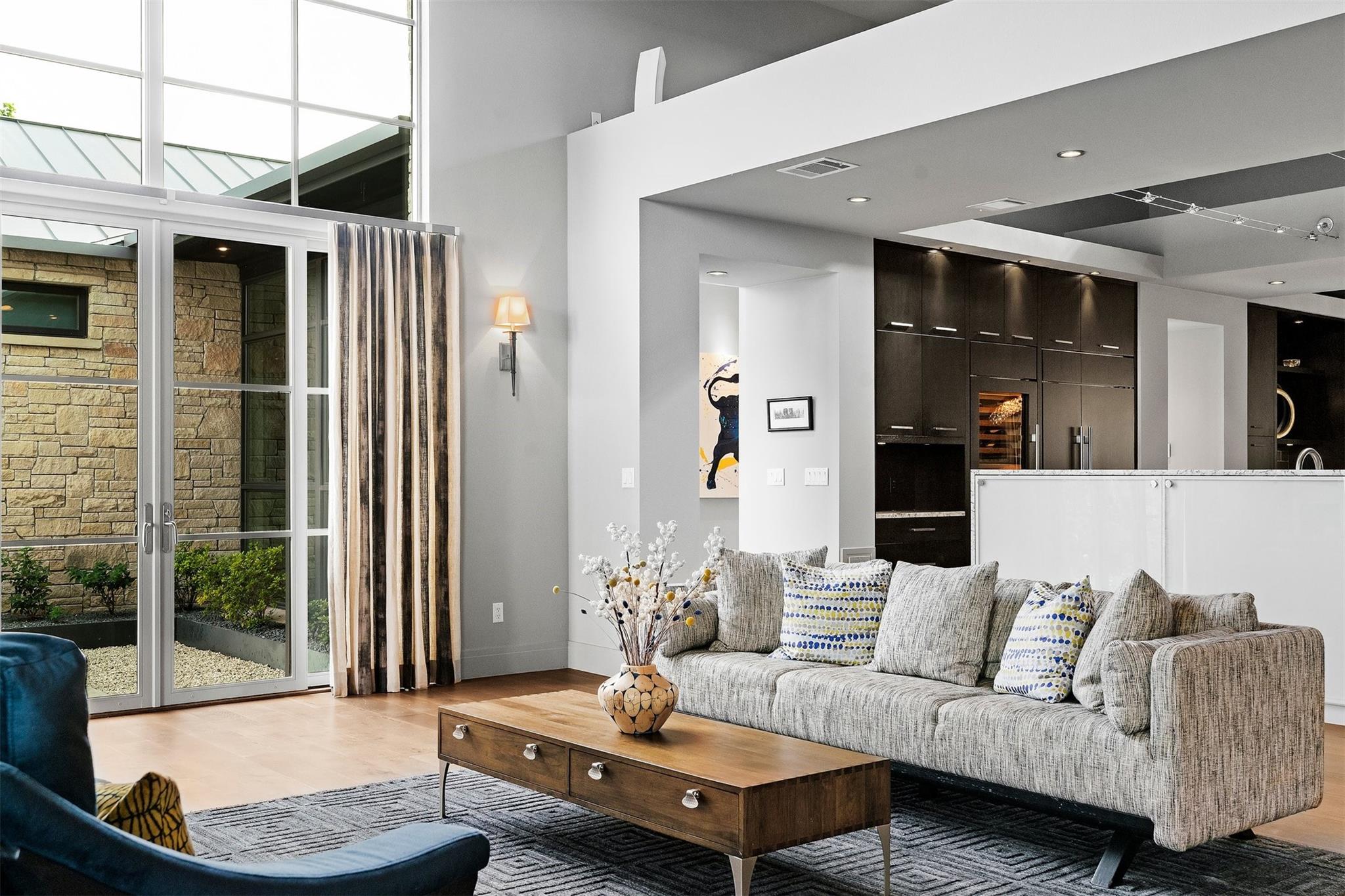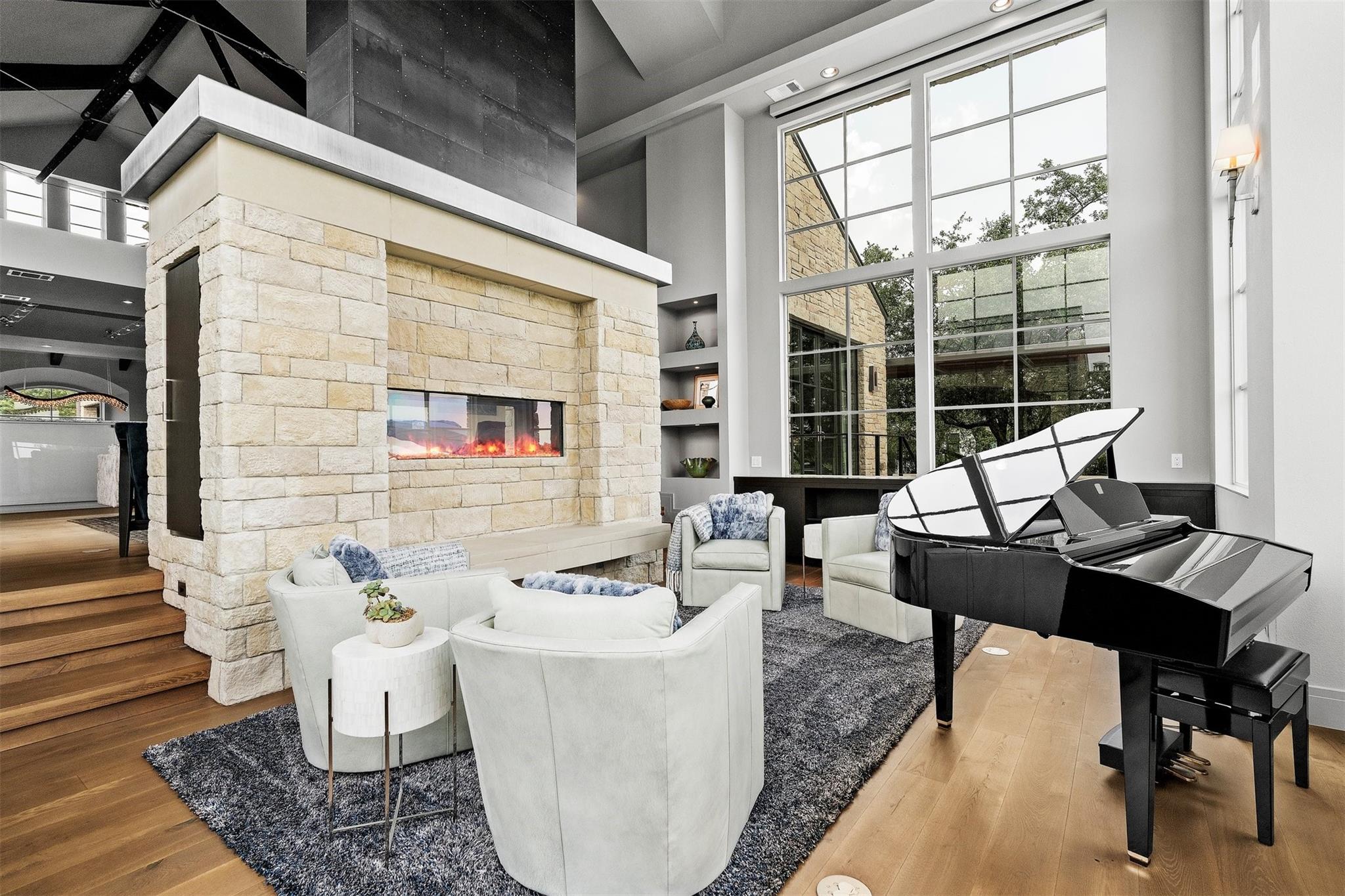 Located in the prestigious gated enclave of Spanish Oaks, every inch of this home has been thoughtfully curated; designed by David Gostecnik and built by Jim Lindsay. As you approach the property, the lighted driveway, metal roof and Lueders limestone set the stage for the home's majestic presence. Upon entering, you are greeted by a dramatic entryway adorned with art feature lighting, Venetian plaster walls, and rock detail. The gourmet kitchen is equipped with Wolf, Sub-Zero, and Bosch appliances. Highlights include a six-burner Wolf cooktop, steam oven, and a 48-inch built-in refrigerator. Custom cabinetry with specialized storage solutions, a 146-bottle wine cooler, and a dedicated coffee bar make this kitchen perfect for both everyday living and lavish entertaining. Adjacent to the kitchen, the living room showcases custom-designed trusses and beams, complimented by a striking see-through fireplace. Two-story windows with electronic sunshades offer breathtaking views. The dining room features a hand-crafted chandelier, built-in China cabinet, and a wet bar with floating glass shelves. The owner's suite features custom ceiling details, and controllable sunshades. The spa-like owner's bath is equipped with Carrara marble, a steam shower, air jet soaking tub and a custom-built closet. The outdoor space boasts a fully fenced yard, a large custom swimming pool and spa with beach entries, and extensive fire and water features. An outdoor kitchen with a Lueders limestone gas grill and Green Egg smoker is perfect for alfresco dining. With features like Kolbe high-efficiency windows, Hunter Douglas electric blackout shades, and a whole-house automation system, this home is designed for ultimate comfort and convenience. The centerpiece of the community is the private Spanish Oaks Golf Club, featuring an 18-hole golf course designed by PGA Tour legend Bobby Weed. Zoned for Lake Travis ISD. Schedule your private tour and make this dream residence your reality!