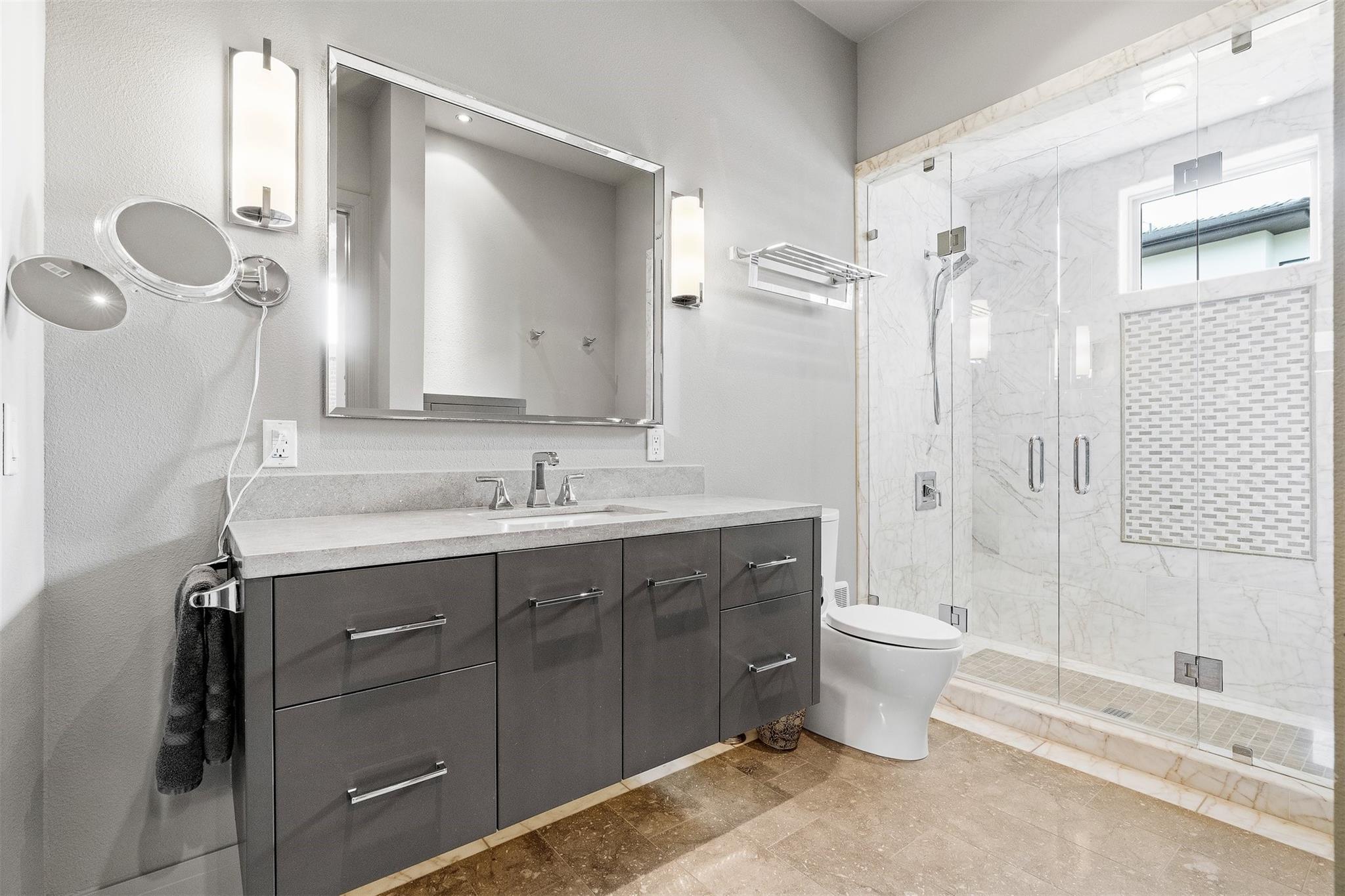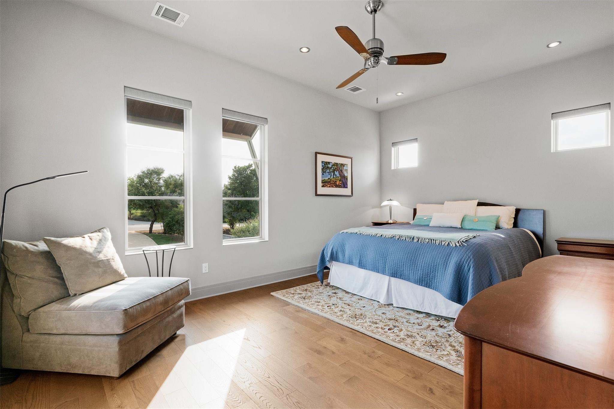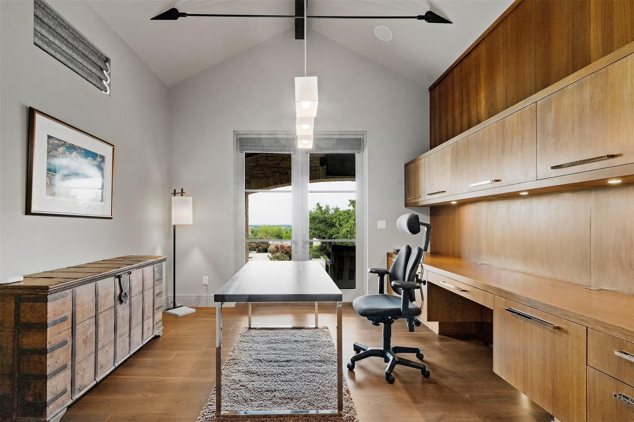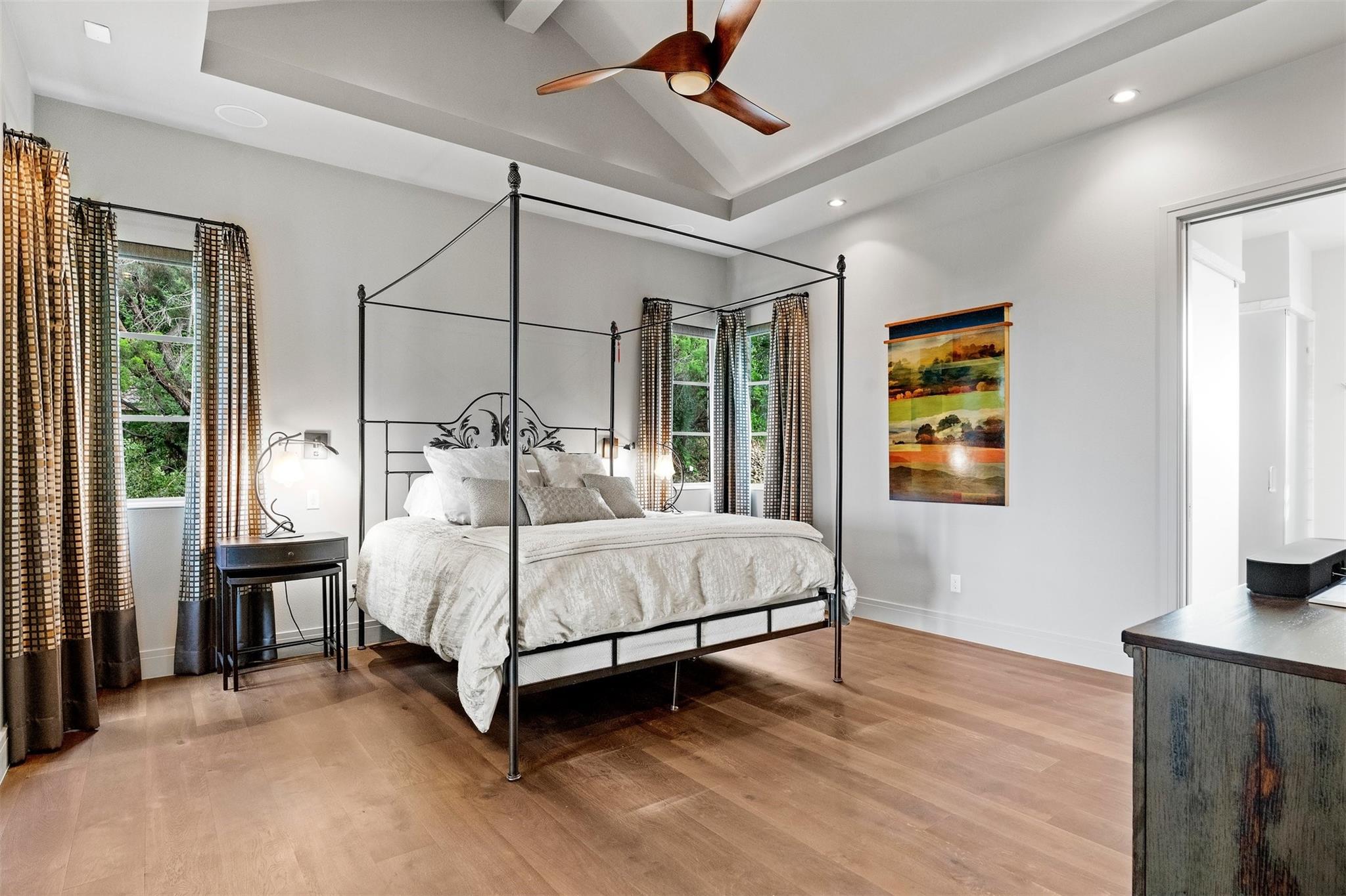 Located in the prestigious gated enclave of Spanish Oaks, every inch of this home has been thoughtfully curated; designed by David Gostecnik and built by Jim Lindsay. As you approach the property, the lighted driveway, metal roof and Lueders limestone set the stage for the home's majestic presence. Upon entering, you are greeted by a dramatic entryway adorned with art feature lighting, Venetian plaster walls, and rock detail. The gourmet kitchen is equipped with Wolf, Sub-Zero, and Bosch appliances. Highlights include a six-burner Wolf cooktop, steam oven, and a 48-inch built-in refrigerator. Custom cabinetry with specialized storage solutions, a 146-bottle wine cooler, and a dedicated coffee bar make this kitchen perfect for both everyday living and lavish entertaining. Adjacent to the kitchen, the living room showcases custom-designed trusses and beams, complimented by a striking see-through fireplace. Two-story windows with electronic sunshades offer breathtaking views. The dining room features a hand-crafted chandelier, built-in China cabinet, and a wet bar with floating glass shelves. The owner's suite features custom ceiling details, and controllable sunshades. The spa-like owner's bath is equipped with Carrara marble, a steam shower, air jet soaking tub and a custom-built closet. The outdoor space boasts a fully fenced yard, a large custom swimming pool and spa with beach entries, and extensive fire and water features. An outdoor kitchen with a Lueders limestone gas grill and Green Egg smoker is perfect for alfresco dining. With features like Kolbe high-efficiency windows, Hunter Douglas electric blackout shades, and a whole-house automation system, this home is designed for ultimate comfort and convenience. The centerpiece of the community is the private Spanish Oaks Golf Club, featuring an 18-hole golf course designed by PGA Tour legend Bobby Weed. Zoned for Lake Travis ISD. Schedule your private tour and make this dream residence your reality!