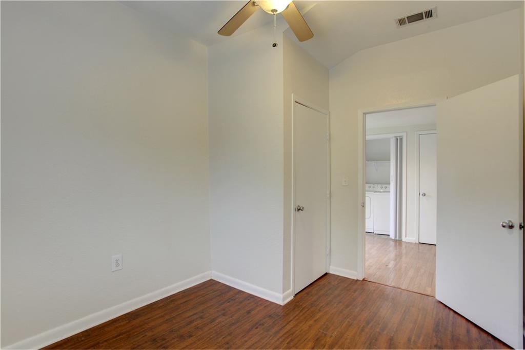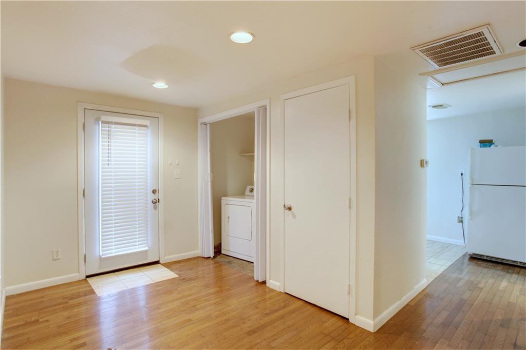 Great location and neighborhood! Charming Garage Apartment 2 beds/1 bath, Laminate Wood Floors, Bathroom with Marble and Travertine Floors. Fridge, Washer and Dryer Included. Private fenced backyard. No carpet!