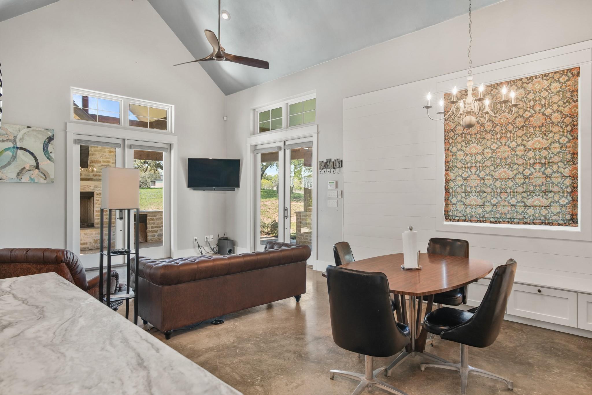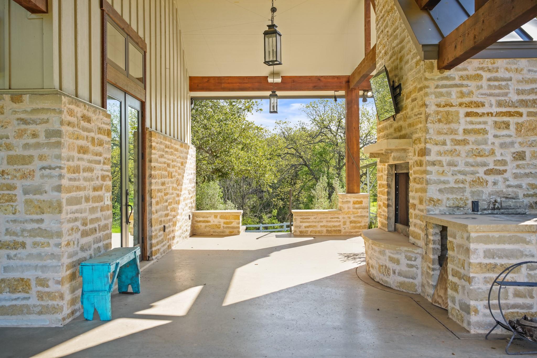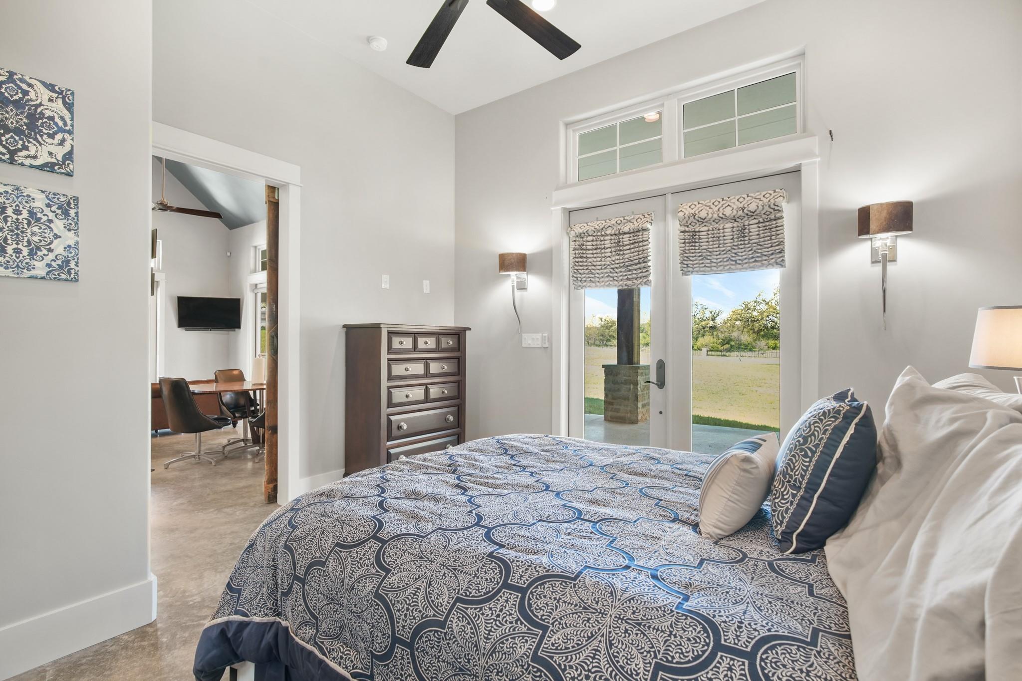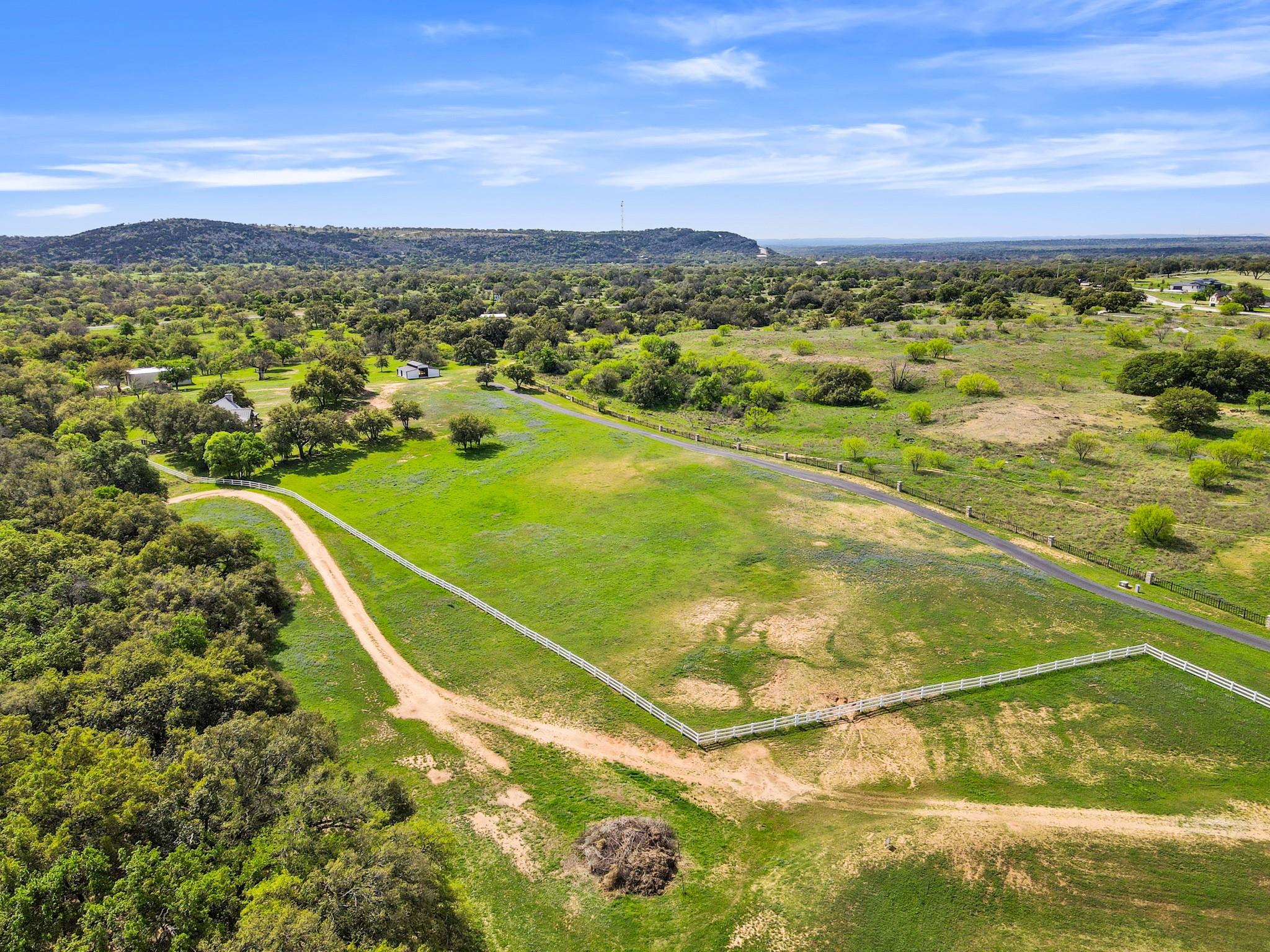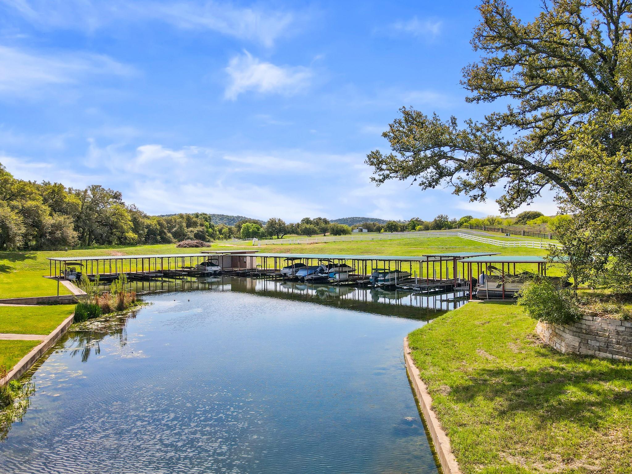 Luxurious Lakefront Horse Ranch Retreat! Nestled on the tranquil shores of Lake LBJ, this breathtaking Gated 20-acre +/- estate offers an unparalleled blend of luxury living and equestrian paradise. Boasting stunning Lake and Hill Country views, this meticulously crafted property is a haven for those seeking ultimate serenity and sophistication. Key Features: Custom-built 2 Bedroom/1-Bath Stone/Brick/Hardiplank Home with High Ceilings, Stained Concrete Flooring, Leathered Granite Countertops, Stainless Steel Appliances and Custom Wrap-Around Patio with Fireplace! Newer 4 Stall Horse Barn with Tack Rooms and Electric! Perfect for Equestrian Enthusiasts and Horse Lovers! Newer Insulated Workshop with Electric, Ideal for Hobbyists or Those Needing Additional Workspace! 2 Ponds and Partially Cleared/Partially Wooded Land! Tranquil Natural Beauty Surrounds the Propert!y! Two Slips in Community Marina...One for a Boat/One for Two Jetskis...comes with this Home! Easy Access to Enjoy Lake Activities and Waterfront Living! Mature Trees, Manicured Grounds with Bluebonnets and partial Sprinkler System. Enchanting Landscape Perfect for Outdoor Entertaining and Relaxation. Propane Tank and Security System Ensuring Safety and Convenience for Your Peace of Mind! With approximately 95 feet of Lakefront and a private dock with electric, every day is a lakeside retreat! Whether you're unwinding on the patio, exploring the vast grounds, or indulging in water sports, this property offers the ultimate in lakeside luxury. Don't miss the opportunity to experience this slice of paradise! Schedule your private showing today and discover the endless possibilities awaiting you at this remarkable Lake LBJ waterfront estate.