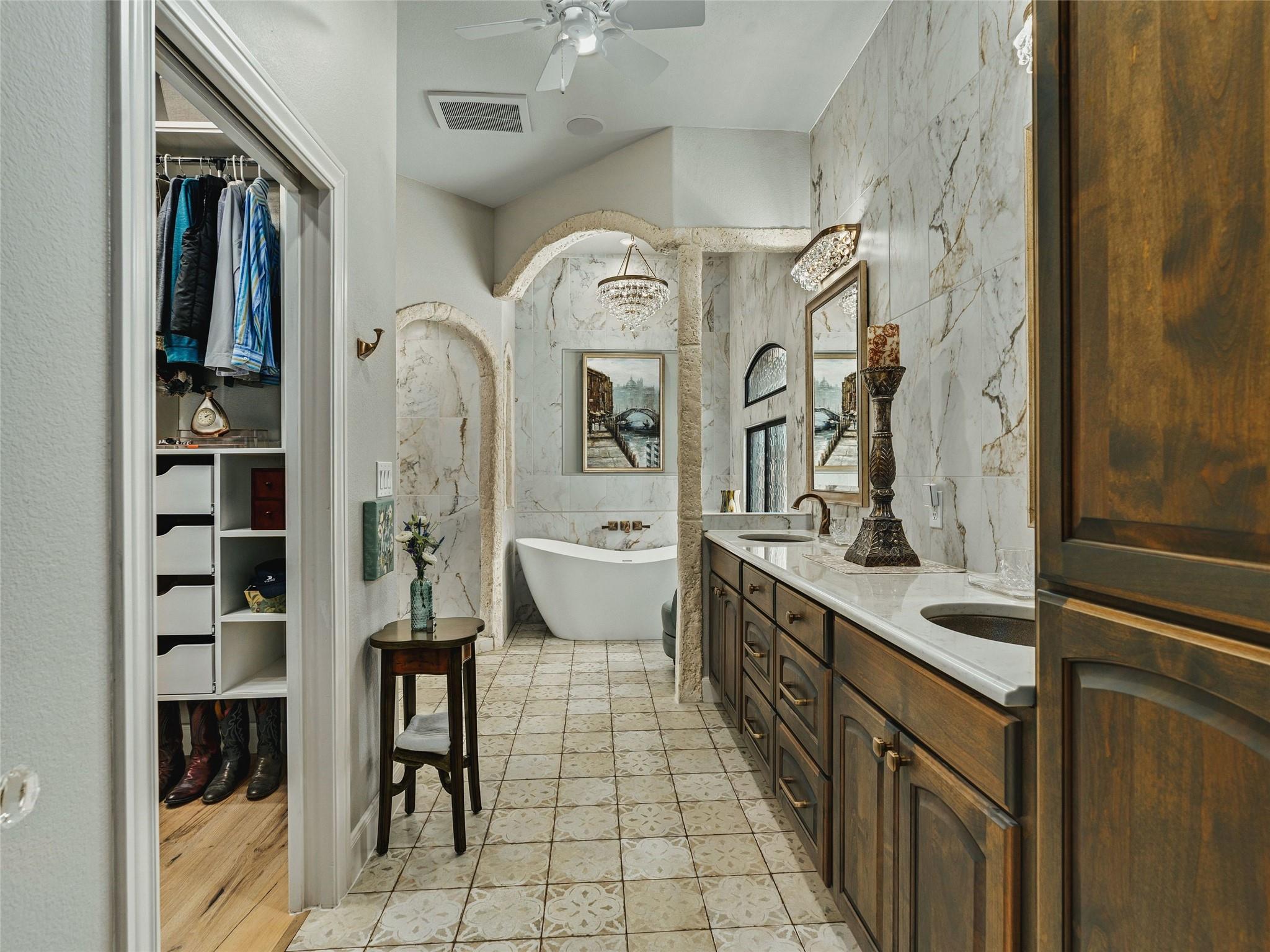 | Interior Features | Breakfast Bar, Ceiling Fan(s), High Ceilings, Chandelier, Double Vanity, Electric Dryer Hookup, Gas Dryer Hookup, Entrance Foyer, French Doors, Kitchen Island, Multiple Living Areas, Open Floorplan, Pantry, Primary Bedroom on Main, Recessed Lighting, Soaking Tub, Walk-In Closet(s), Washer Hookup, Wet Bar, Wired for Data, Wired for Sound | |