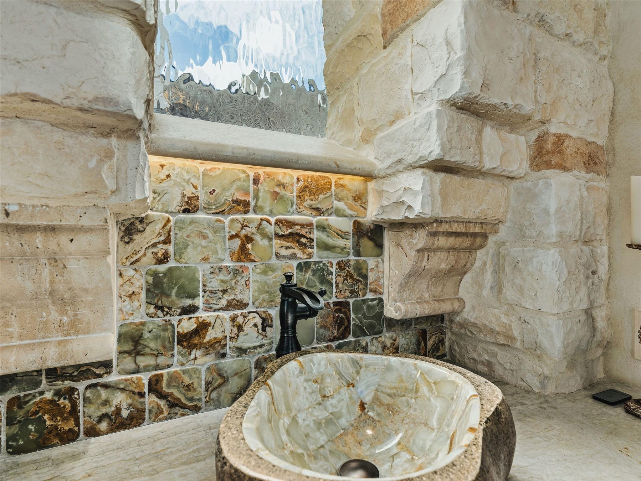 Tuscan inspired river villa estate on the beautiful Comal Springs. Beautifully situated on the hill side of the river offering sprawling views of New Braunfels and multiple patios down to the river with Island privileges. The main home was built for entertaining with a gourmet kitchen and an open living and dining area that flows to the large outdoor patio. The first floor is complete with an office and primary suite with a gorgeous updated bathroom and walk in closet. The bathroom was updated and redesigned with beautiful chandelier lighting, tile floors, and walls, including the large shower and a slipper tub. The primary closet was redesigned with a new floor, pull down hangers, built in shelving, drawers and cabinets. The master bedroom flooring is new along with the wood shutters. A versatile upstairs space with full bathroom and an additional patio can be personalized to add another few bedrooms, media room, or second living area. Steps down from the main home, find the separate guest cottage originally built in 1938. The cottage has been remodeled with updated wiring, thermopane windows, paint, and new bathroom. Other features include a private gated entry, plentiful parking along the landscaped entry drive, three car garage, and walking distance to Landa Park. The primary bedroom is located on the main floor, and the second bedroom is located in the guest's cottage house. Plans available to add two additional bedrooms on the top floor. This property offers a truly wonderful opportunity to own a New Braunfels gem.