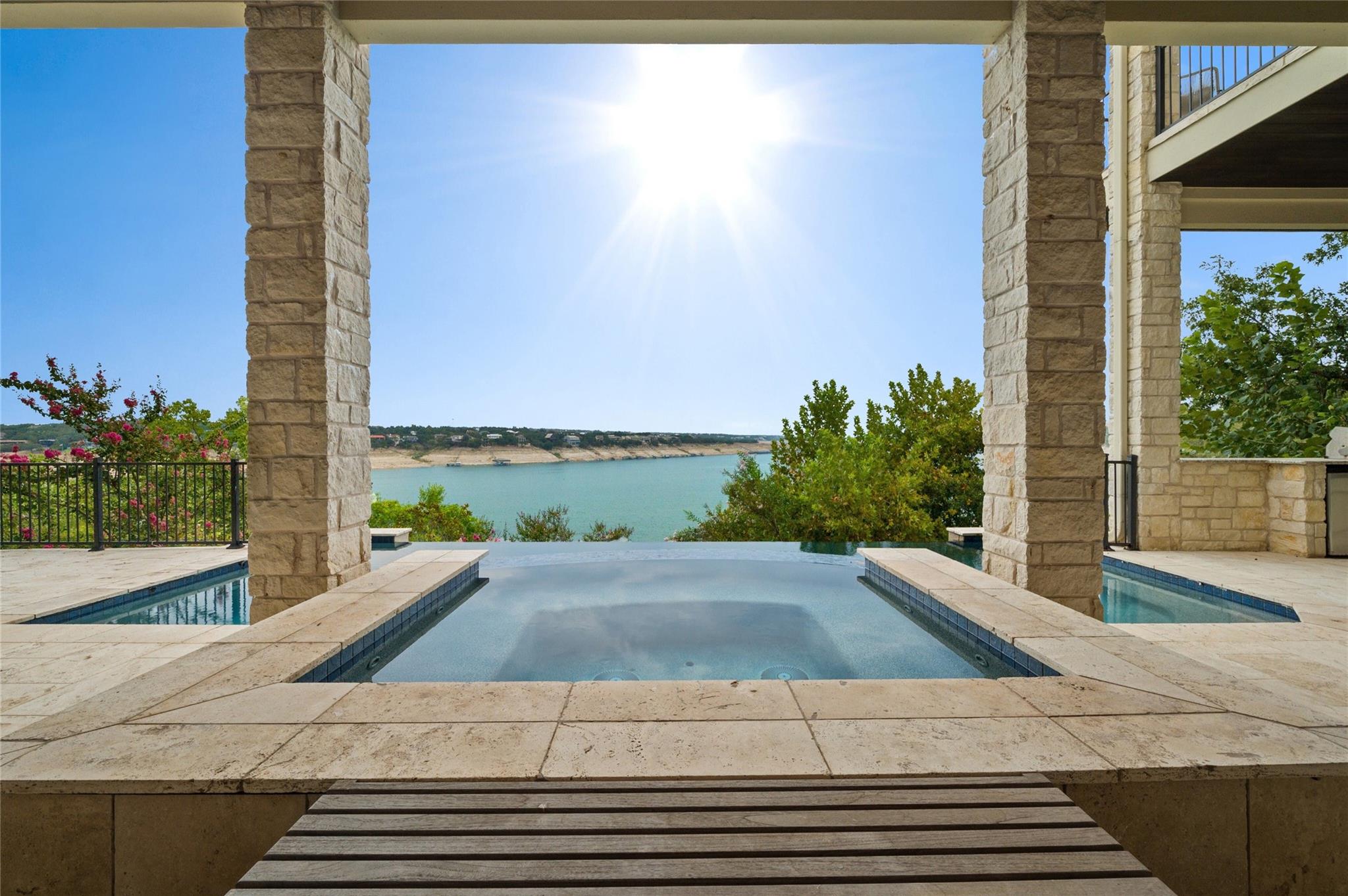 Stunning Waterfront Retreat on Lake Travis-Perfect for Family Paradise or Second Home Oasis. This remarkable home nestled on the serene shores of Lake Travis is a haven for families, empty nesters, or second-home enthusiasts seeking a slice of paradise. With its deep water access, own private dock, and open floor plan, this property is the epitome of luxurious lakeside living. On the main level, you’ll find an expansive primary, living space, kitchen, dining, and breakfast area-bathed in natural light and blessed with breathtaking panoramic lake views. Imagine waking up to these landscapes every day or entertaining friends and family against this stunning backdrop. Need extra room for guests? The spacious office on the main can easily be transformed into a fifth bedroom, offering versatility to suit your needs. Almost every room in this magnificent home offers picturesque views of the lake, bringing the outdoors in and allowing you to savor the breathtaking scenery. As you head downstairs, you will discover three luxurious bedroom suites with baths and a separate living/media room offering a convenient bar. Step outside, and you’ll be greeted by an infinity pool and spa, where you can soak away your worries while gazing at the lake and our beautiful Texas skies at sunset. The covered patio and outdoor kitchen provides the perfect setting for al fresco dining, creating unforgettable memories. This is more than a home-it’s a lifestyle! Located in the highly sought-after Lakeway area, this property provides a prime location near top-rated schools, shopping, dining and recreational opportunities. You’re investing in a lifestyle filled with relaxation, adventure and memories. Whether you’re an avid boater or simply enjoy playing in the water, this home is for you! Who wouldn’t want to feel like they are on vacation all of the time?