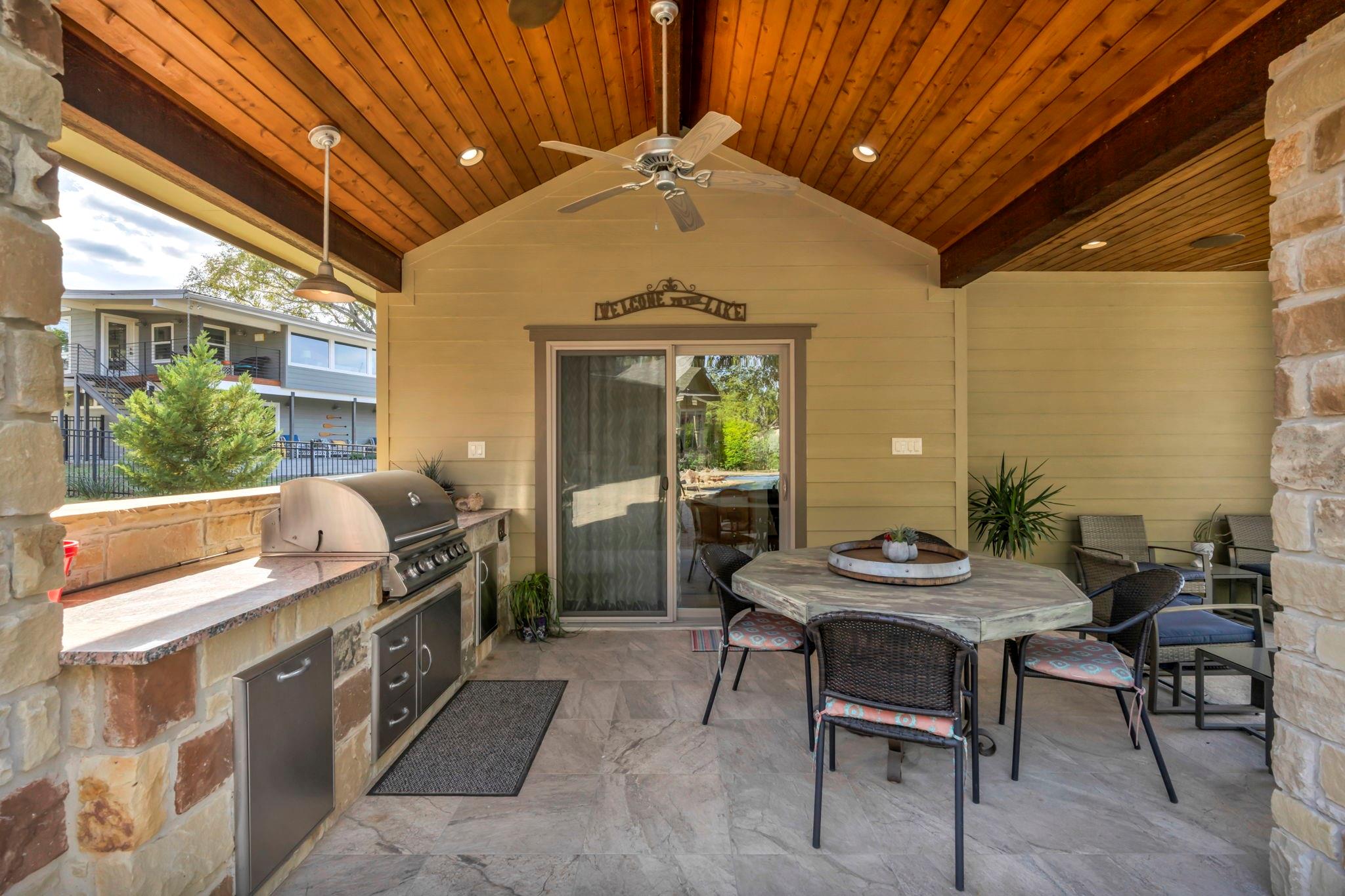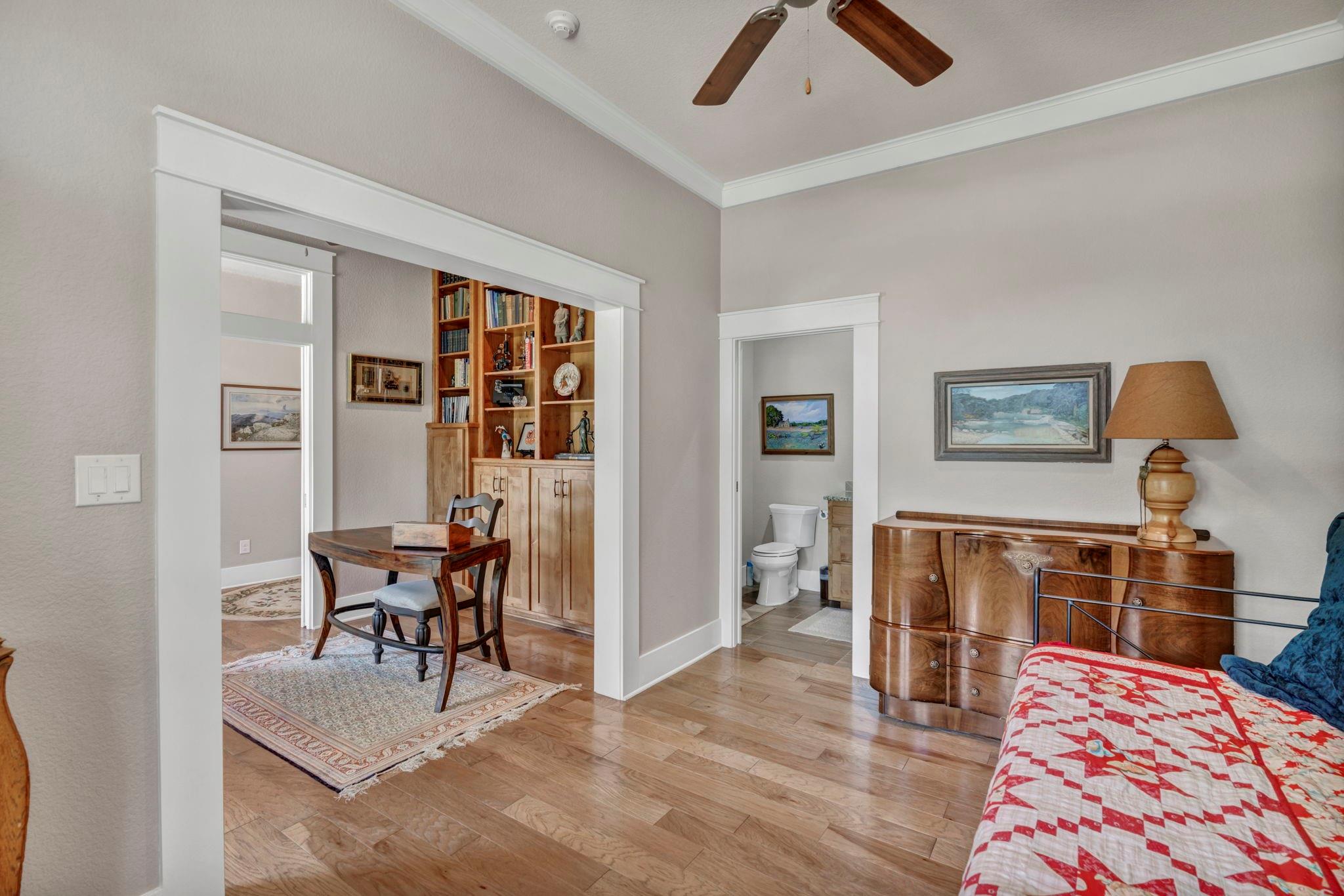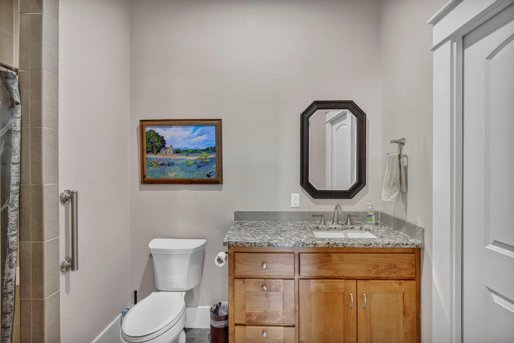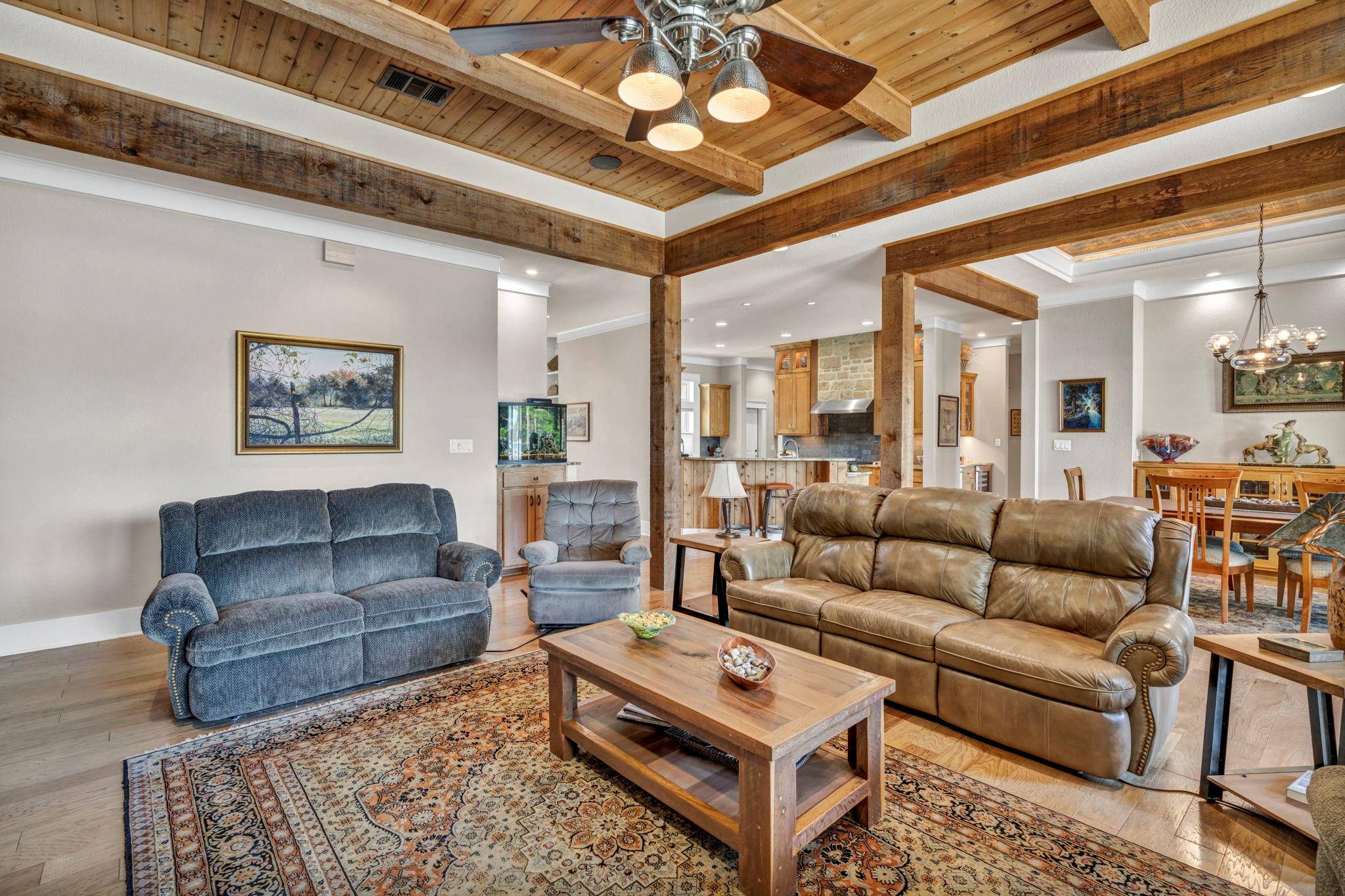 Location. Location, Location on Lake LBJ. Located in the highly sought after Blue Lake Estates, this exquisite lakefront home combines a first-class design with beautiful craftsmanship and finished with an unsurpassed attention to detail. The main house has three bedrooms downstairs each with an ensuite bath. A fabulous, split floor plan offers an expansive lakeside owner's suite with a sitting area to enjoy water views. A bonus room upstairs in the main house has a half bath and could be used a bedroom, exercise room, or would be perfectas a media room. The main living, kitchen, and dining blends living space with lake views. A detached casita offers an additional 420square feet of living with a kitchenette, a large bedroom with lake views, and a full bath. The third garage bay was designed for a smal RV. It has a twelve foot garage door, sewer dump station, and a 30 amp outlet. There are almost too many features to list but include a studio with a glass garage door, a fenced yard with a sprinkler system and garden area, a 25 foot covered boat dock with a touchless boat cover, an abundance of storage throughout, over 90 feet of lake frontage per the county, an oversized utility room with built in cabinetry and a large sink, and propane on site. The composition roof was replaced in December, 2023, exterior of main house and guest house painted in Summer, 2023 and garage floor was painted in February, 2024.. Boat is available one separate bill of sale.