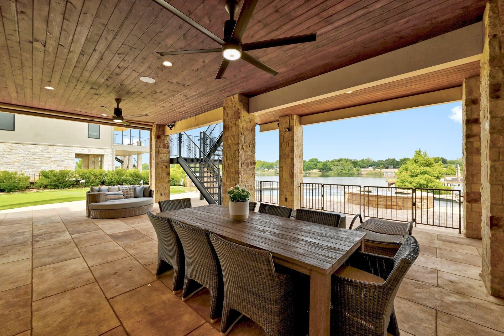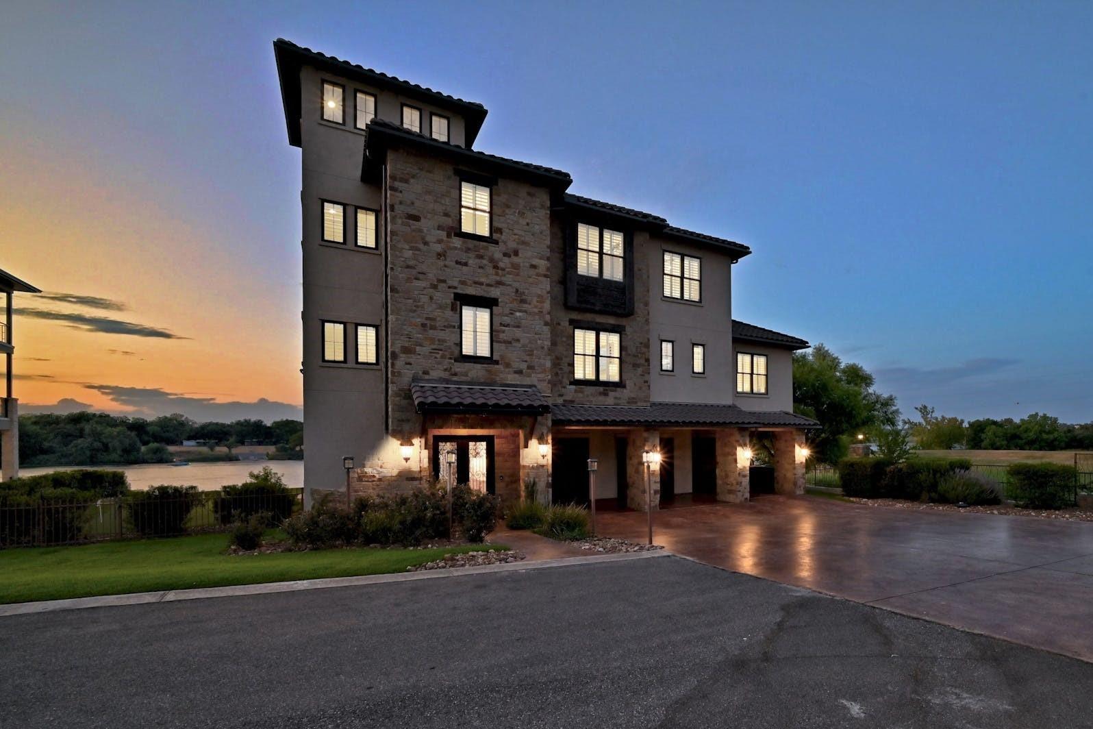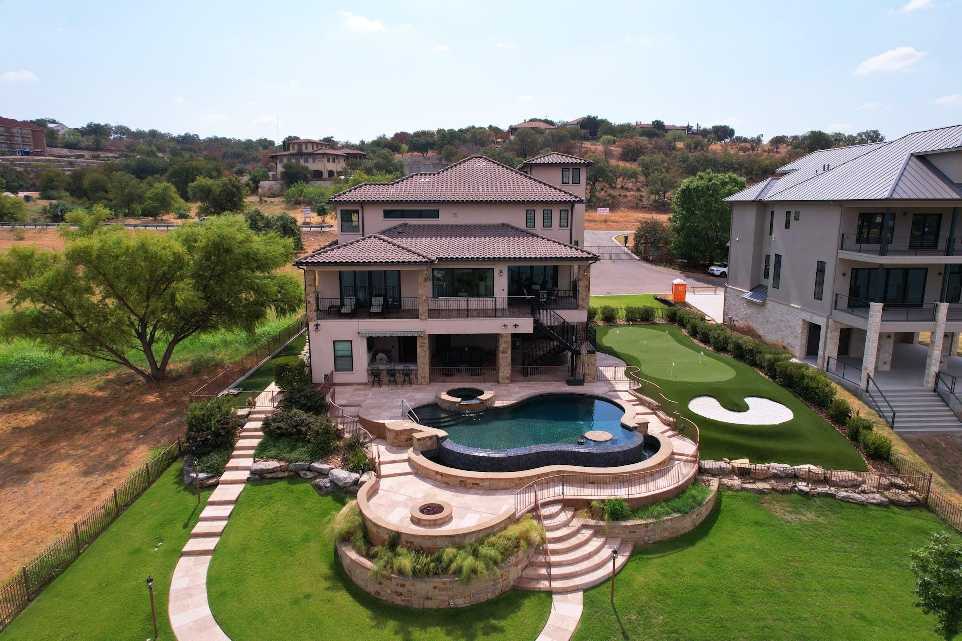 This magnificent lakefront retreat epitomizes luxury living at its finest. With over 4,800 square feet of exquisitely designed living space and sprawling across a lush 1.14-acre double lot, this home offers an unparalleled blend of modern elegance, outdoor recreation, and serene waterfront living. Stepping through the impressive front entrance, you are greeted by a modern and sophisticated interior. The open-concept design seamlessly connects the living spaces, allowing for an effortless flow of natural light and panoramic lake views making hosting dinner parties or casual gatherings a breeze. The home boasts four generously sized bedrooms, each with its own full bathroom, as well as two additional half bathrooms providing comfort and privacy for residents and guests alike. The jewel in the crown of this property is the infinity pool that seems to merge with the lake's horizon. It's a tranquil oasis where you can unwind and soak in the sun. The two-story boat dock offers easy access to the water, perfect for water sports enthusiasts or those seeking a leisurely day on the lake. With its modern amenities, and unparalleled outdoor spaces, this lakefront home is a sanctuary of relaxation and luxury. Whether you're gazing at the breathtaking sunsets from your infinity pool or perfecting your golf game on the putting green, this property is a dream come true for those seeking the ultimate waterfront lifestyle. Centrally located a short distance from downtown Marble Falls and its amenities and within a small gated community which offers lock and leave options for the busy buyer, this property is a must see.