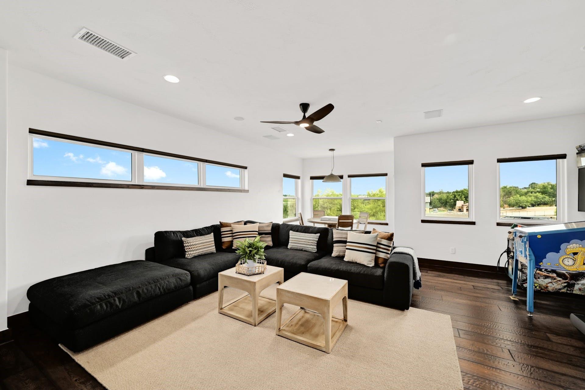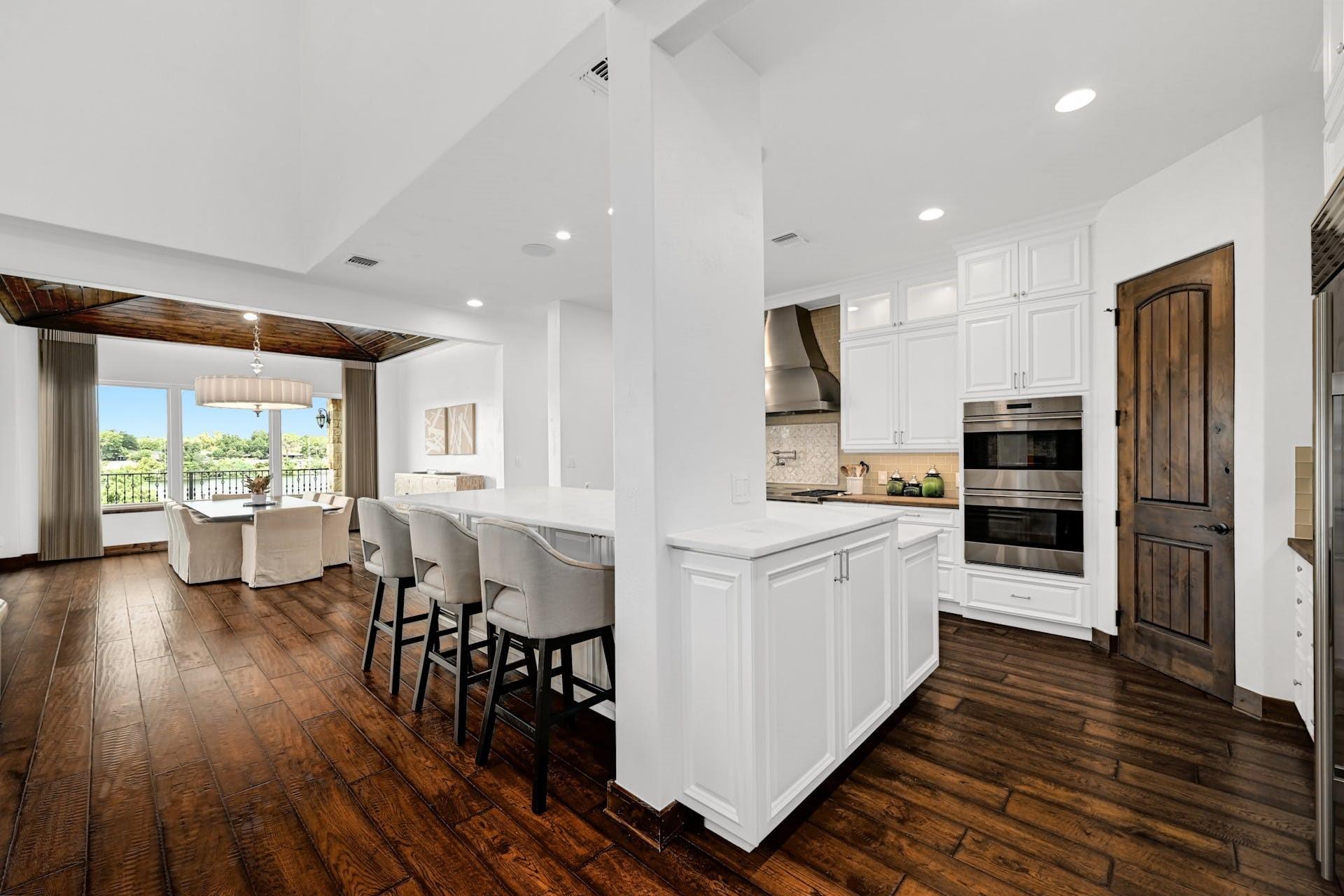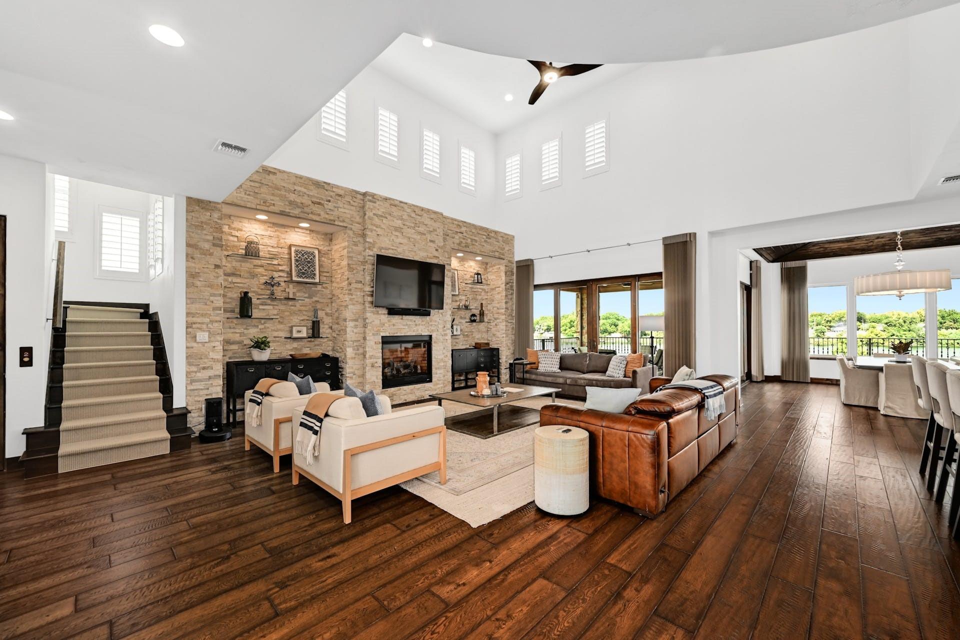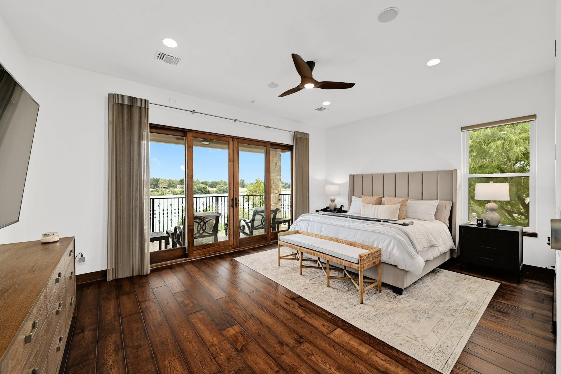 This magnificent lakefront retreat epitomizes luxury living at its finest. With over 4,800 square feet of exquisitely designed living space and sprawling across a lush 1.14-acre double lot, this home offers an unparalleled blend of modern elegance, outdoor recreation, and serene waterfront living. Stepping through the impressive front entrance, you are greeted by a modern and sophisticated interior. The open-concept design seamlessly connects the living spaces, allowing for an effortless flow of natural light and panoramic lake views making hosting dinner parties or casual gatherings a breeze. The home boasts four generously sized bedrooms, each with its own full bathroom, as well as two additional half bathrooms providing comfort and privacy for residents and guests alike. The jewel in the crown of this property is the infinity pool that seems to merge with the lake's horizon. It's a tranquil oasis where you can unwind and soak in the sun. The two-story boat dock offers easy access to the water, perfect for water sports enthusiasts or those seeking a leisurely day on the lake. With its modern amenities, and unparalleled outdoor spaces, this lakefront home is a sanctuary of relaxation and luxury. Whether you're gazing at the breathtaking sunsets from your infinity pool or perfecting your golf game on the putting green, this property is a dream come true for those seeking the ultimate waterfront lifestyle. Centrally located a short distance from downtown Marble Falls and its amenities and within a small gated community which offers lock and leave options for the busy buyer, this property is a must see.