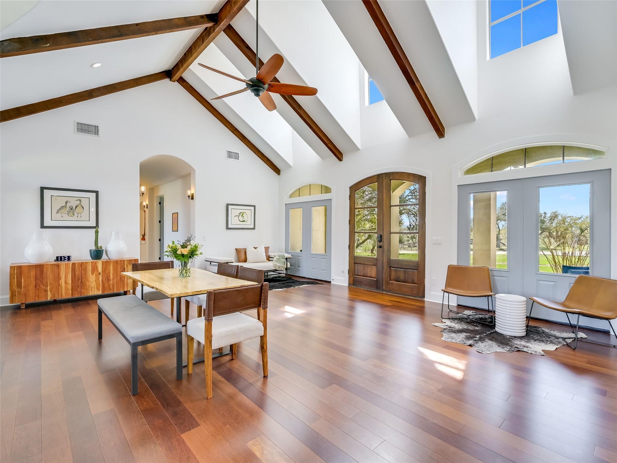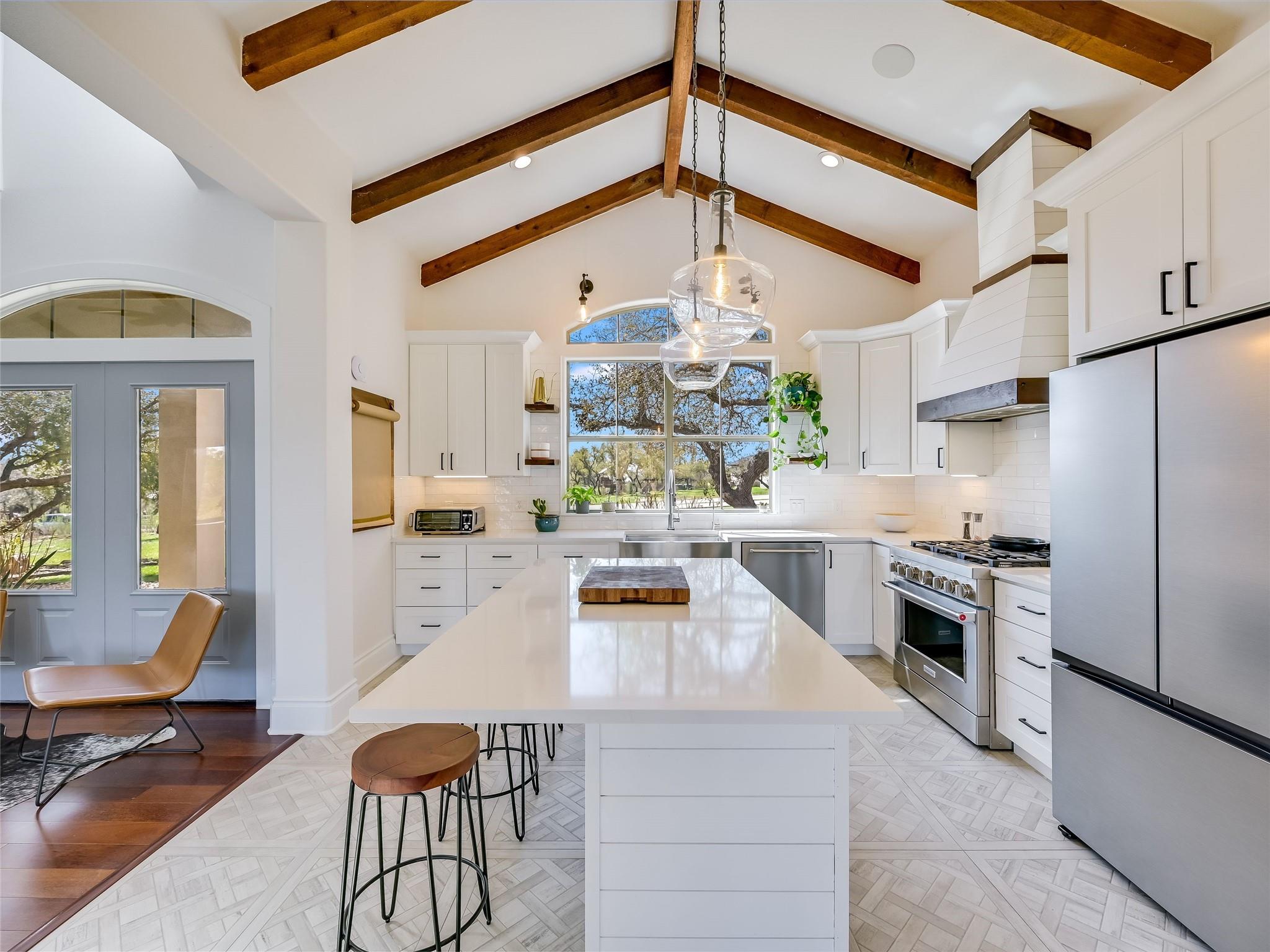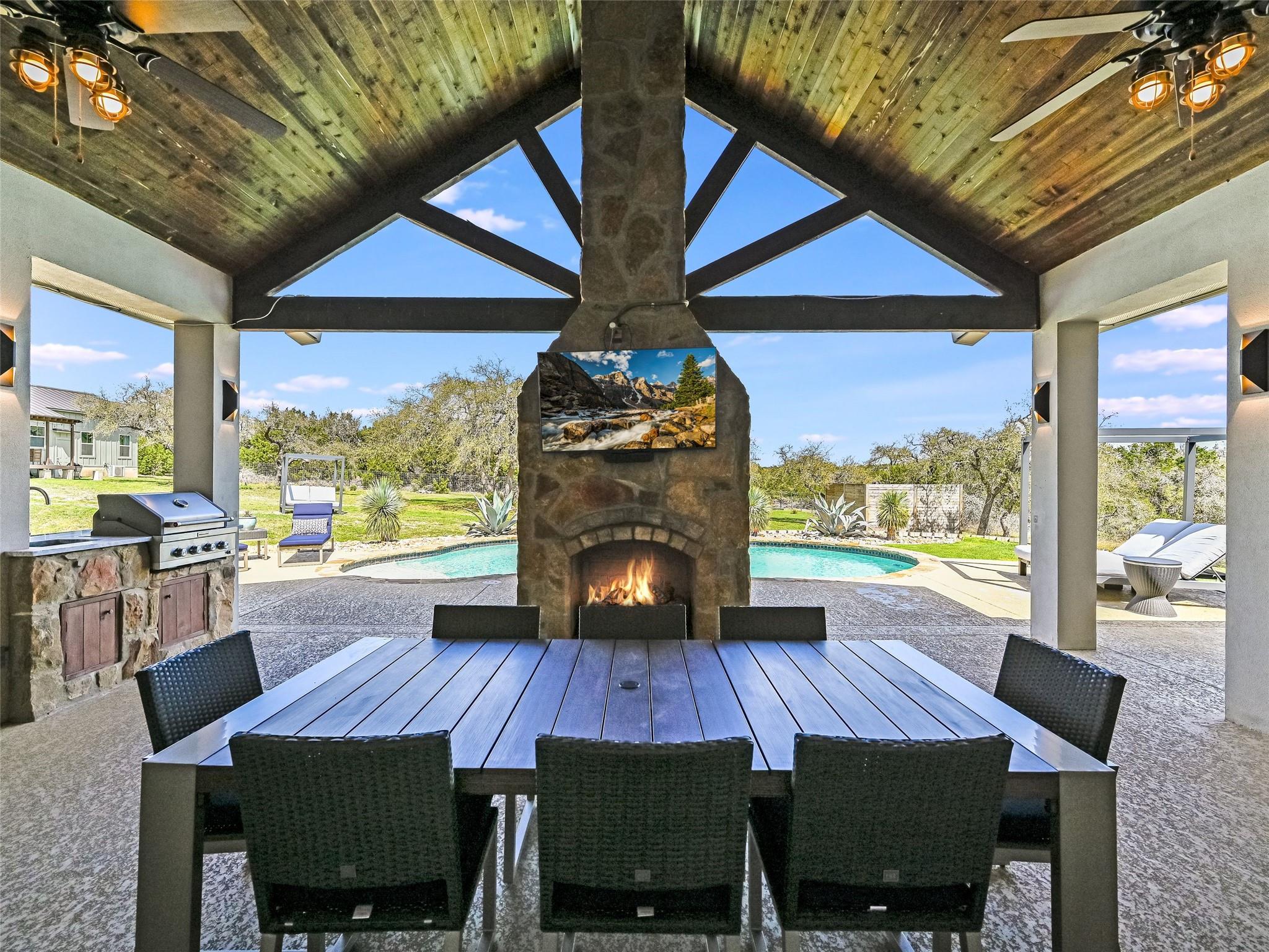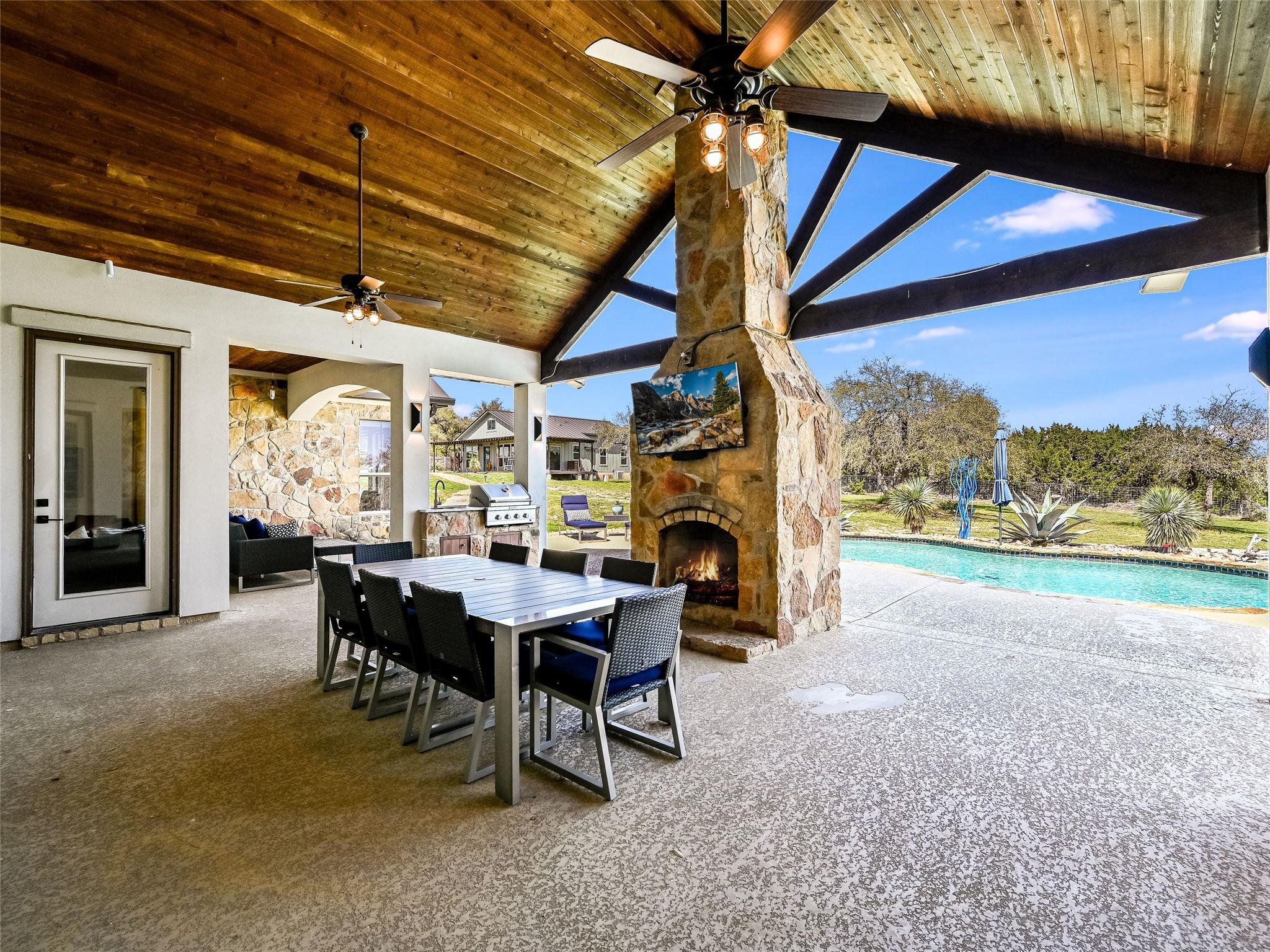 **Discover Your Hill Country Haven!** This stunning residence offers over 4,300 sqft of living space in the main home, complemented by a spacious 1,162 sqft, 2-bed guest house, a pool, and an expansive outdoor area perfect for year-round entertaining. Situated on over 2 acres in a serene gated community off scenic Fitzhugh Rd, the main house features mostly one-story living with 4 beds, an office, 3 full baths, a Jack-and-Jill bath, and a powder room. A spacious upstairs game room can easily transform into a 5th bedroom with an ensuite bath or a garage apartment above the 3-car garage. The grand entrance, flooded with natural light and vaulted ceilings, is perfect for gatherings inside and out. Relax on the large covered back patio with a fireplace, outdoor kitchen, and pool. The gourmet kitchen, the heart of the home, boasts a new prep kitchen/pantry with a second dishwasher, wine fridge, and full-size secondary refrigerator for added convenience while entertaining. The newly updated primary retreat features spa-like amenities, including a 6’ soaker tub and oversized walk-in shower. Additional highlights include solid hardwood flooring, updated baths with quartz countertops and floor-to-ceiling tile, and smart home upgrades like a Tesla wall charger, commercial grade dual-WAN network, indoor and outdoor speakers, and motorized shades. Conveniently located between Austin, Dripping Springs, and Bee Cave, this home offers luxury living in the Hill Country with city conveniences. With over $200K in recent upgrades, the Hill Country Haven is truly a one-of-a-kind gem.