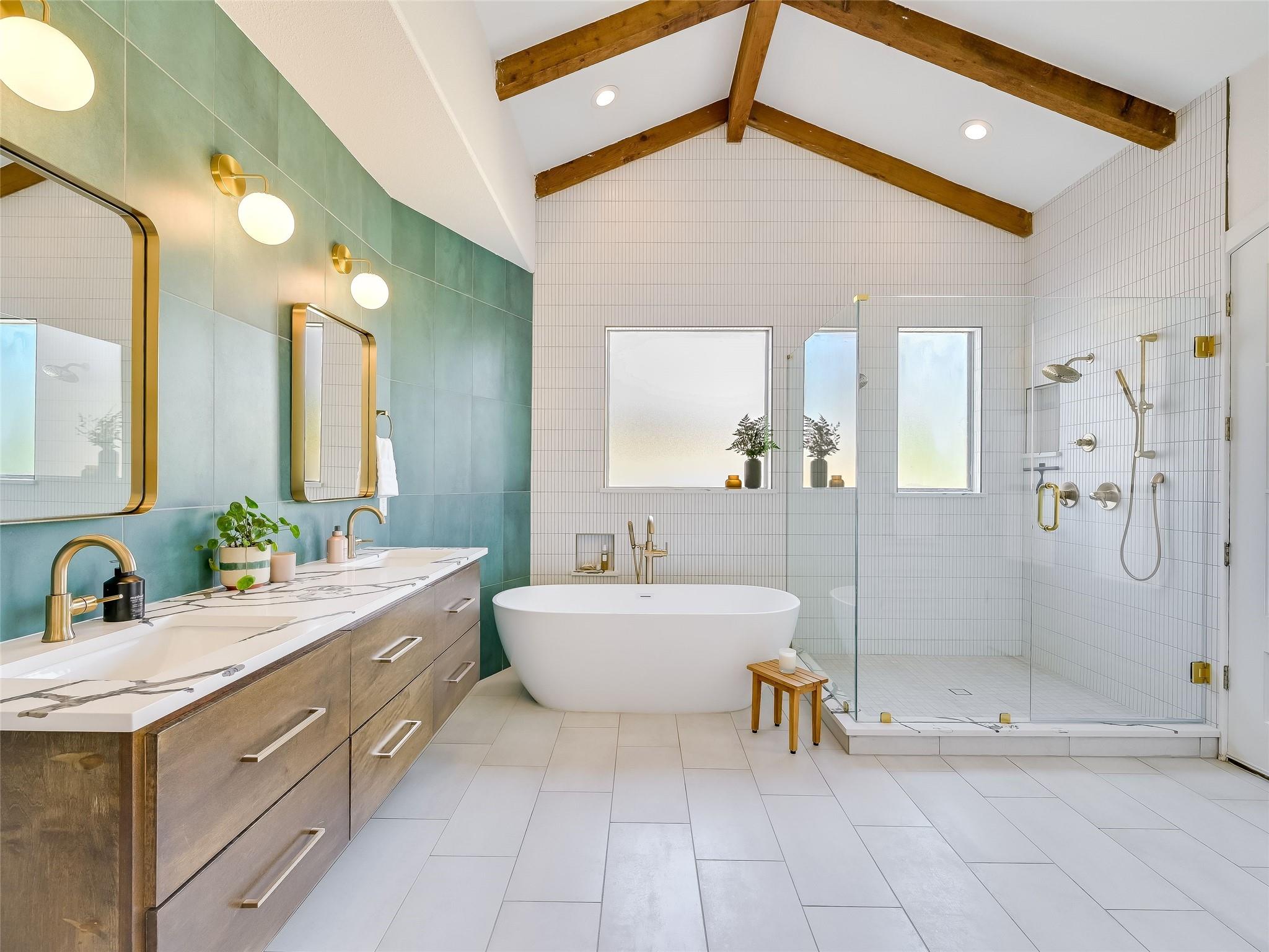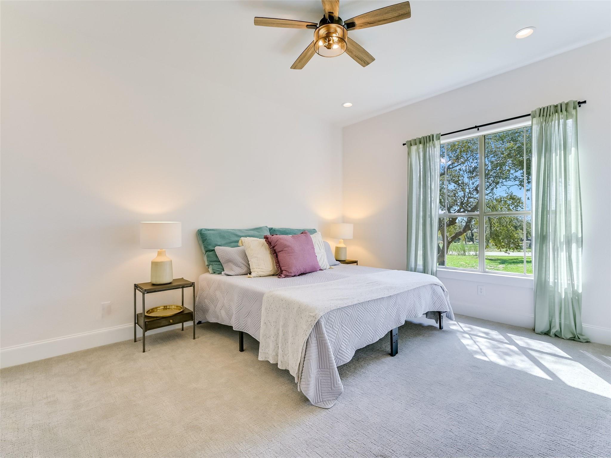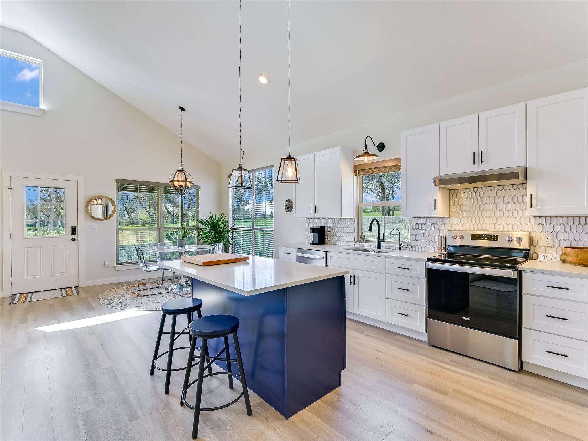 | Interior Features | Bookcases, Ceiling Fan(s), Cathedral Ceiling(s), High Ceilings, Vaulted Ceiling(s), Granite Counters, Stone Counters, Double Vanity, Dry Bar, Eat-in Kitchen, In-Law Floorplan, Kitchen Island, Multiple Living Areas, Open Floorplan, Pantry, Primary Bedroom on Main, Recessed Lighting, Smart Home, Smart Thermostat, Sound System, Walk-In Closet(s), Wired for Sound | |