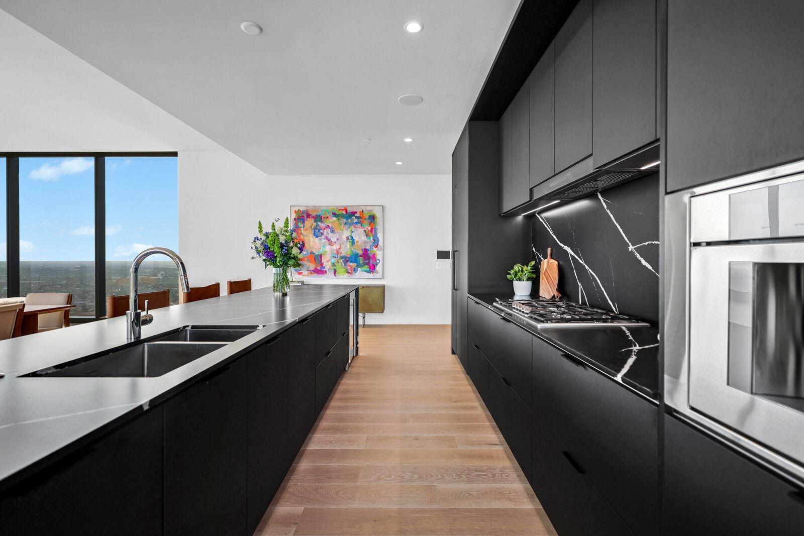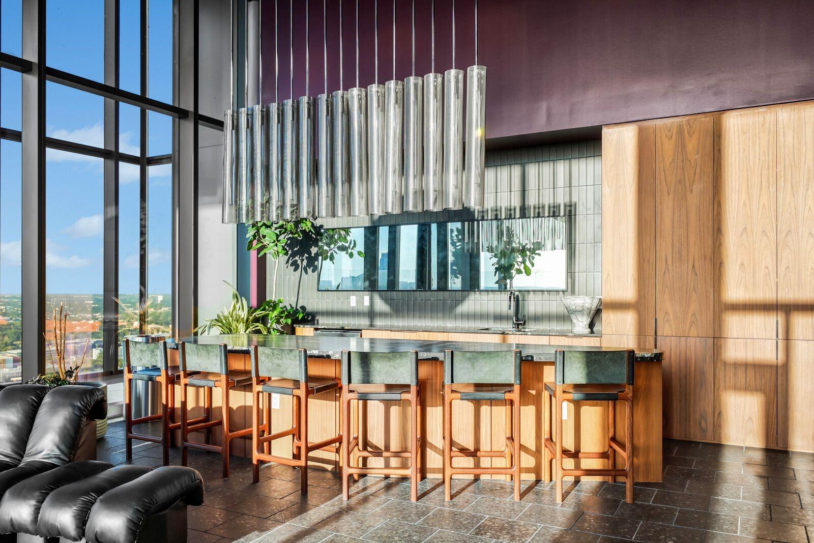 Embrace convenience and luxury in this sky-high penthouse, perfectly positioned in vibrant Austin, TX on Rainey street! Bask in breathtaking panoramic views from the 46th story through floor-to-ceiling windows and modern finishes that speak for themselves. The primary bedroom offers an ensuite with a soaking tub, walk-in shower, and double vanities, while three additional bedrooms provide unlimited possibilities for optimal use. The well-equipped kitchen boasts top-of-the-line Thermador appliances, a wine fridge, and all you need to elevate your hosting abilities. With an open-concept floor plan that flows seamlessly, stepping onto the balcony will make you feel as if you're floating amidst the clouds. Explore over 13,000 sq ft of amenities, including a pool, fitness center, dog park, spa, and sky lounge – offering a variety of indulgent experiences. Enjoy seamless access to the renowned Lady Bird Lake Hike & Bike Trail and discover a myriad of exquisite dining options just a stone's throw away. Embrace a lifestyle of luxury and comfort in this extraordinary penthouse residence.