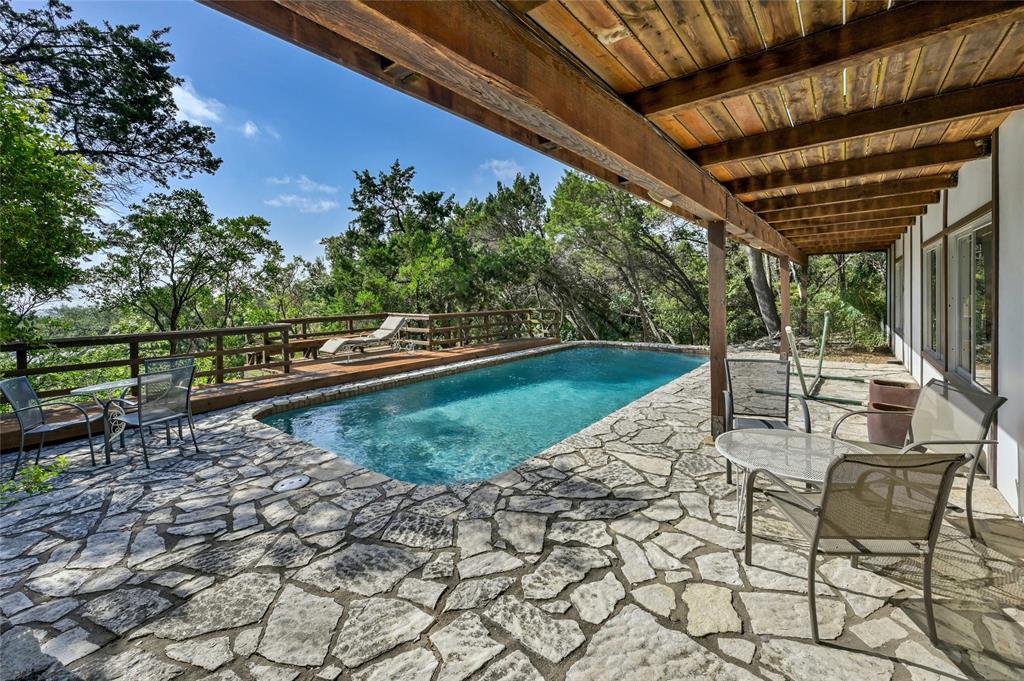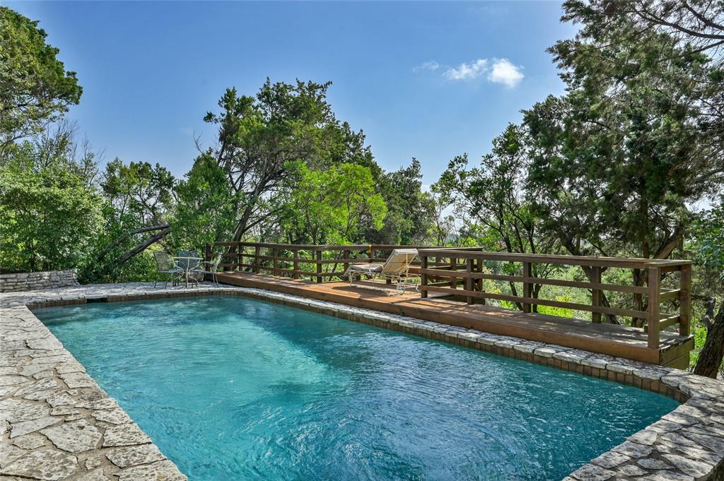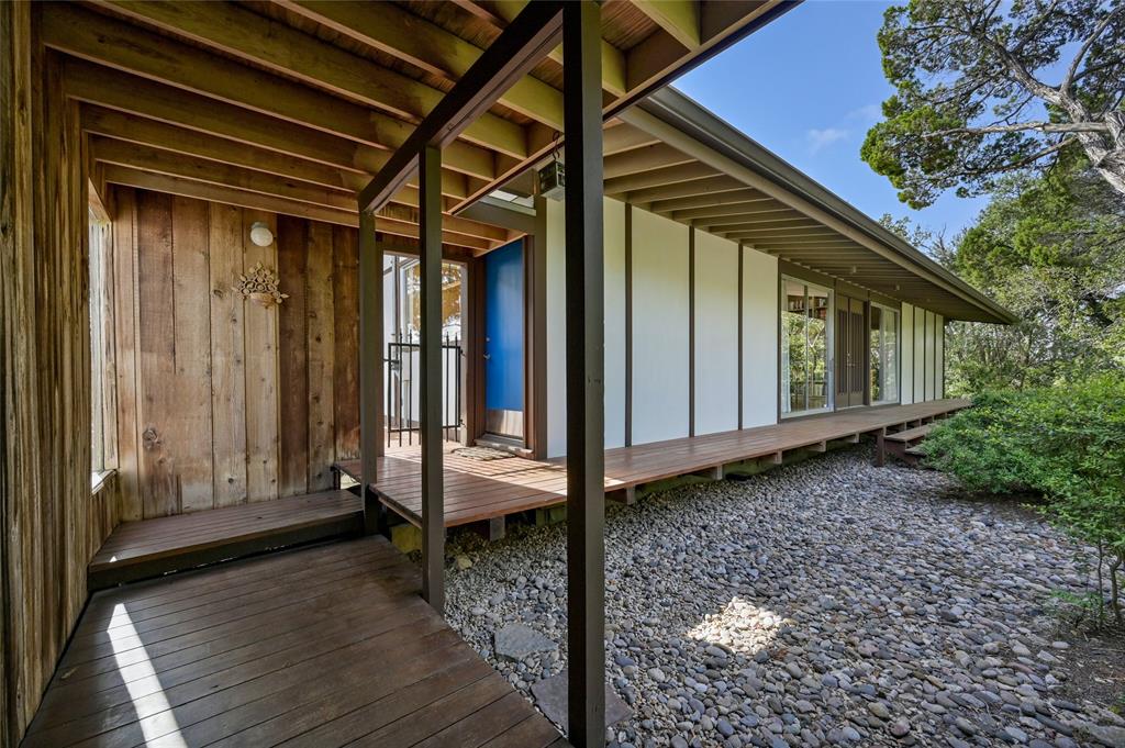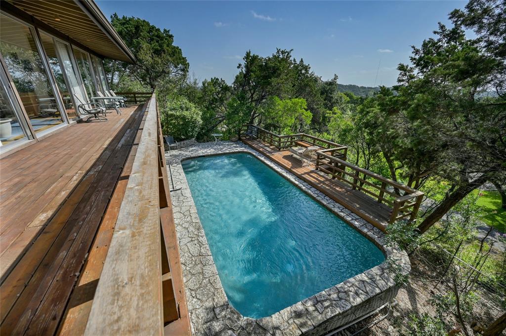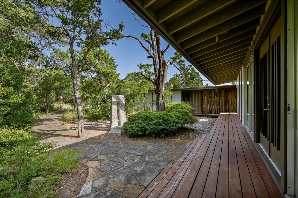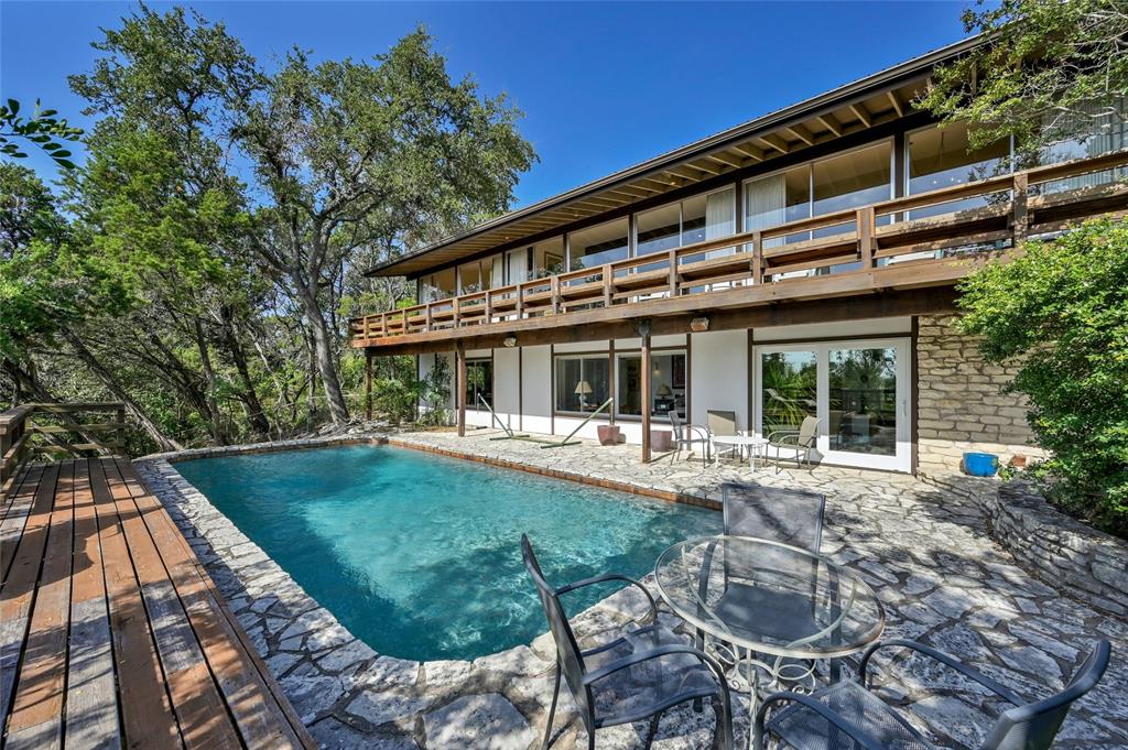 Experience luxury living in a home that transcends time. This extraordinary mid-century masterpiece, crafted and built for his own residence by the renowned/visionary architect David McCandless, awaits your ownership. Welcome to true mid-century modern style! This 5-bedroom, custom home sits on a sprawling 1.37-acre hillside lot in the prestigious Westlake ISD. This architectural gem seamlessly blends the beauty of nature with the home design. As you enter, you’re greeted by high ceilings and wood floors that lead you through the spacious living areas. The heart of the home boasts an updated kitchen with granite countertops, perfect for both everyday cooking and entertaining guests. The adjacent living space features a cozy fireplace. One of the highlights of this property is a lovely inground pool. Step outside or look through the panoramic windows to soak in sweeping views of the hill country and the Austin skyline, a picturesque backdrop for unforgettable gatherings. With its distinctive design, this home offers both form and function, making it a haven for relaxation. Each of the 5 bedrooms provides a serene retreat. The detached garage adds convenience while preserving the architectural integrity of the main structure. This property is a beautifully serene retreat!