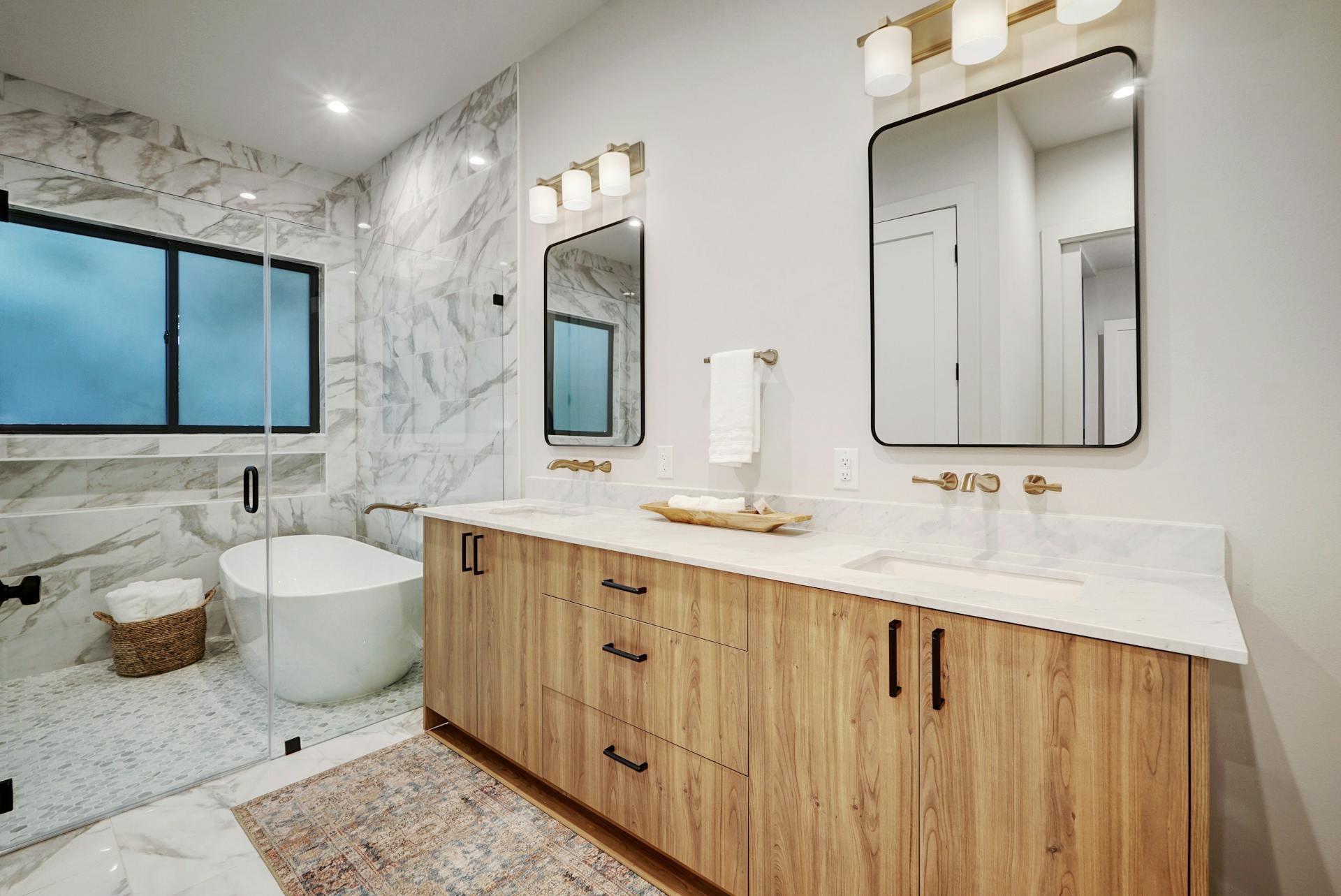 Welcome to 3900 Ridgelea, an extraordinary new estate crafted by Statesman Standard, nestled in the desirable Bryker Woods neighborhood known for its exceptional schools. Prepare to be captivated by this magnificent six-bedroom, four-and-a-half-bathroom custom home, offering a spacious open floor plan, floor-to-ceiling windows, and an enchanting outdoor oasis with a beautifully designed backyard and pool. The detached garage features a guest apartment, adding versatility and convenience. Step into the breathtaking great room as you enter, where elegance meets functionality. The designated dining room seamlessly flows into the kitchen, boasting integrated Dacor professional appliances, exquisite lighting, quartz counters, and premium custom cabinetry throughout. Expansive windows embrace the main living area, providing scenic views of the generous outdoor space and the stunning pool. The primary bedroom, conveniently located on the ground floor, presents an expansive walk-in closet and a masterfully designed bathroom adorned with impeccable finishes. Journey upstairs and discover a well-planned hallway leading to four additional bedrooms, each featuring walk-in closets, two well-appointed bathrooms, an office, and a second-floor laundry room, ensuring both comfort and convenience. Accessible from the incredible outdoor entertainment area, a two-car garage awaits, complemented by a sleek and modern 1-bed/1-bath apartment above, offering a myriad of possibilities and style. Experience the epitome of luxury living at 3900 Ridgelea. This exceptional estate combines meticulous craftsmanship, awe-inspiring design, and an idyllic location, creating a truly unparalleled living experience.