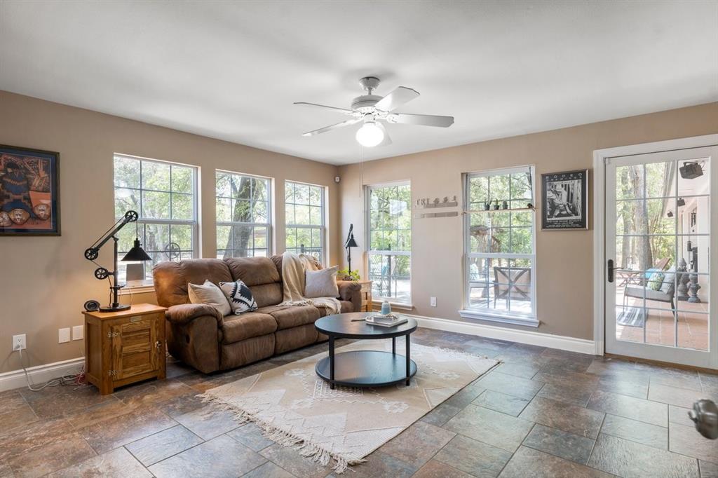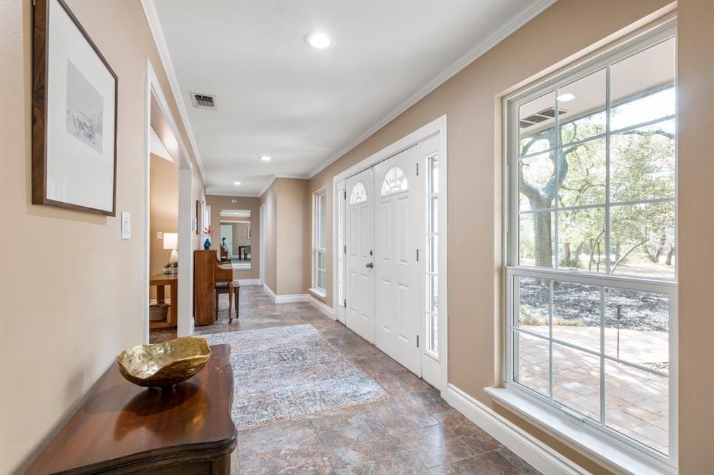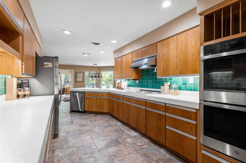 This astonishing 4-bedroom Equestrian Estate is nestled on a 5-acre wooded lot. It is a wilderness retreat near a city setting that is perfect for entertaining guests! The living room boasts a fireplace, cathedral ceilings, recessed lighting, built-in book shelfs, with lots of windows, inviting an abundance of sun-filled light to create a warm and welcoming environment. The Swedish inspired kitchen offers stainless steel appliances with double ovens, corian countertops, massive pantry, and a breakfast area. The owner's retreat is tucked away for added privacy and includes an ensuite bath with double vanity, soaking tub, large separate shower, and two generous walk-in closets. There is a second living area that lends itself to being the perfect game room, TV room or anything else that fits your lifestyle. There is a huge laundry room and mud room that leads you to a massive 3 car garage. The garage was built to support a second story just in case you wanted to add a guest house and has tons of overhead storage. There is a backyard oasis that boasts a beautiful custom pool / spa combination with a waterfall and a large stone patio that creates a resort style living in your own backyard. A short walk into this incredible property sits an overbuilt 3 horse stable with an RV Pad. It also has an invisible fence to keep your dog safe. All of this and only 3 minutes from the Domain! The living room TV, murphy bed, refrigerator, freezer, washer/dryer all convey. Property can be subdivided after purchase.
