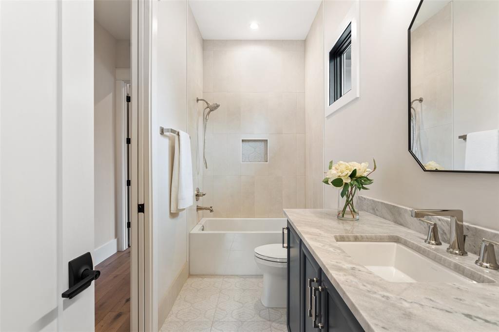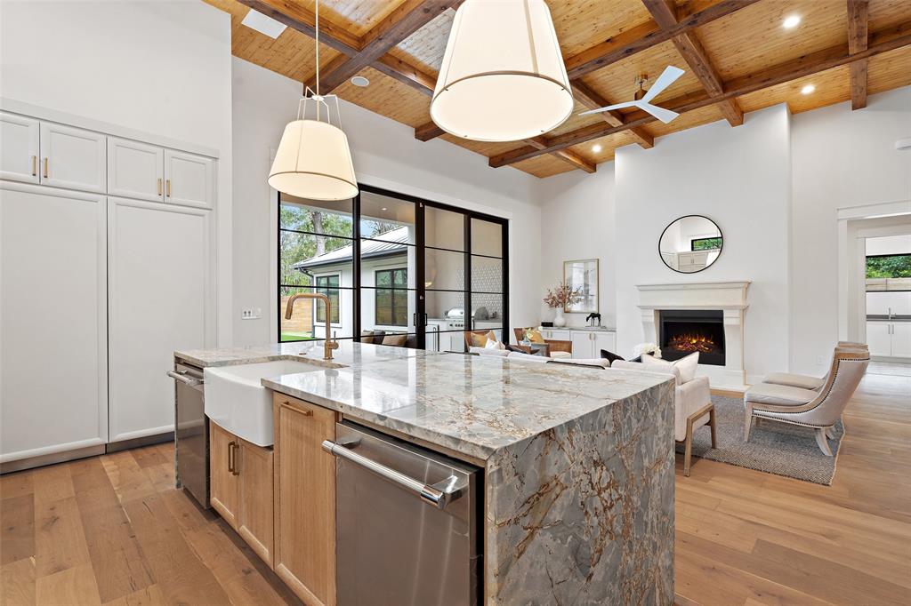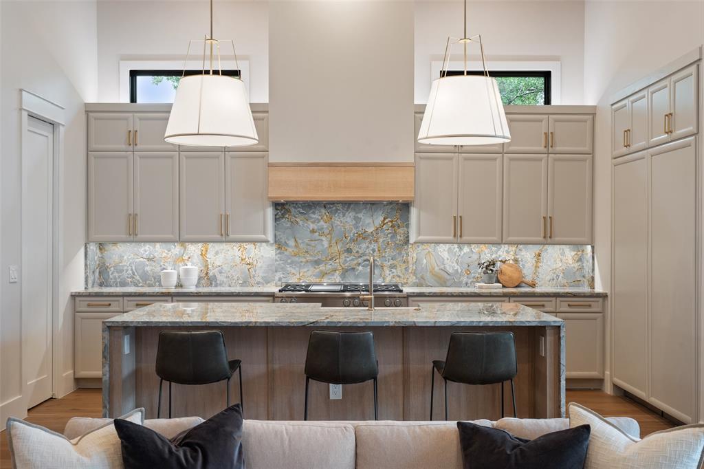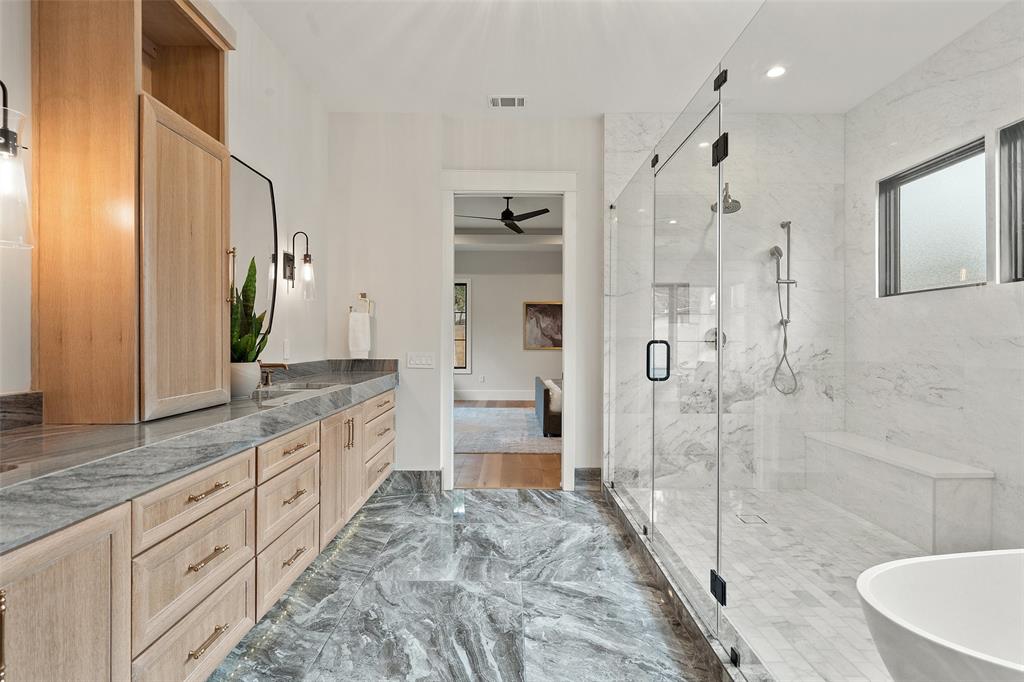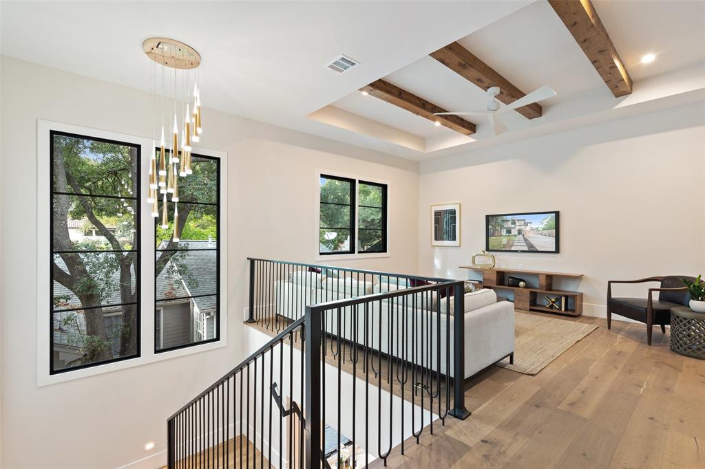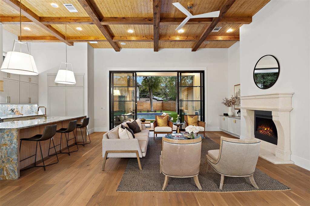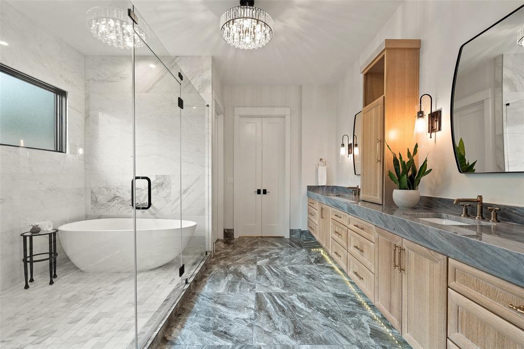 Inspired by French architecture and the indulgent luxury of European design, Lohr Homes curated another spectacular masterpiece in one of Austin's most prestigious neighborhoods, Pemberton Heights. Build Magazine Award Winner-Most Innovative Architecture Craftsmanship Award 2023. Upon entering the home, you are captivated by the tasteful elegance of the refined finishes and drawn to the beautiful view of the pool through the RAM doors that make a statement. The desirable open floorplan harmoniously connects the main level living and dining areas. The gourmet kitchen is appointed with high-end appliances (Miele gas range, Thermador 30-inch built-in refrigerator & 30-inch freezer, two dishwashers, and tall wine refrigerator), quartzite waterfall countertops, custom soft close cabinetry, a spacious center island with breakfast bar seating, and glamorous pendant lighting. The soaring expansive ceiling in the kitchen and living rooms create a grand atmosphere with custom wood-stained beams that provide a warm richness to the rooms. The Cantera stone gas fireplace was polished on site not pre-made. The main level features two bedrooms- one at the entry that could also function as an office with an ensuite bathroom that is also accessible from the hall for guests and a secluded primary bedroom with its own private wing at the back of the home for privacy. The primary bathroom is striking and exudes luxury with marble floors, marble shower and free-standing stone soaking tub. The second level features 3 bedrooms with ensuite bathrooms, a game room and media room. Indulge in the ultimate outdoor living experience with a heated pool/spa combo, outdoor wood burning fireplace, outdoor grill and refrigerator, built-in surround sound speakers, artificial turf, exterior cameras, & sprinkler system. *Buyer to independently verify all info including but not limited to sqft, lot size, taxes, schools, restrictions, etc. Professionally edited photos/yard edited in photos.