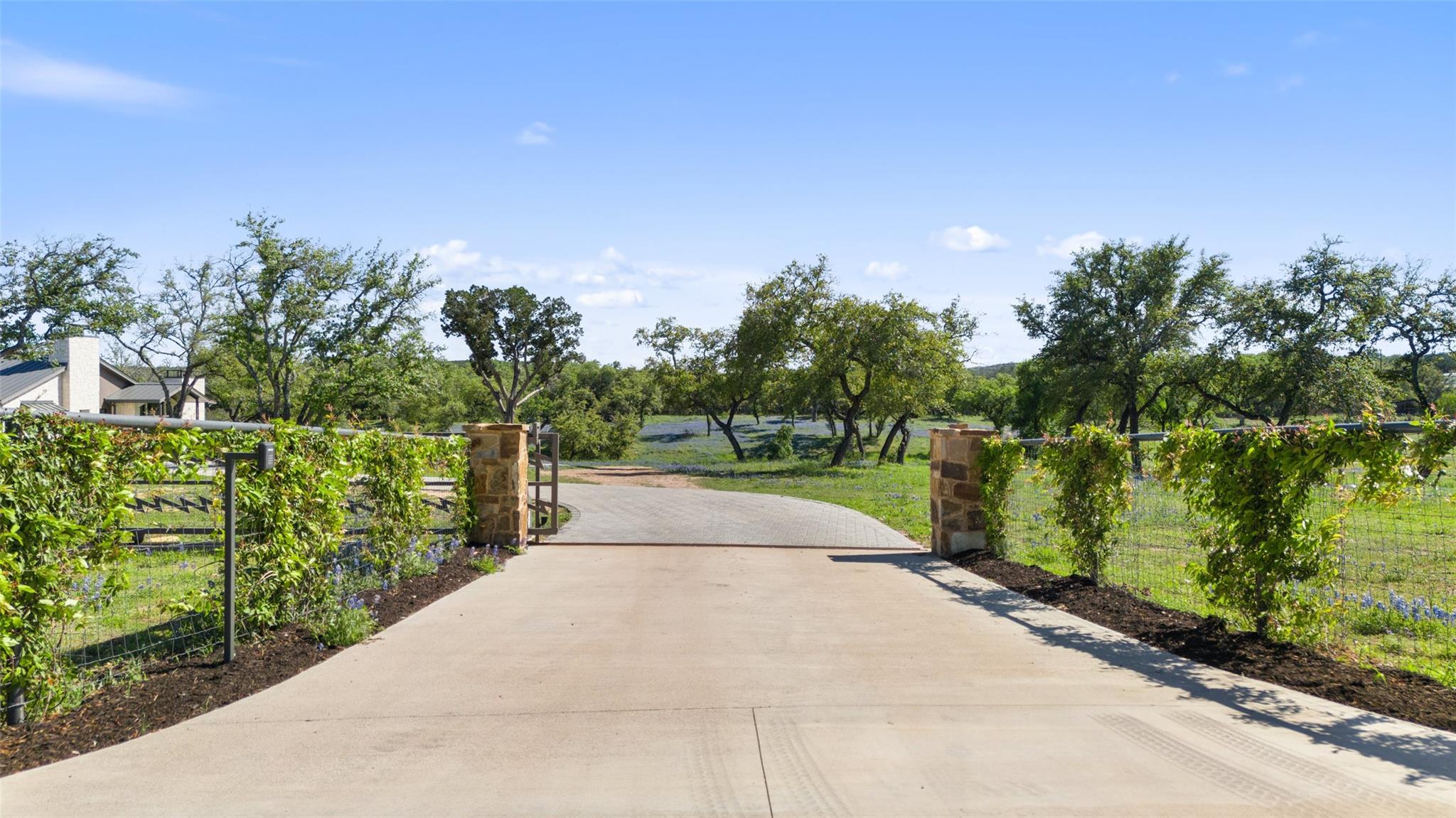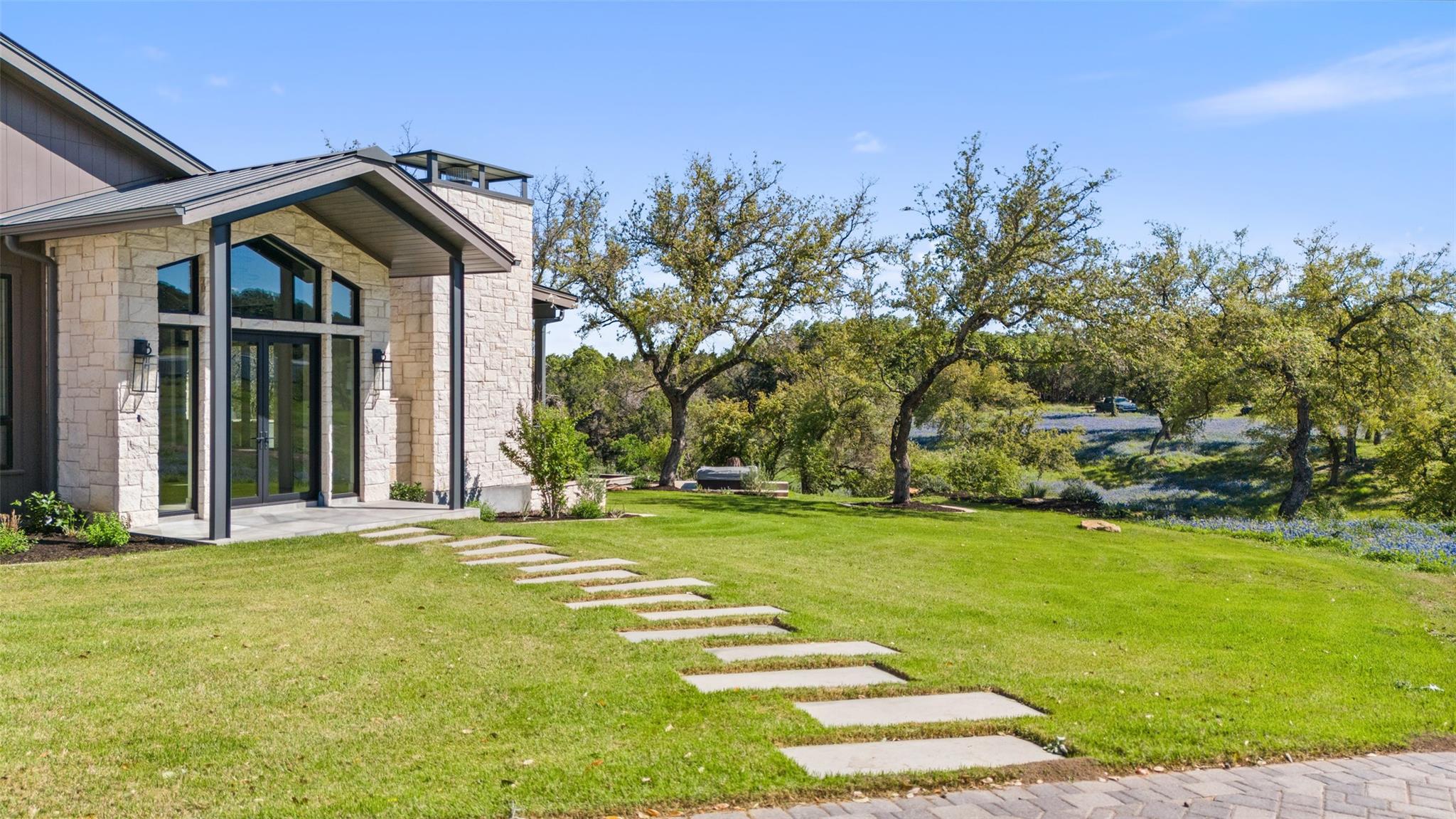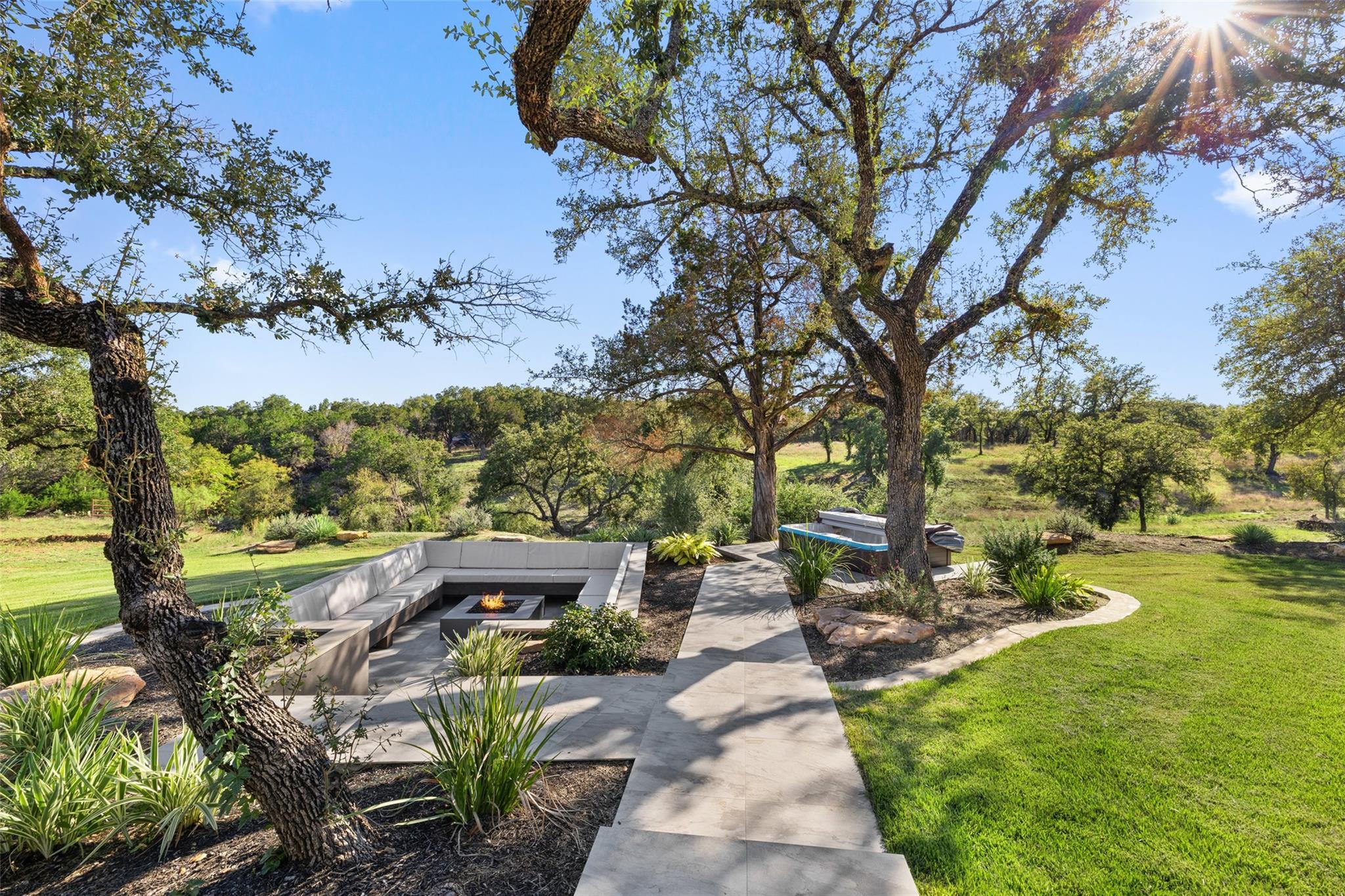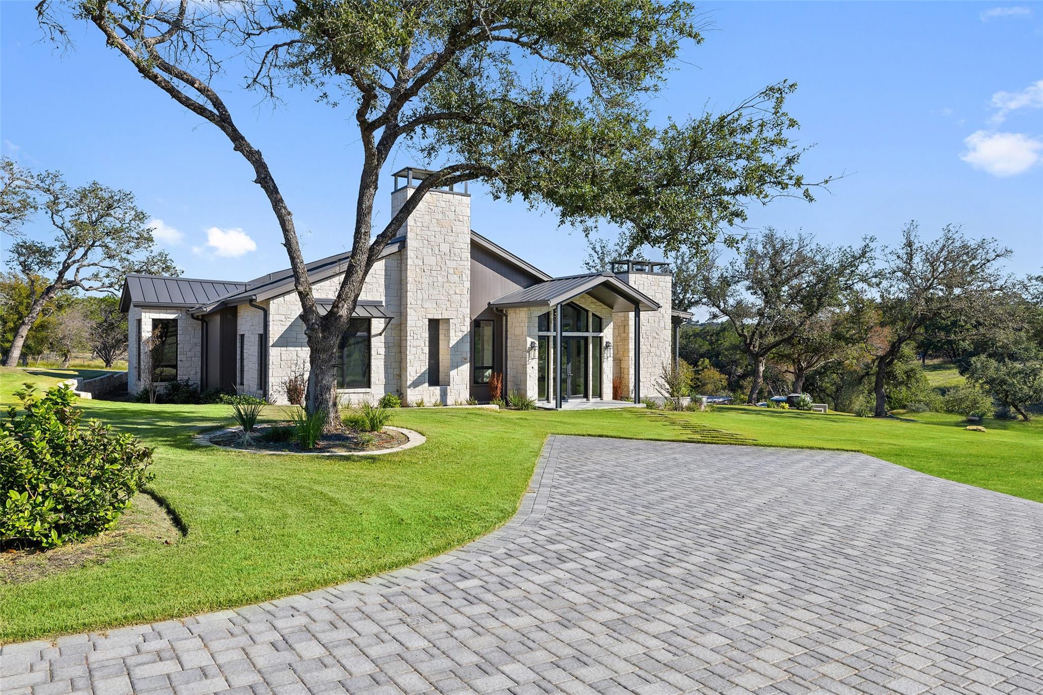 This Hill Country Modern, new construction, move in ready estate is situated on 8 plus acres in one of the top ten wealthiest zip codes in Texas, 78669. Welcoming you on arrival is a custom gated entrance opening to a stunning paver blocked driveway that leads to the oversized 2 car garage and additional guest parking off the main entrance. Approaching the front entrance via the staggered garden stones take note of the large windows flanking the modern French entry doors. The interior boasts an expansive open concept with wide planked wood floors throughout, designer cathedral ceilings highlighted by exposed iron beams, sleek industrial ductwork, and a grand fireplace accompanied by a built in entertainment cabinet. Speaking of zip codes, the kitchen island may need its own! Made of “porcelanna", it’s the centerpiece of the eat in style kitchen and open living concept. The kitchen offers all the amenities a chef could ask for including wet bar & wine fridge. Anchoring the open concept are panoramic doors which open to the covered patio allowing for the indoor/outdoor flow to continue. For relaxing on those gorgeous Texas nights the exterior offers an outdoor kitchen with built in grill, recessed fire pit, and spa/hot tub tucked under a couple magnificent trees.The home has 3 bedrooms, 3 full baths, half bath, utility room, plan allows for an additional office. The home is serviced by Windermere Water Supply, but also has a well for irrigation with a 3,000 gallon storage tank. With 8 plus acres there’s room for an additional dwelling unit, shop, pool, or sports court. Conveniently located to Spicewood Airport, numerous vineyards, Iron Wolf Distillery, Krause Springs, Muleshoe & Pace Bend Parks, multiple golf courses, and beautiful Lake Travis. Shopping, dining, and entertainment in either direction with Marble Falls to the West and Bee Cave/Lakeway to the East. Both within 20 minutes. If 8 acres isn't enough, there are two, 4 acre adjoining lots also available!