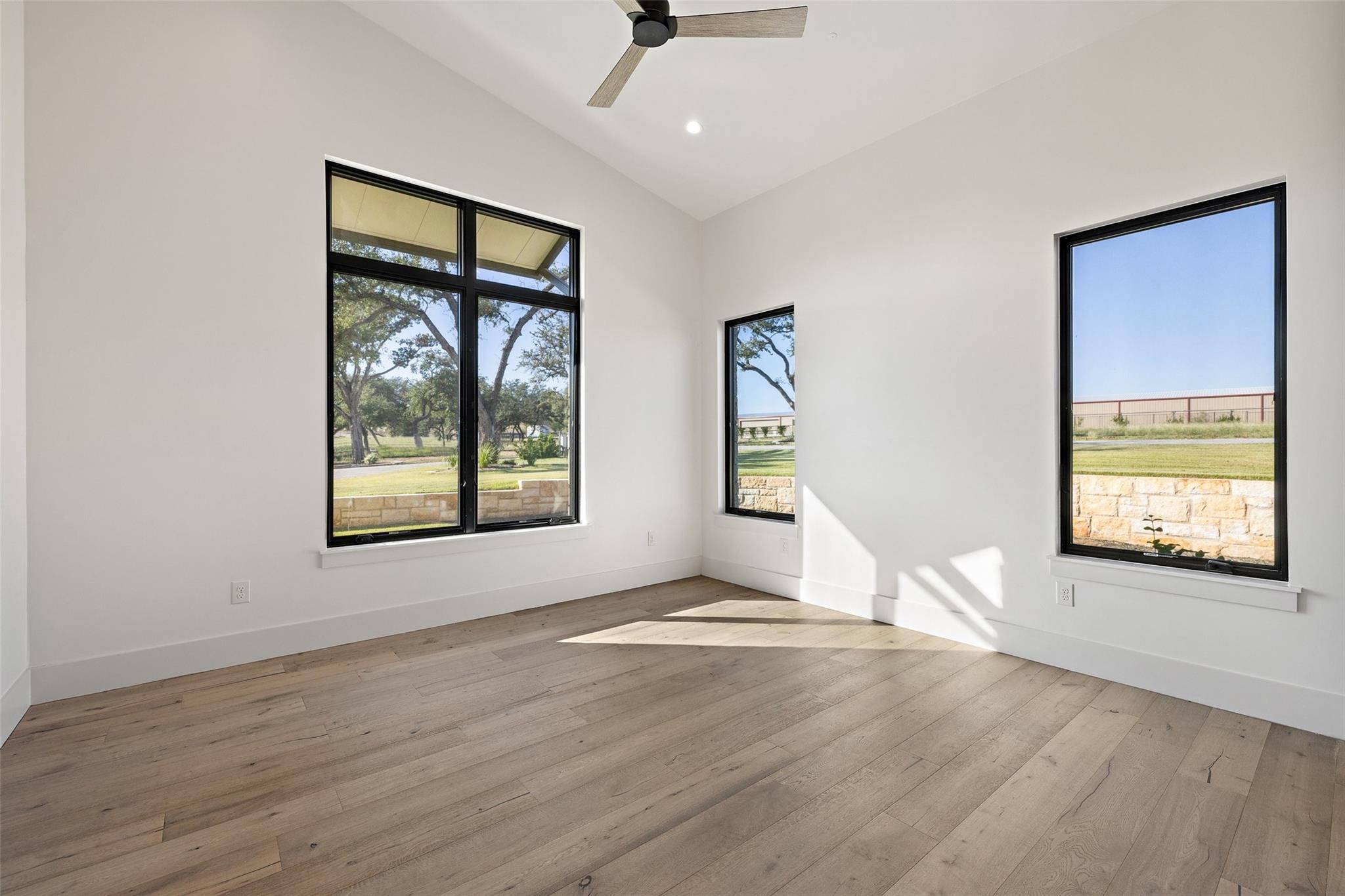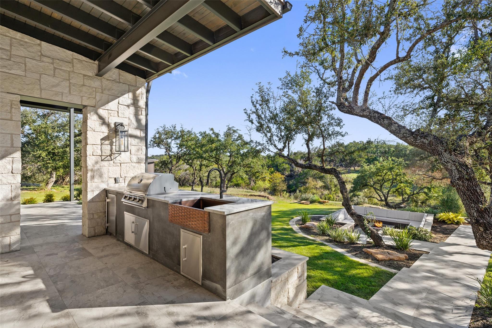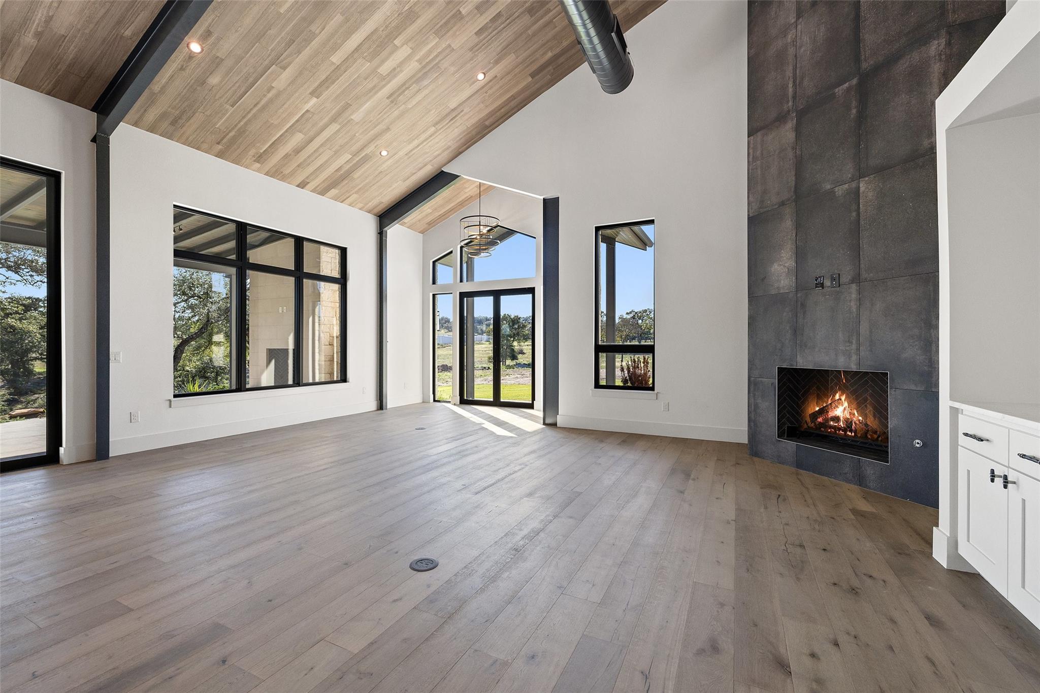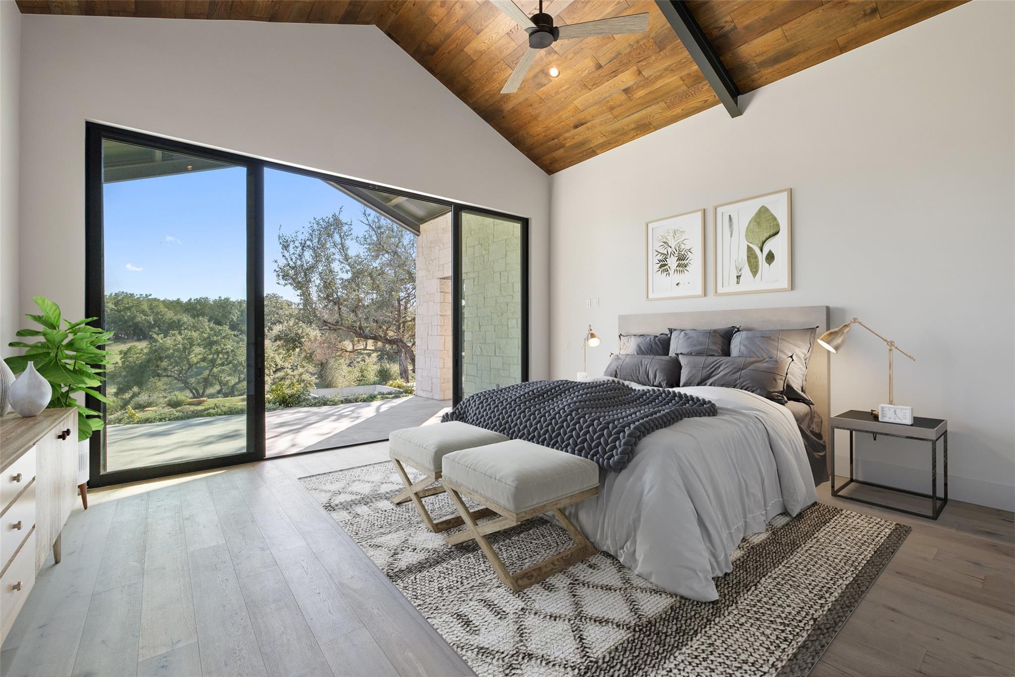 This Hill Country Modern, new construction, move in ready estate is situated on 8 plus acres in one of the top ten wealthiest zip codes in Texas, 78669. Welcoming you on arrival is a custom gated entrance opening to a stunning paver blocked driveway that leads to the oversized 2 car garage and additional guest parking off the main entrance. Approaching the front entrance via the staggered garden stones take note of the large windows flanking the modern French entry doors. The interior boasts an expansive open concept with wide planked wood floors throughout, designer cathedral ceilings highlighted by exposed iron beams, sleek industrial ductwork, and a grand fireplace accompanied by a built in entertainment cabinet. Speaking of zip codes, the kitchen island may need its own! Made of “porcelanna", it’s the centerpiece of the eat in style kitchen and open living concept. The kitchen offers all the amenities a chef could ask for including wet bar & wine fridge. Anchoring the open concept are panoramic doors which open to the covered patio allowing for the indoor/outdoor flow to continue. For relaxing on those gorgeous Texas nights the exterior offers an outdoor kitchen with built in grill, recessed fire pit, and spa/hot tub tucked under a couple magnificent trees.The home has 3 bedrooms, 3 full baths, half bath, utility room, plan allows for an additional office. The home is serviced by Windermere Water Supply, but also has a well for irrigation with a 3,000 gallon storage tank. With 8 plus acres there’s room for an additional dwelling unit, shop, pool, or sports court. Conveniently located to Spicewood Airport, numerous vineyards, Iron Wolf Distillery, Krause Springs, Muleshoe & Pace Bend Parks, multiple golf courses, and beautiful Lake Travis. Shopping, dining, and entertainment in either direction with Marble Falls to the West and Bee Cave/Lakeway to the East. Both within 20 minutes. If 8 acres isn't enough, there are two, 4 acre adjoining lots also available!
