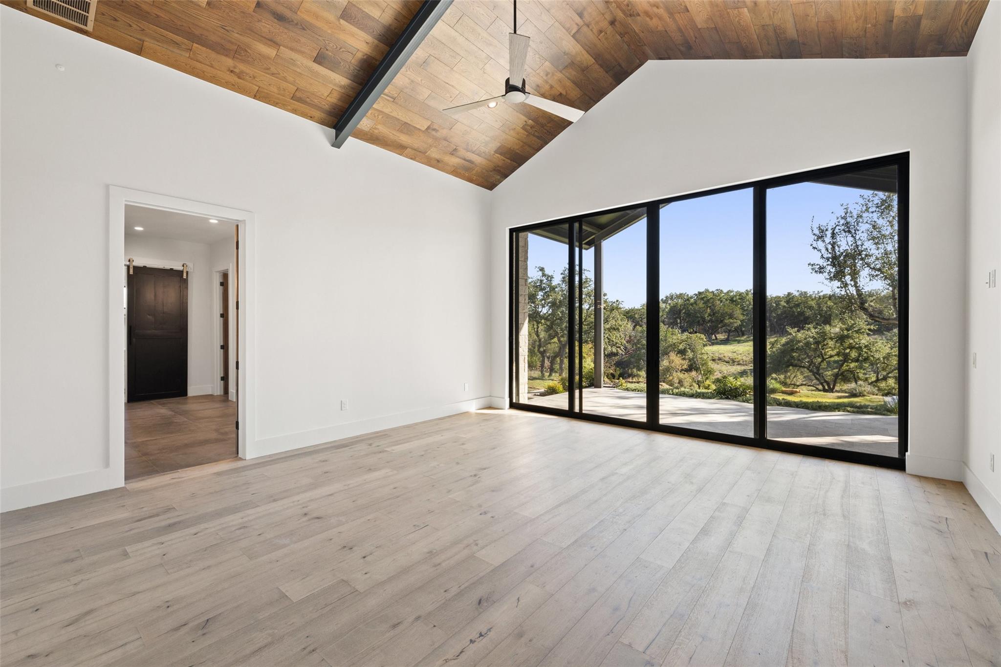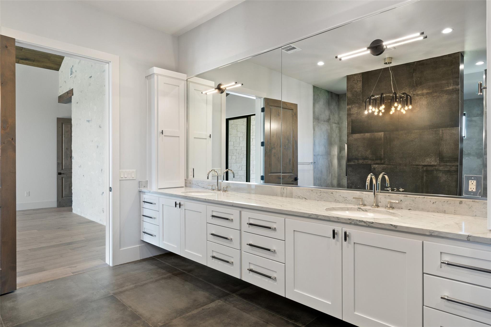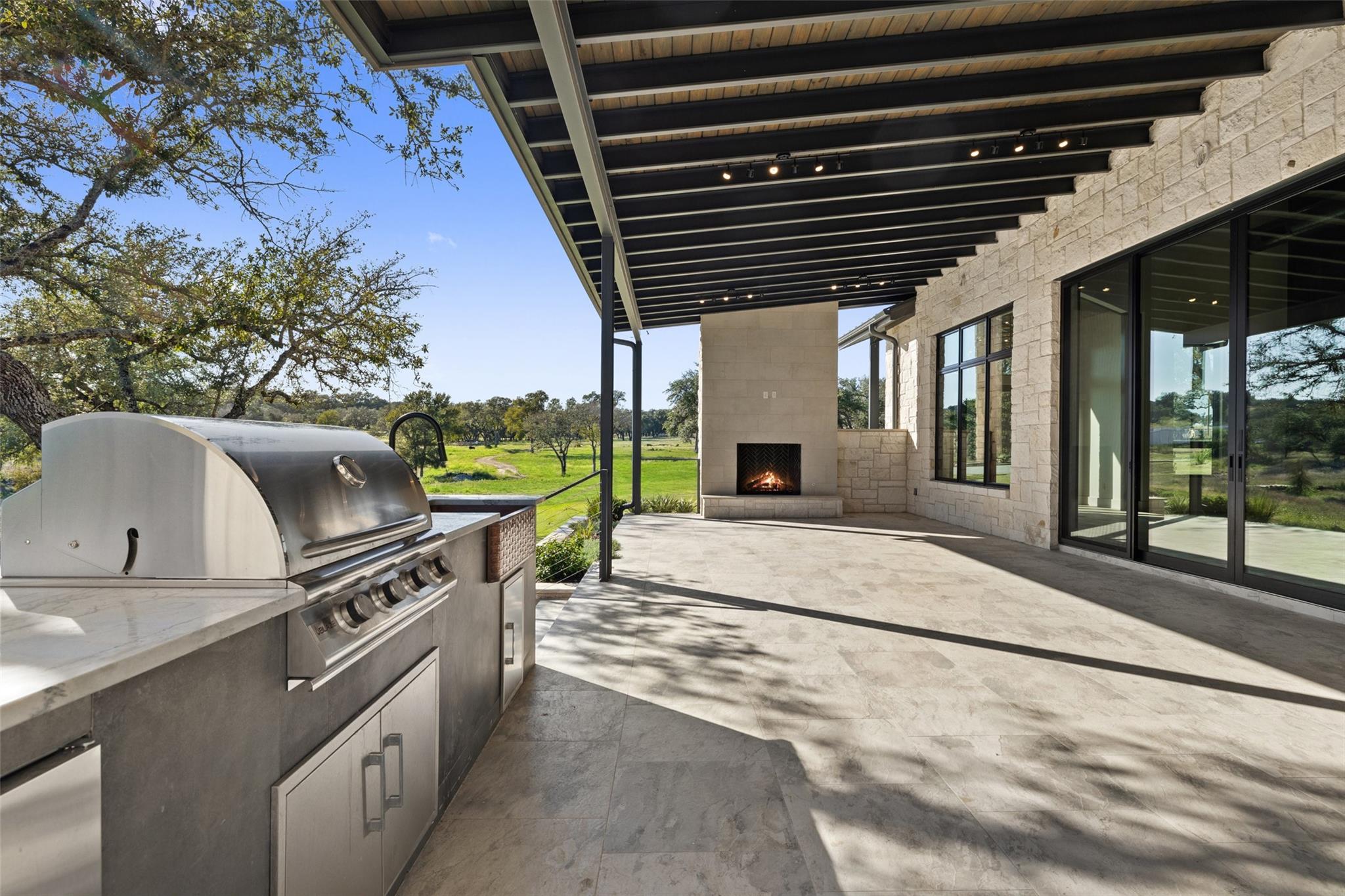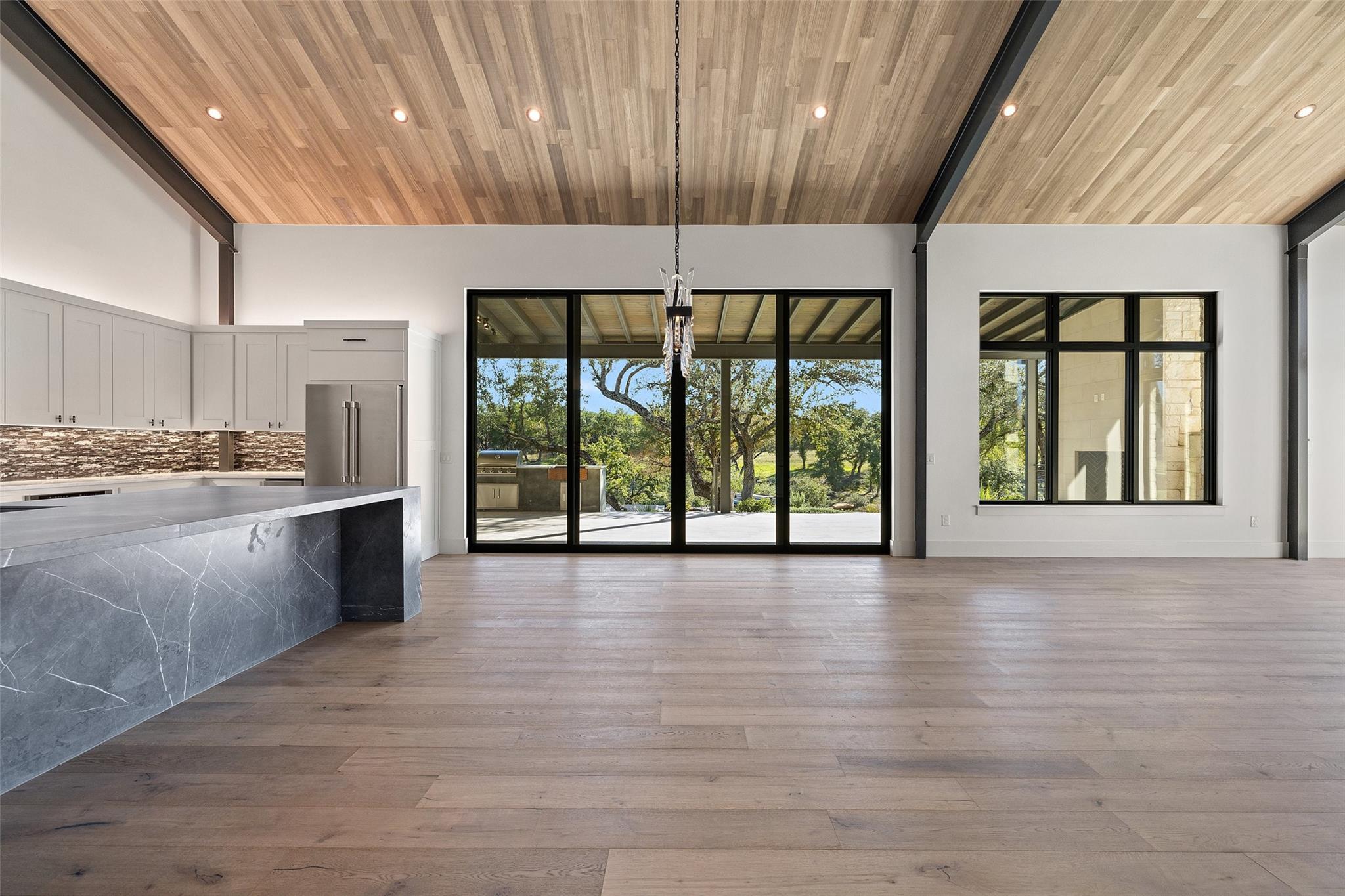 This Hill Country Modern, new construction, move in ready estate is situated on 8 plus acres in one of the top ten wealthiest zip codes in Texas, 78669. Welcoming you on arrival is a custom gated entrance opening to a stunning paver blocked driveway that leads to the oversized 2 car garage and additional guest parking off the main entrance. Approaching the front entrance via the staggered garden stones take note of the large windows flanking the modern French entry doors. The interior boasts an expansive open concept with wide planked wood floors throughout, designer cathedral ceilings highlighted by exposed iron beams, sleek industrial ductwork, and a grand fireplace accompanied by a built in entertainment cabinet. Speaking of zip codes, the kitchen island may need its own! Made of “porcelanna", it’s the centerpiece of the eat in style kitchen and open living concept. The kitchen offers all the amenities a chef could ask for including wet bar & wine fridge. Anchoring the open concept are panoramic doors which open to the covered patio allowing for the indoor/outdoor flow to continue. For relaxing on those gorgeous Texas nights the exterior offers an outdoor kitchen with built in grill, recessed fire pit, and spa/hot tub tucked under a couple magnificent trees.The home has 3 bedrooms, 3 full baths, half bath, utility room, plan allows for an additional office. The home is serviced by Windermere Water Supply, but also has a well for irrigation with a 3,000 gallon storage tank. With 8 plus acres there’s room for an additional dwelling unit, shop, pool, or sports court. Conveniently located to Spicewood Airport, numerous vineyards, Iron Wolf Distillery, Krause Springs, Muleshoe & Pace Bend Parks, multiple golf courses, and beautiful Lake Travis. Shopping, dining, and entertainment in either direction with Marble Falls to the West and Bee Cave/Lakeway to the East. Both within 20 minutes. If 8 acres isn't enough, there are two, 4 acre adjoining lots also available!