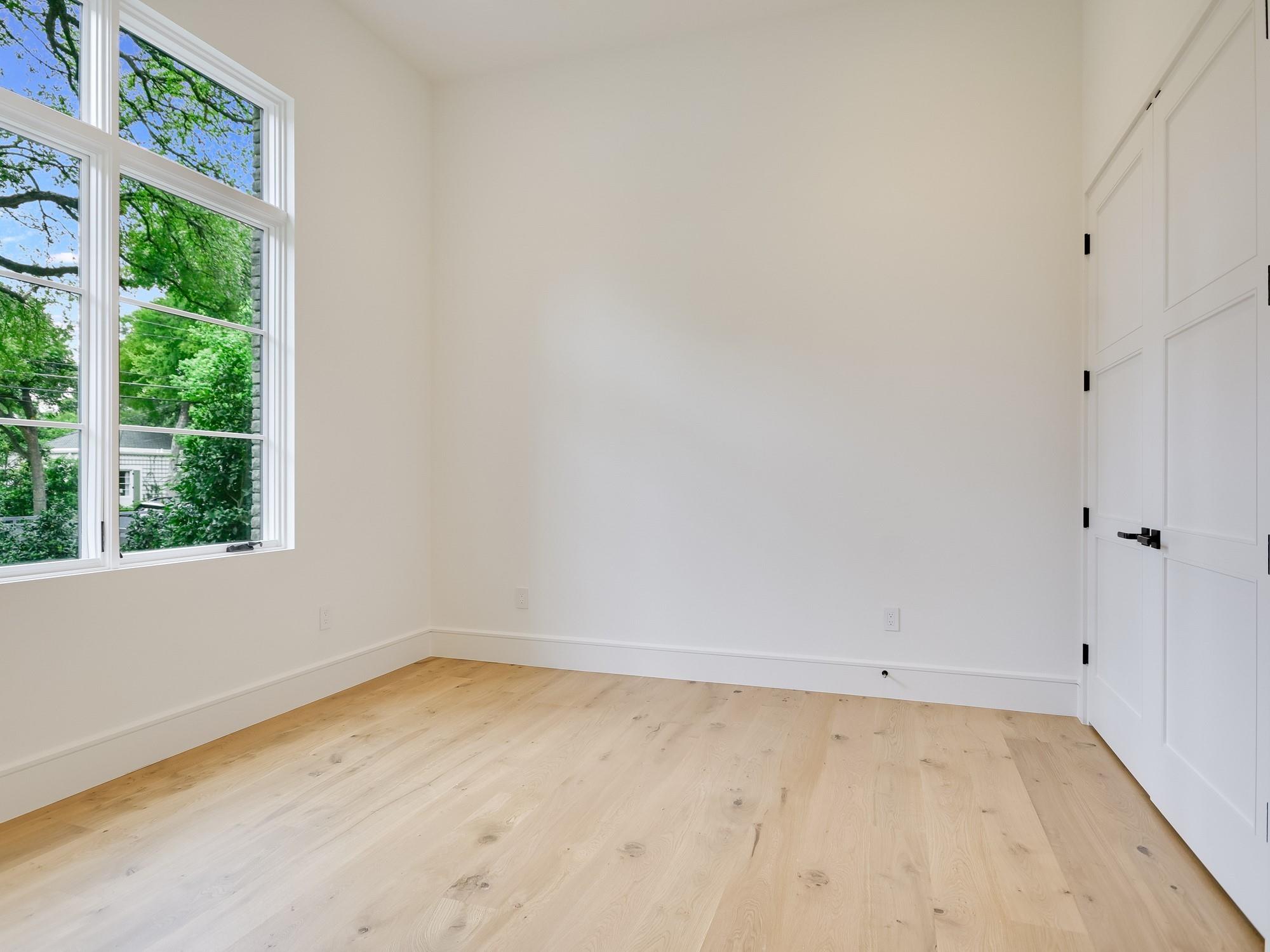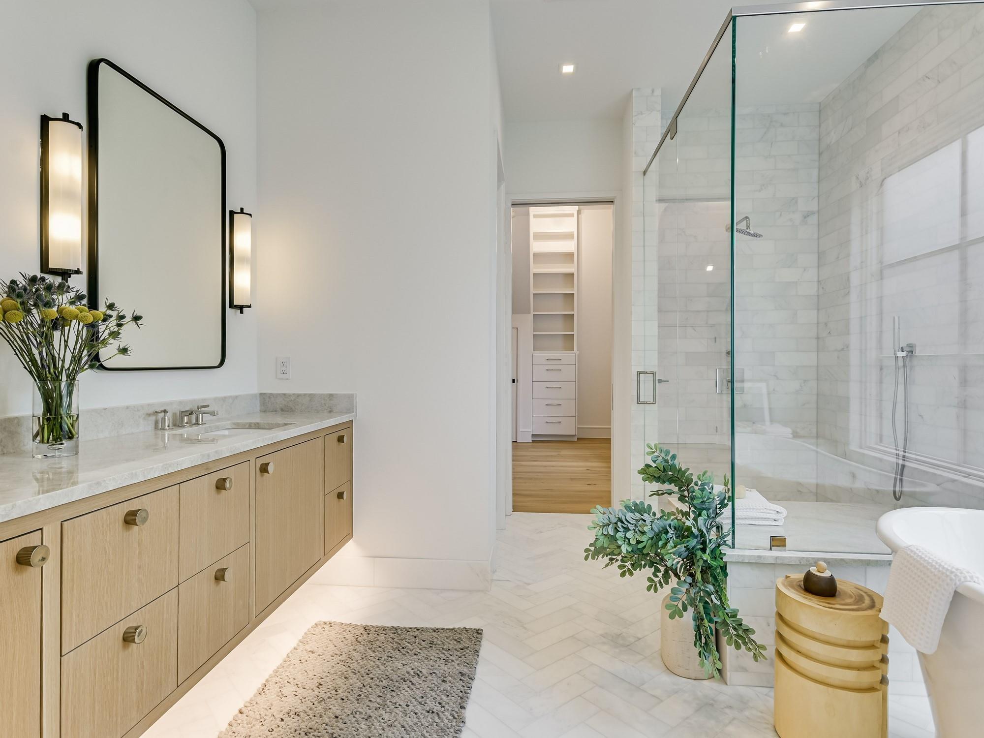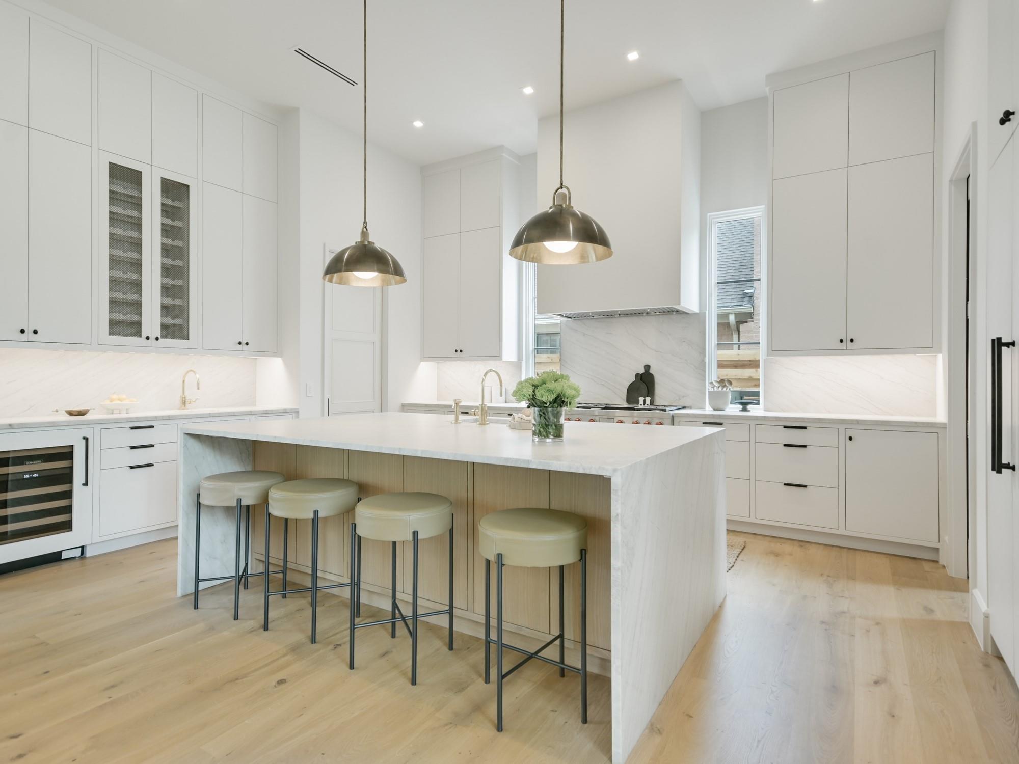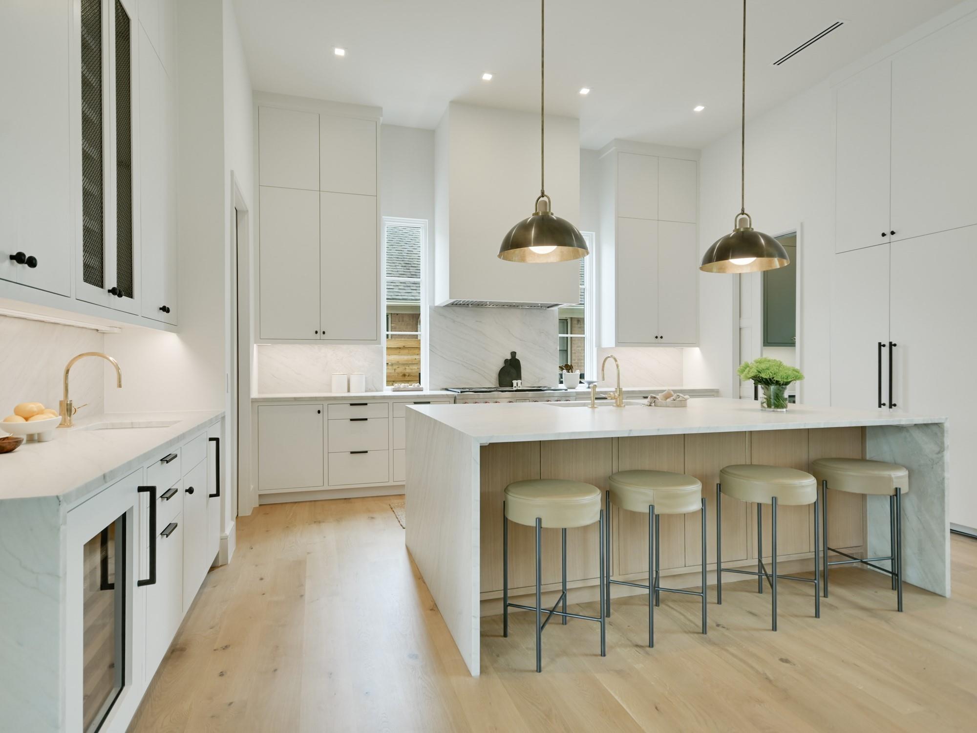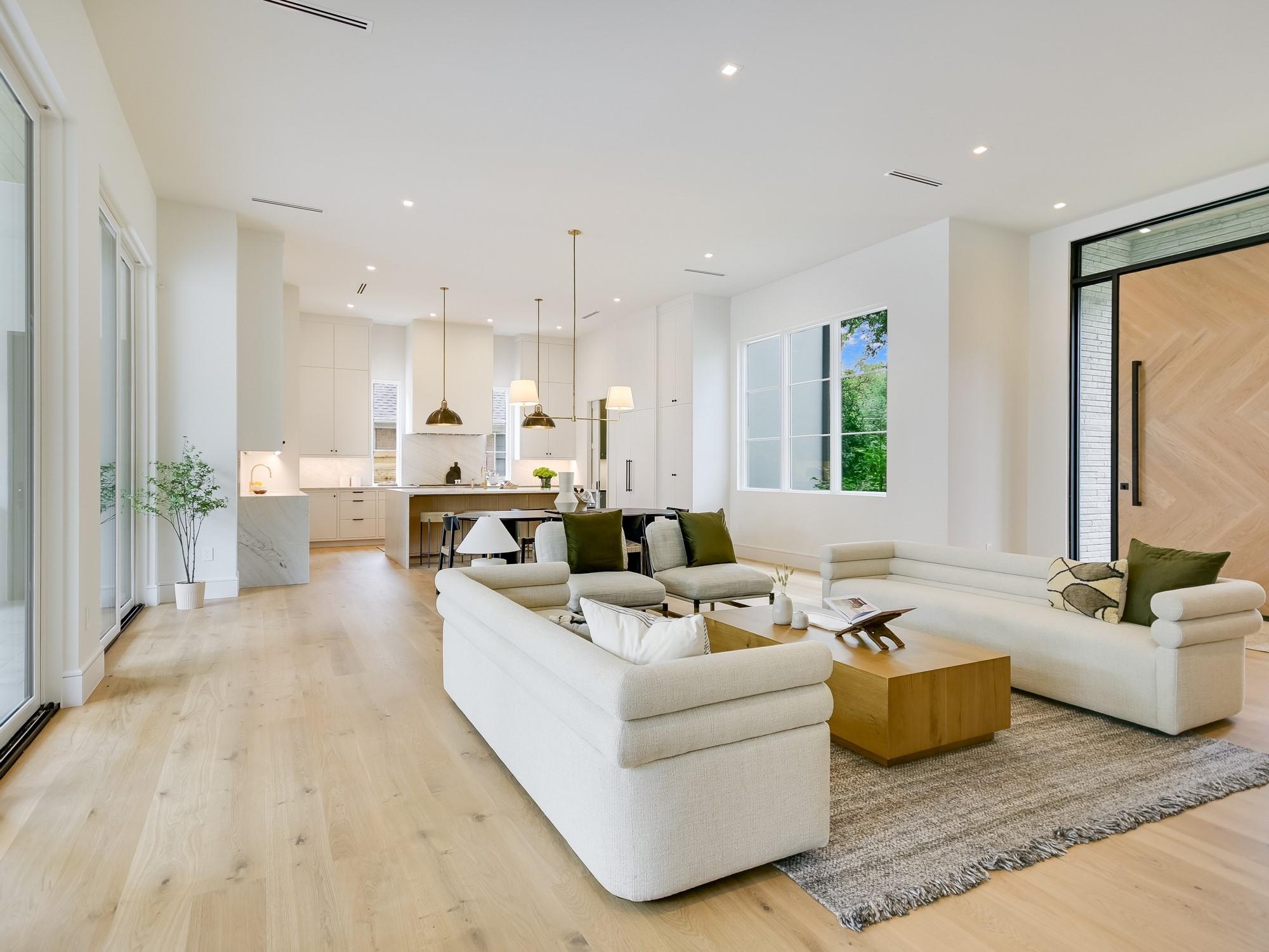 Situated on a beautiful lot adorned by trees, this new construction showcases contemporary and luxury. Open the front door to a spacious living area with views of the pool and backyard. Large covered area that has a fireplace and grilling area perfect for entertaining. Kitchen features a large island as well as a large pantry and butlers pantry with a large window to prep for entertaining. Next is a large mudroom and laundry with a pool bath. Upstairs offers an additional living area, kids bar area, large laundry room, and 3 bedrooms with ensuite baths with an additional flex room perfect for a peloton and exercise area. A covered walkway leads to the garage and guest apartment. The home sits high on the lot and you see trees out almost every window. Large flat backyard with grass area and pool. Built by BRF homes and designed by Cornerstone Architect. Together with Annie Downing Interiors, they have created a beautiful property.
