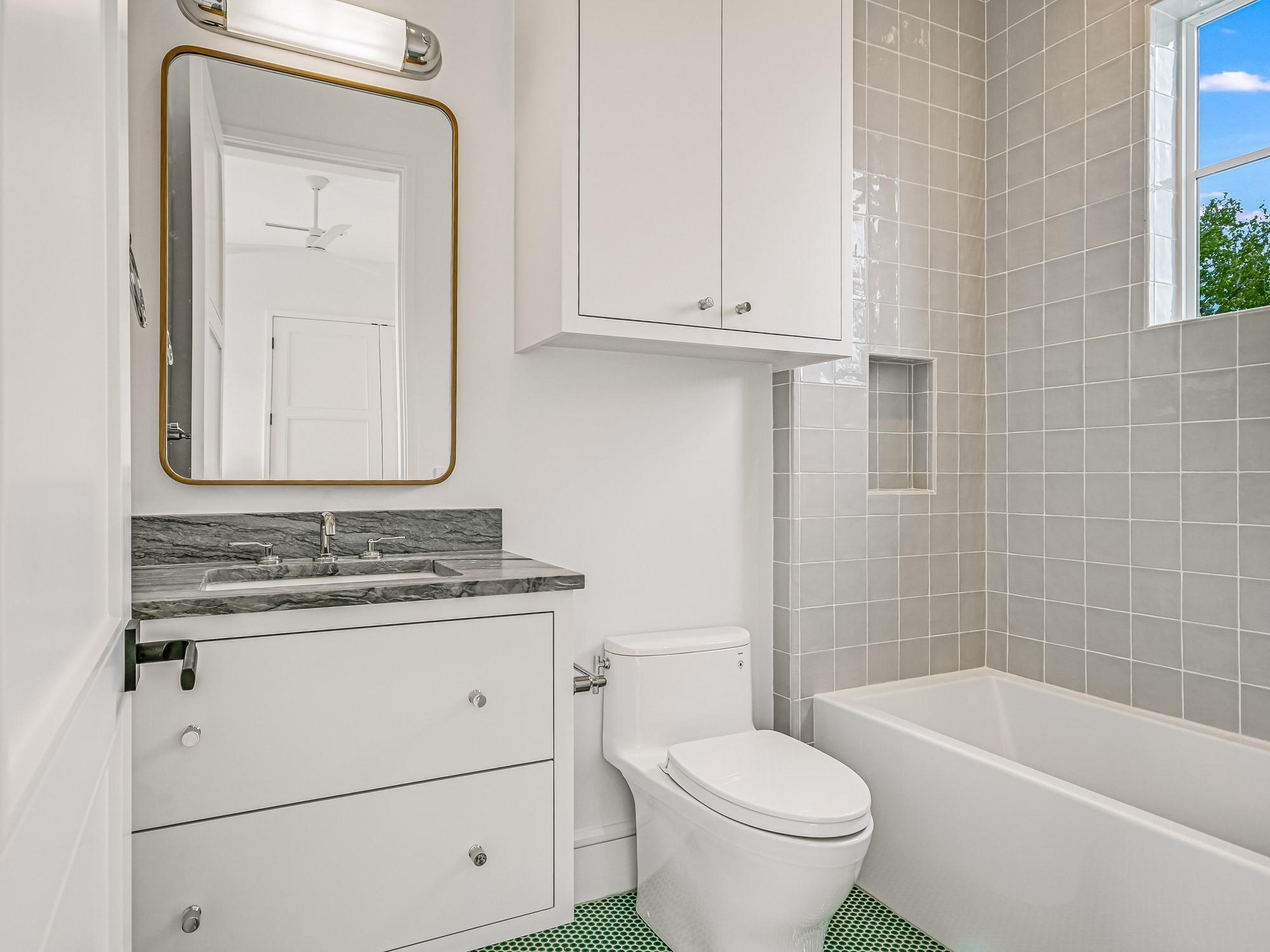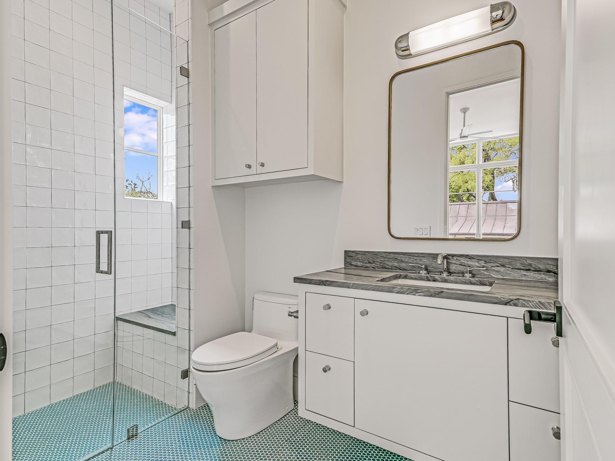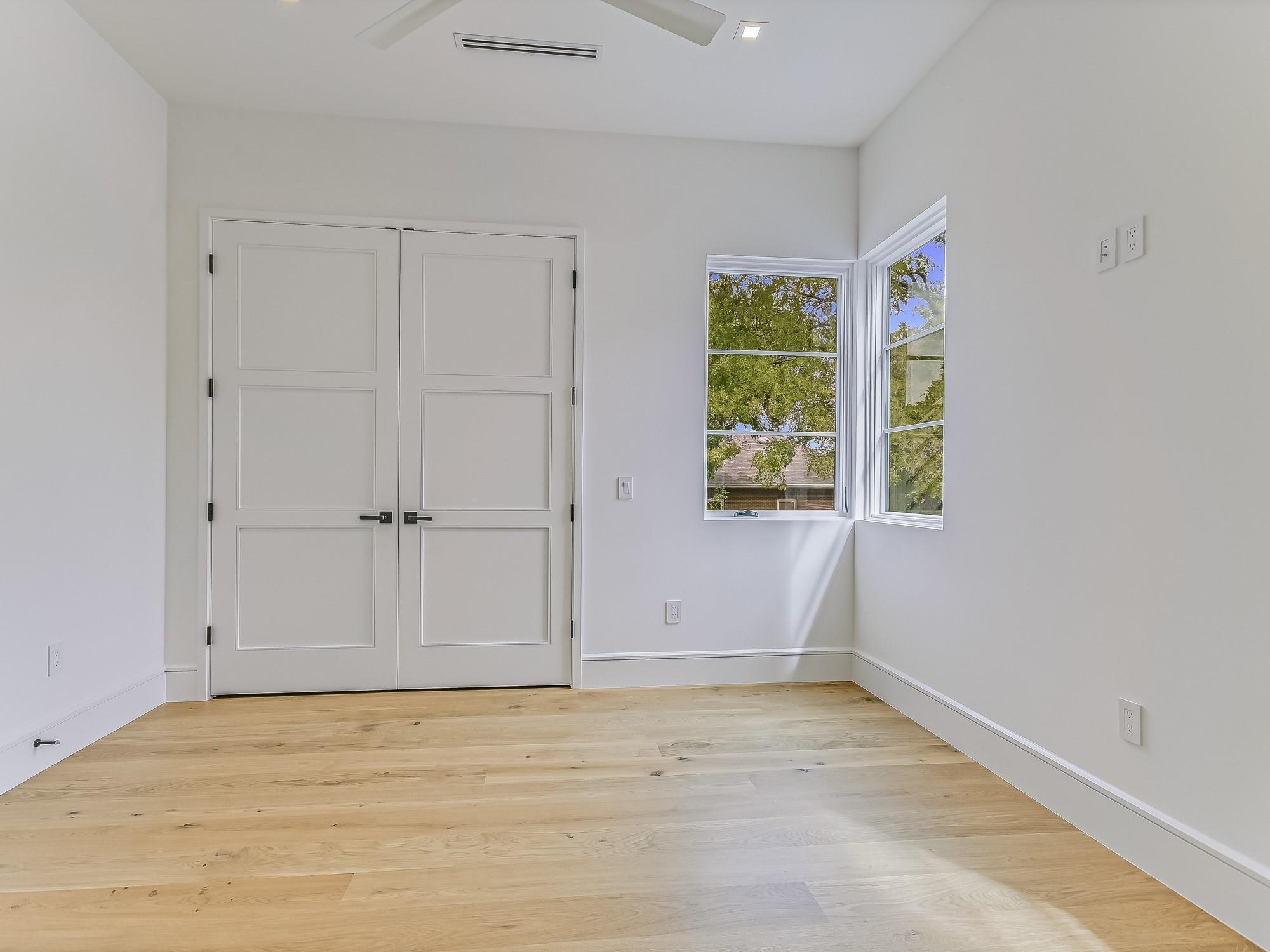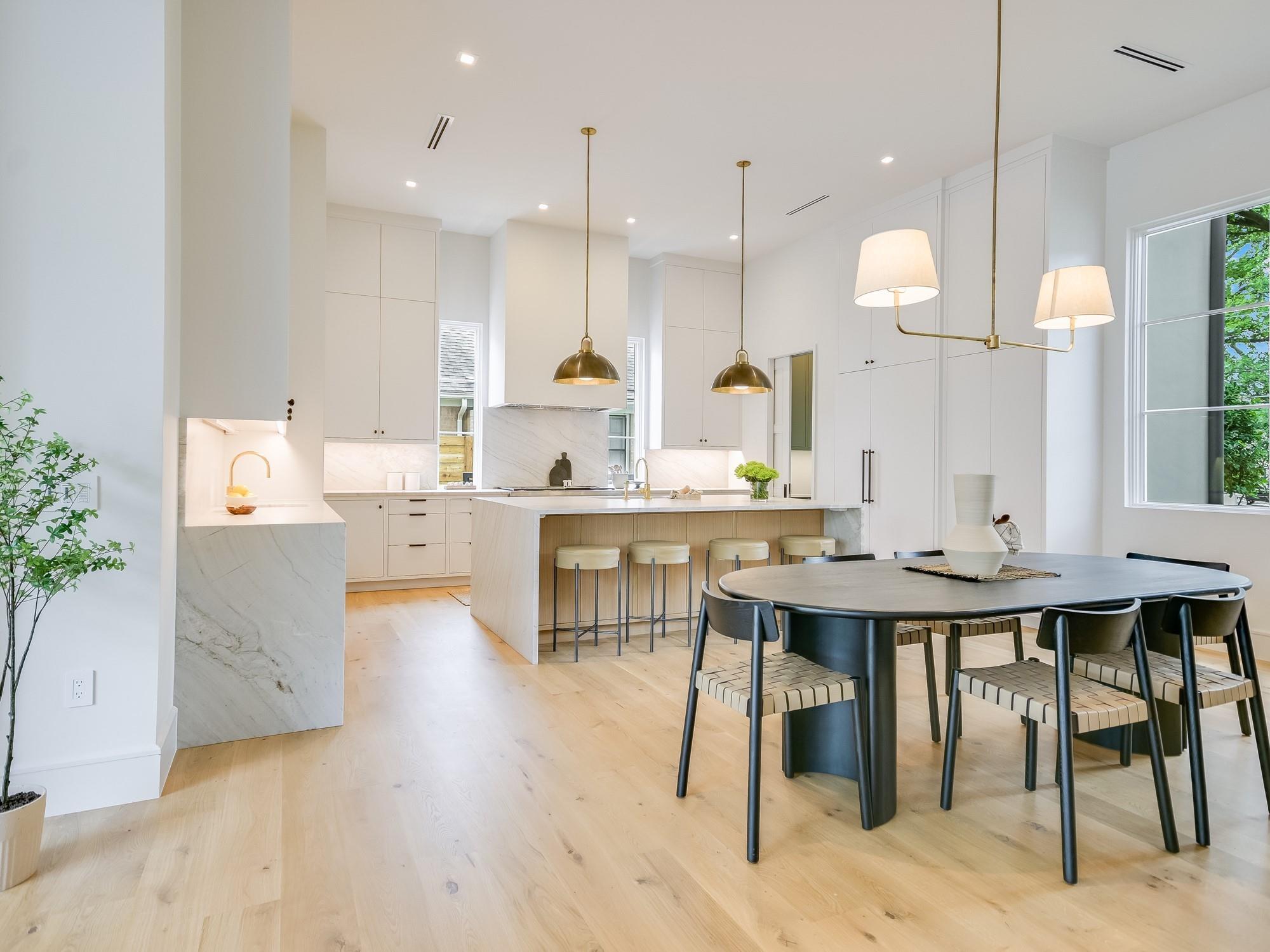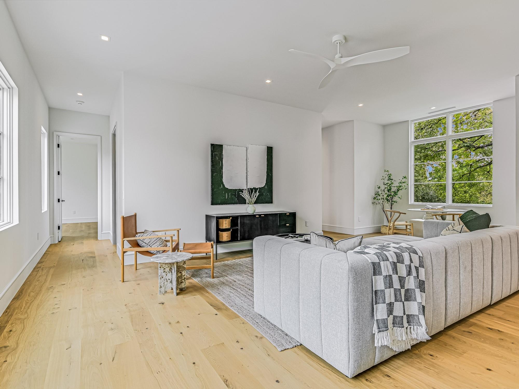 Situated on a beautiful lot adorned by trees, this new construction showcases contemporary and luxury. Open the front door to a spacious living area with views of the pool and backyard. Large covered area that has a fireplace and grilling area perfect for entertaining. Kitchen features a large island as well as a large pantry and butlers pantry with a large window to prep for entertaining. Next is a large mudroom and laundry with a pool bath. Upstairs offers an additional living area, kids bar area, large laundry room, and 3 bedrooms with ensuite baths with an additional flex room perfect for a peloton and exercise area. A covered walkway leads to the garage and guest apartment. The home sits high on the lot and you see trees out almost every window. Large flat backyard with grass area and pool. Built by BRF homes and designed by Cornerstone Architect. Together with Annie Downing Interiors, they have created a beautiful property.