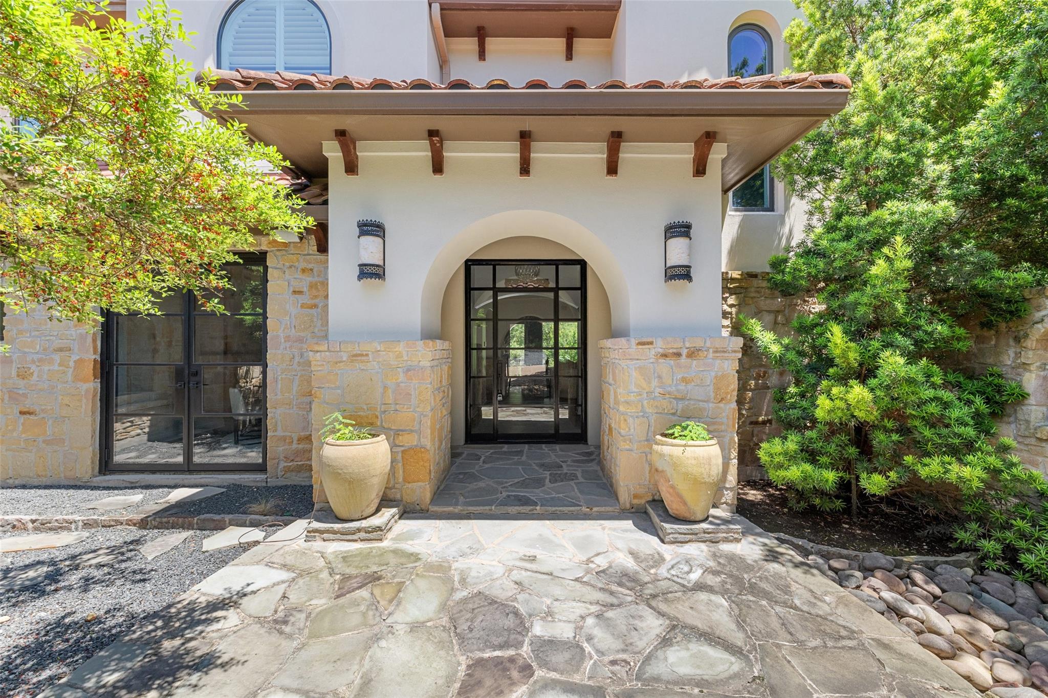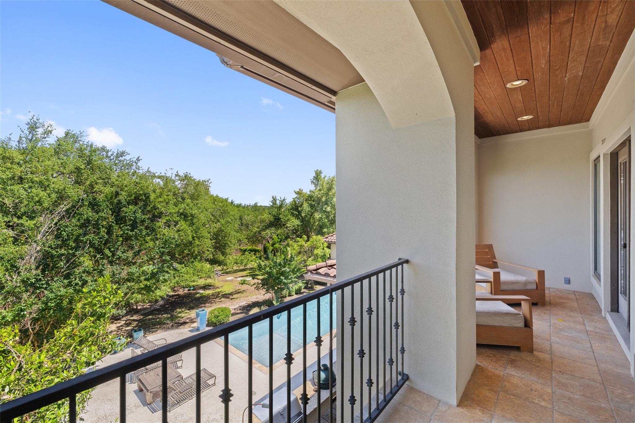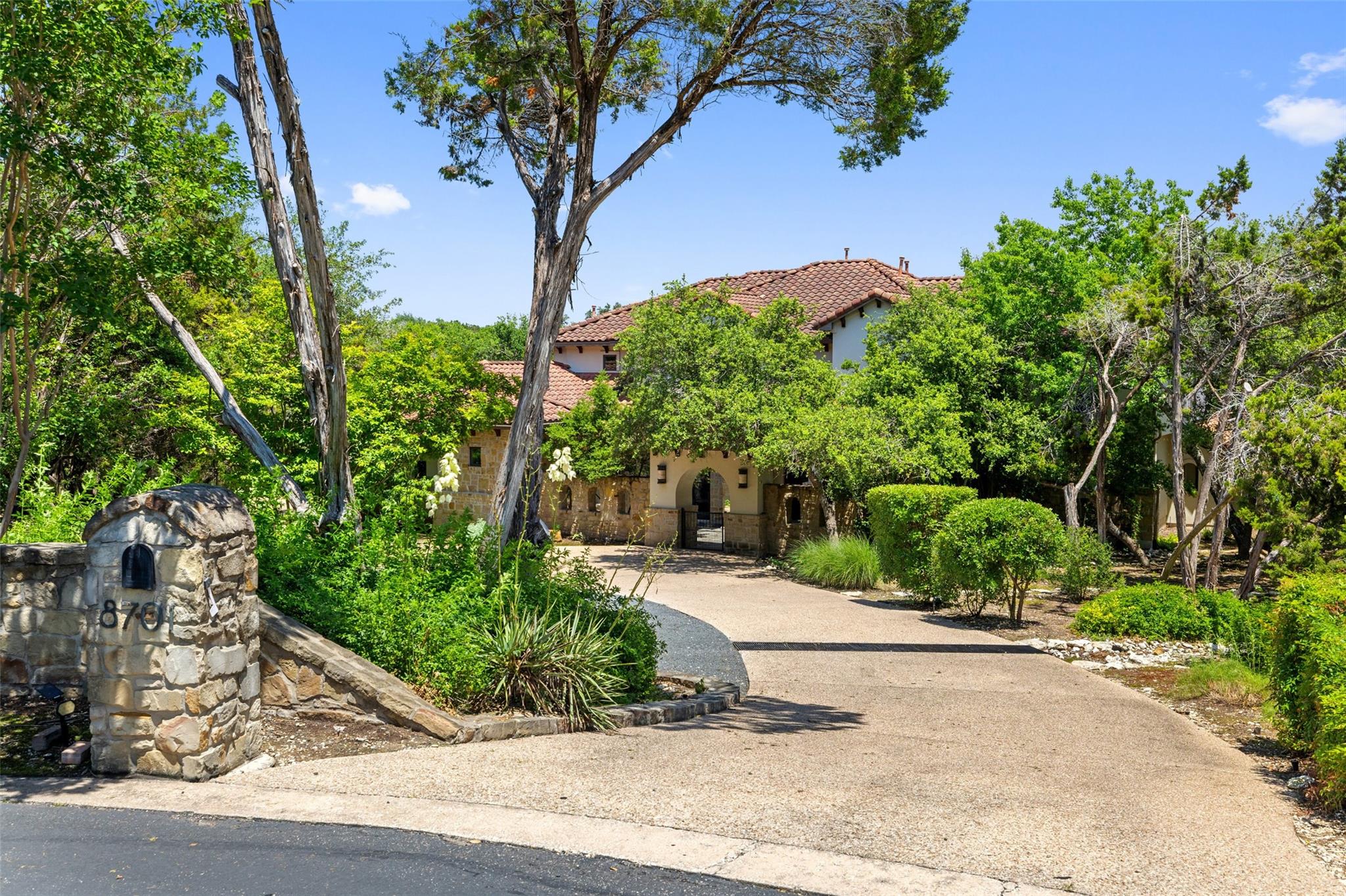 Set on over an acre in the fully gated The Estates at Barton Creek, this Butterfield & Shores Custom is nestled into a private cul-de-sac offering unparalleled privacy. Step inside to find a two-story family room seamlessly connected to the chef's kitchen, perfect for gatherings. Adjacent to the kitchen is a versatile space serving as a playroom, TV room, or office, neighbored by a generous formal dining area. Enjoy privacy and convenience with a private guest suite boasting a separate entrance on the main floor. The luxurious master suite features a sitting room flex space, his and her walk-in closets, double vanities, a garden tub, walk-in shower and private terrace balcony. Step outside to discover an entertainer's and children's paradise backyard, complete with an outdoor kitchen, fireplace, pool, spa, sport court, and playscape. Additionally, the extended Casita offers additional space with a pool bath, game room, and fifth bedroom.
