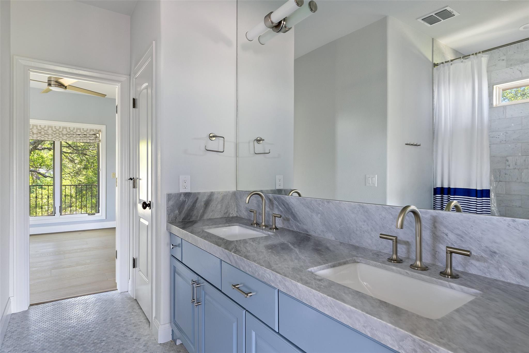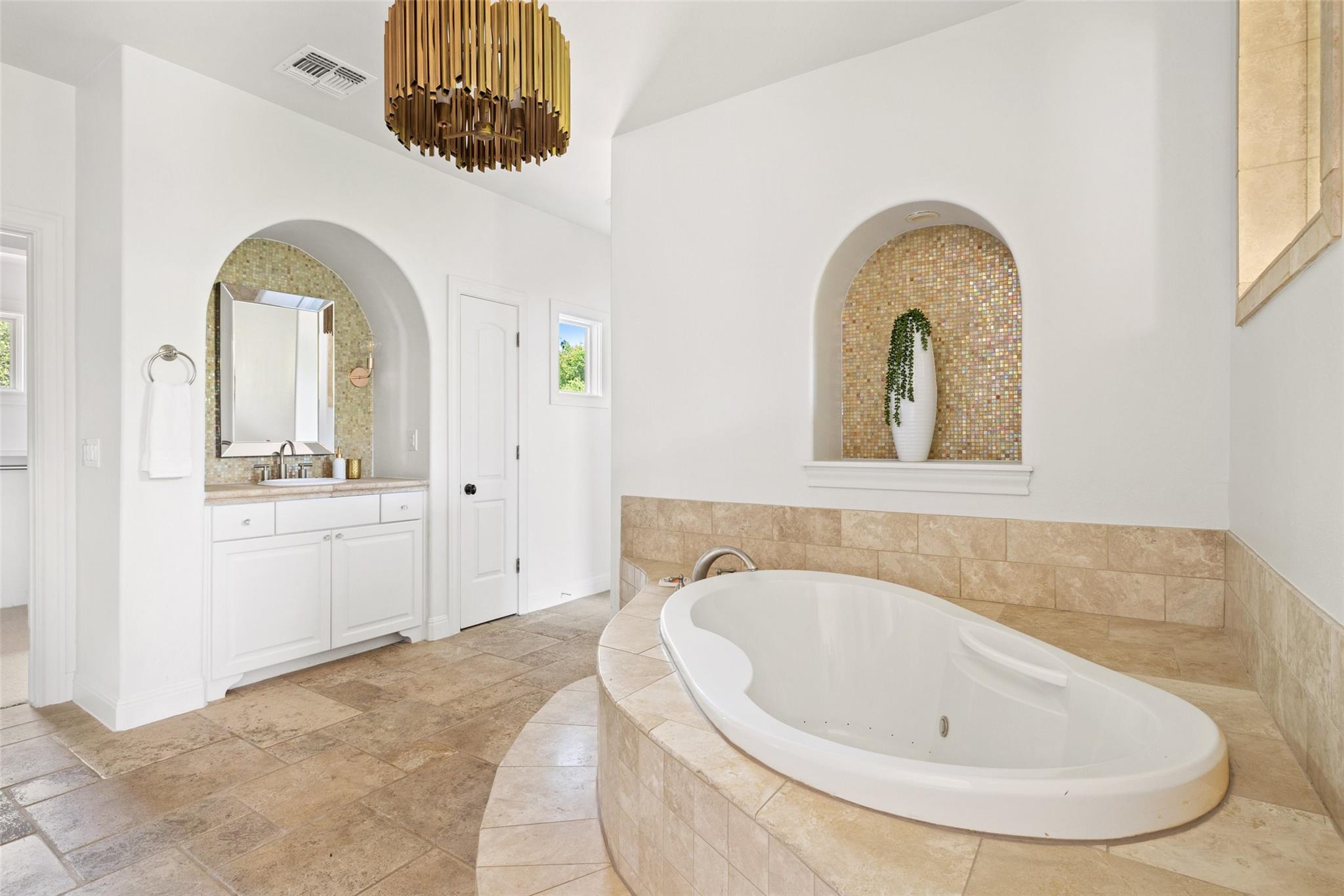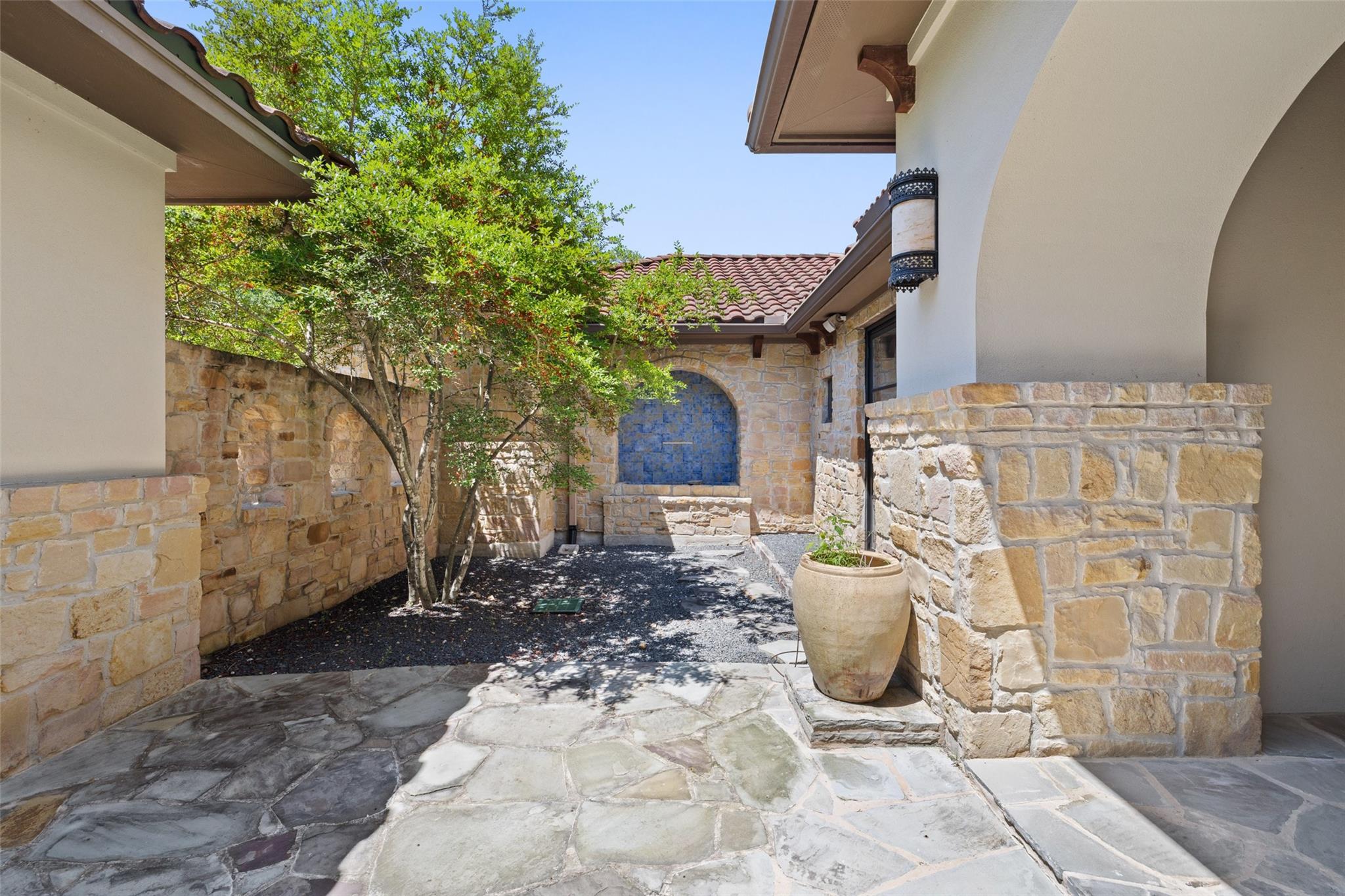Set on over an acre in the fully gated The Estates at Barton Creek, this Butterfield & Shores Custom is nestled into a private cul-de-sac offering unparalleled privacy. Step inside to find a two-story family room seamlessly connected to the chef's kitchen, perfect for gatherings. Adjacent to the kitchen is a versatile space serving as a playroom, TV room, or office, neighbored by a generous formal dining area. Enjoy privacy and convenience with a private guest suite boasting a separate entrance on the main floor. The luxurious master suite features a sitting room flex space, his and her walk-in closets, double vanities, a garden tub, walk-in shower and private terrace balcony. Step outside to discover an entertainer's and children's paradise backyard, complete with an outdoor kitchen, fireplace, pool, spa, sport court, and playscape. Additionally, the extended Casita offers additional space with a pool bath, game room, and fifth bedroom.
