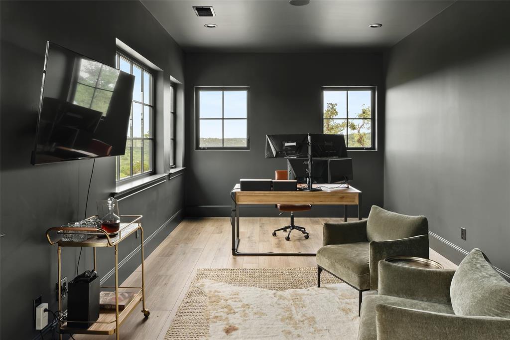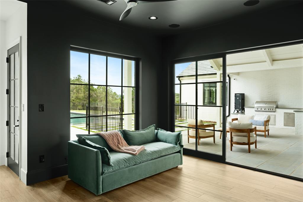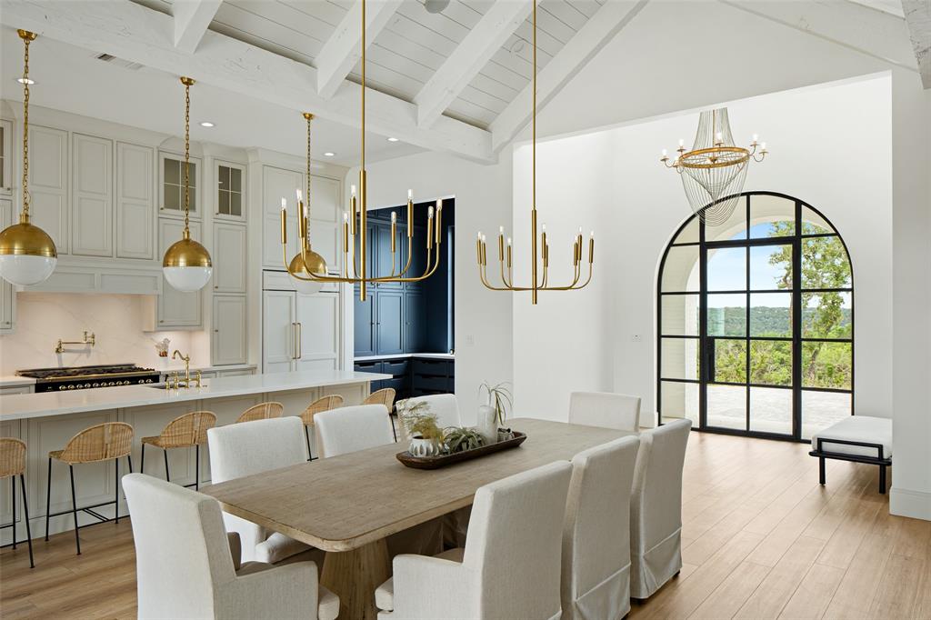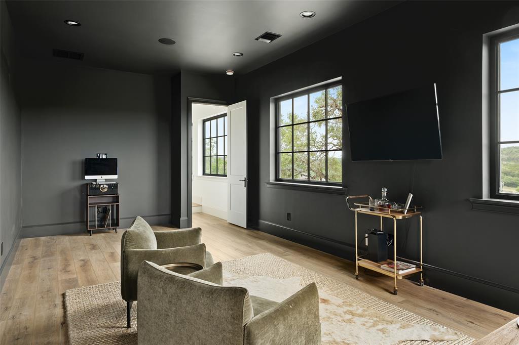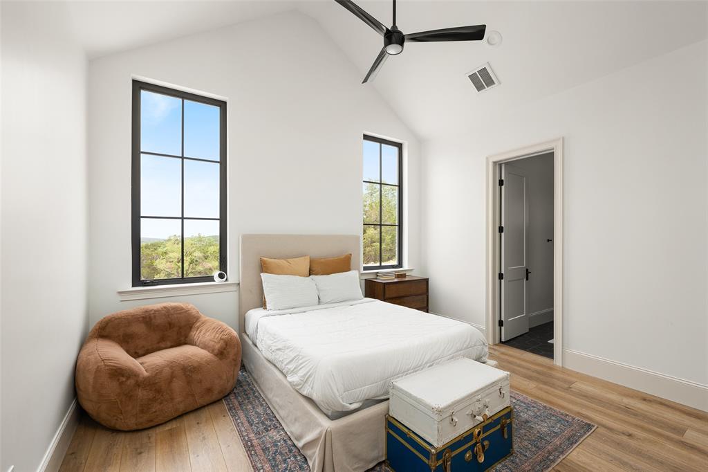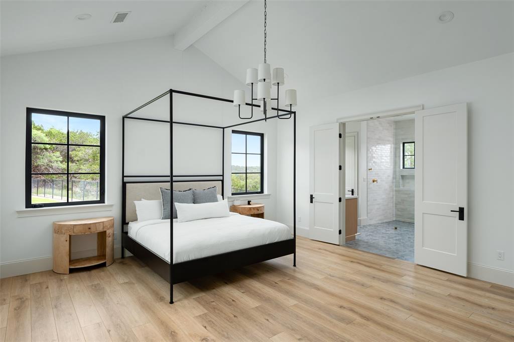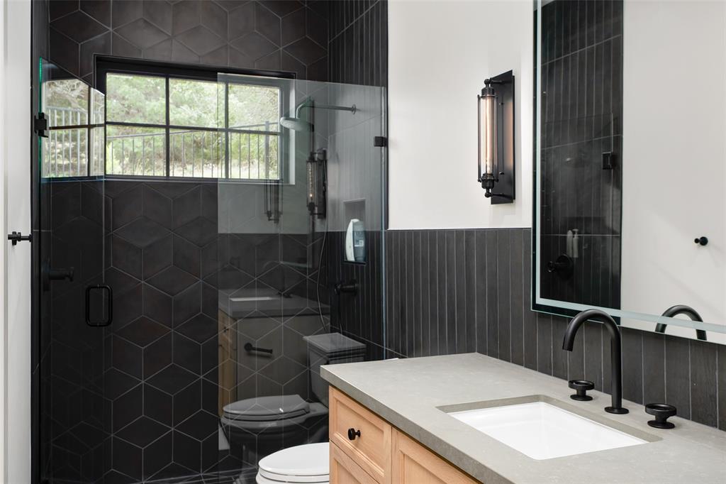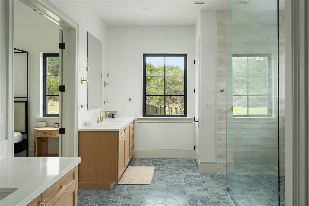 European meets American in this unique property nestled in the Wimberley hillside. Impeccably designed down to the last detail, this home embraces sweeping hill country views and blends contemporary and classic details for a luxurious experience at every turn. The grand entry overlooks rolling hills and features a gorgeous bespoke chandelier. The kitchen centers around a 13ft island, featuring unique custom cabinetry all the way to the 12ft ceiling. The 48" Italian range complements the Sub-Zero refrigerator, integrated dishwasher, and ice maker for the perfect appliance package. The pantry is truly unique, elevating the space to a bright open storage solution that keeps everything hidden, yet immediately accessible. Incredible outdoor views and amenities are brought inside with multiple custom sliders, giving you natural light and views throughout the home. Each of the 4.5 bathrooms is meticulously designed. The exquisite primary suite boasts incredible views, a vaulted ceiling, a luxurious spa shower, and a spacious closet with large center island. The upstairs office features breathtaking views from every angle. Storage is abundant, with additional custom cabinetry throughout. Outdoors, the heated pool is overlooked by a well appointed pool house. Featuring overhead speakers, a large bar, refrigerator, ice maker and sink, this area is sure to be the center of the party–or simply the perfect area to watch the sun set over the hills. The spacious covered patio and outdoor kitchen add even more entertaining space. Dual cobblestone driveways lend a luxurious touch to the front of the home and offer abundant parking. Built to satisfy the most discerning buyer, this breathtaking home is truly unique among the currently available hill country options. Minutes from downtown Wimberley and featuring community creek access, the amount of detail in this home must be seen to be believed. If you've been looking for your own hill country gem to call home, look no further.