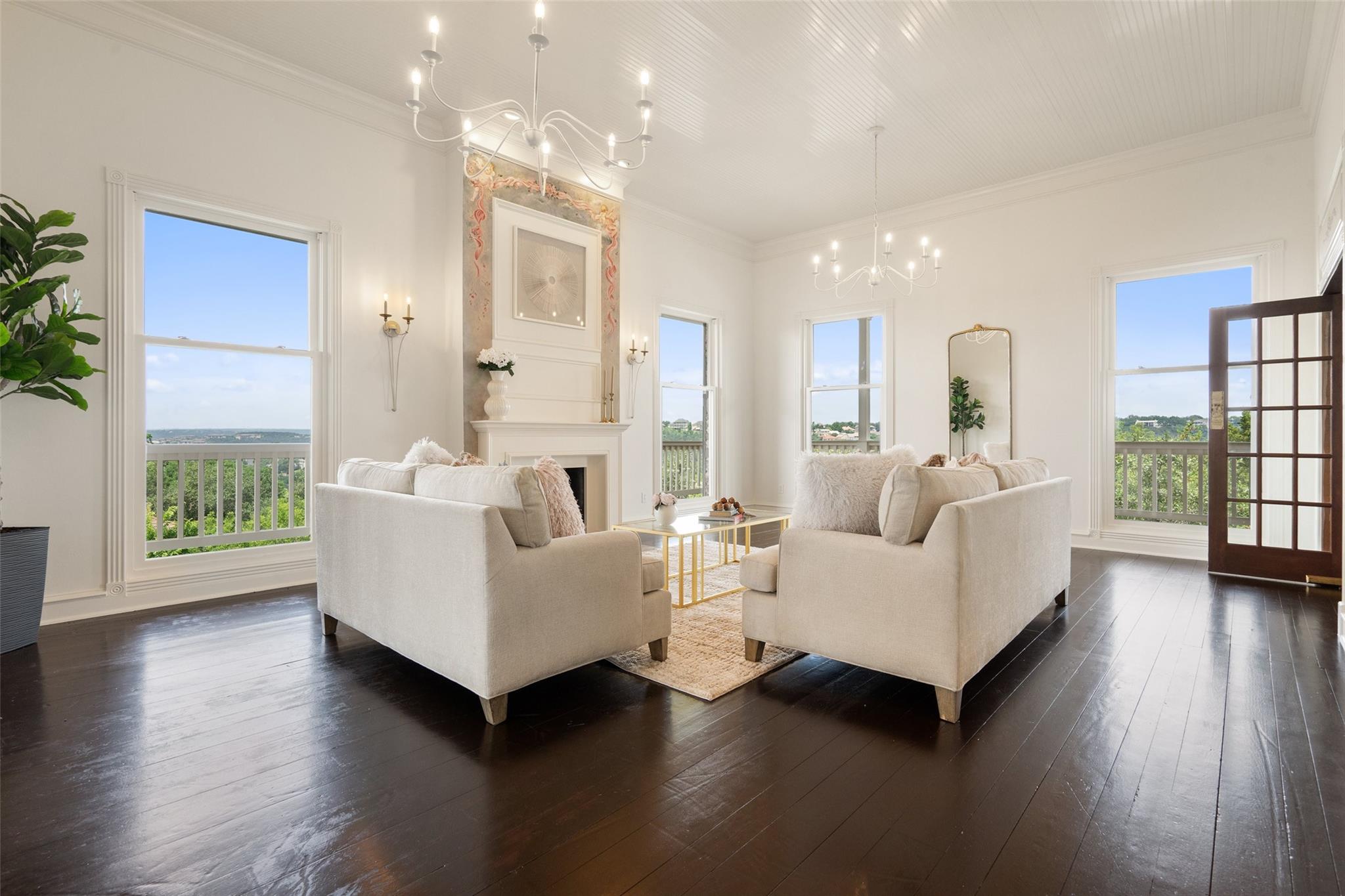 Set on a sprawling hilltop in Northwest Hills, 4321 Far West is a home unparalleled in its architectural mastery, historical significance, and breathtaking views. This 3-story, newly renovated residence exudes elegance and charm, offering a serene retreat in an exceptional locale. Upon arrival, guests are welcomed by a hand-laid stone exterior, hinting at the timeless beauty within. The wraparound outdoor porches offer privacy and luxury, with mesmerizing hill country vistas captivating the imagination. Stepping inside reveals purposeful design and historic grandeur. With 5 bedrooms, 5.5 baths, 5,800 square feet of space, plus a large garage with an apartment above, this home is the perfect backdrop for work, hosting guests, or moments with family. The living area, strategically positioned on the second story, is equipped with a demanding office or den, a grand dining room or lounge, a spacious living room, and an open kitchen, all capturing the stunning 360° views of the surrounding hill country landscape. The meticulously redesigned primary suite located on the first floor, seamlessly blends the home's rich history with modern luxuries and comforts. This incredible estate transcends mere residency—it is a historical retreat embodying a lifestyle of refined taste and architectural wonder. For those seeking a unique and magnificent home, this remarkable property offers an unparalleled opportunity to experience the best that Austin has to offer.