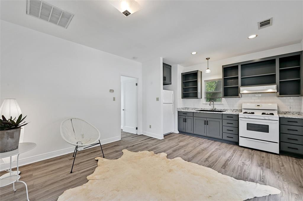 True one bedroom garage apartment in the heart of Hyde Park with lots of natural light. Located on a quiet street, close to shopping and dining, just 2 blocks from tennis/basketball courts and pool at Shipe Park, less than 2 miles to the University of Texas and minutes to Downtown. Designated parking in driveway. Gas included.