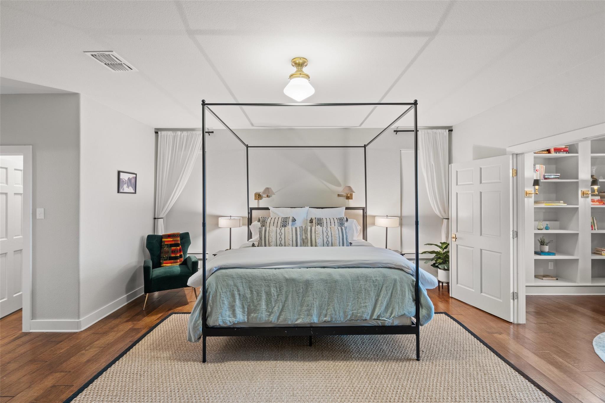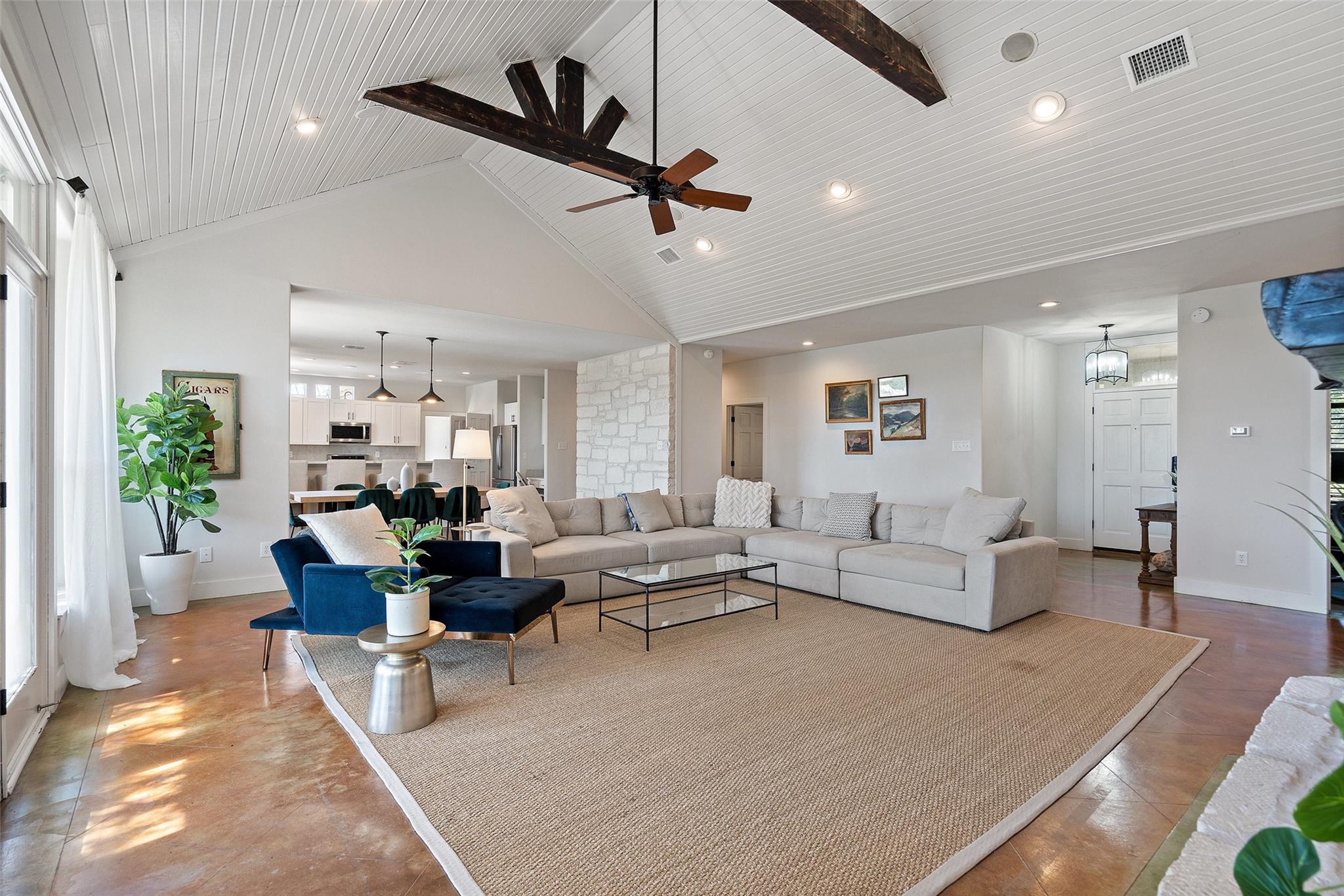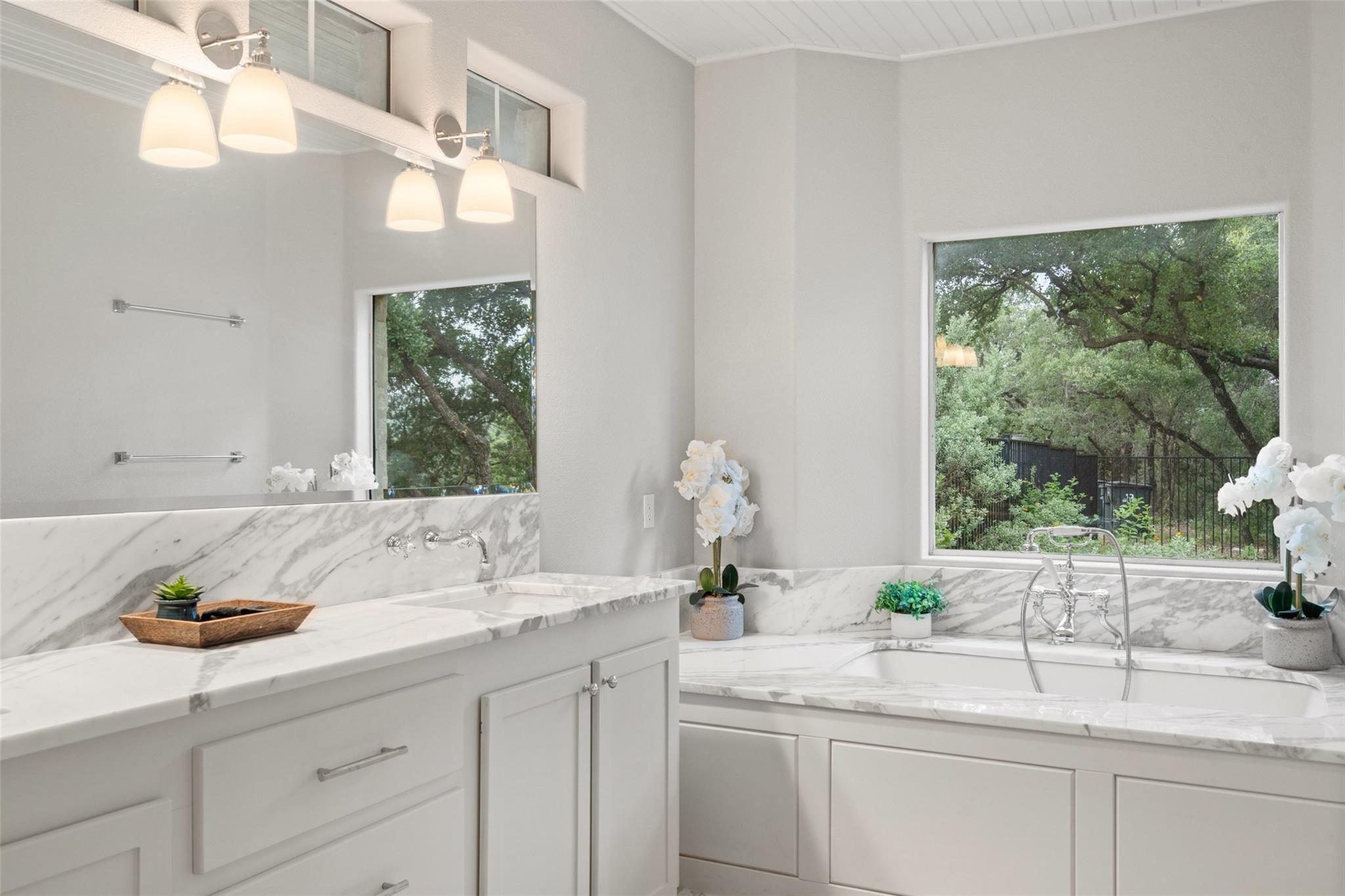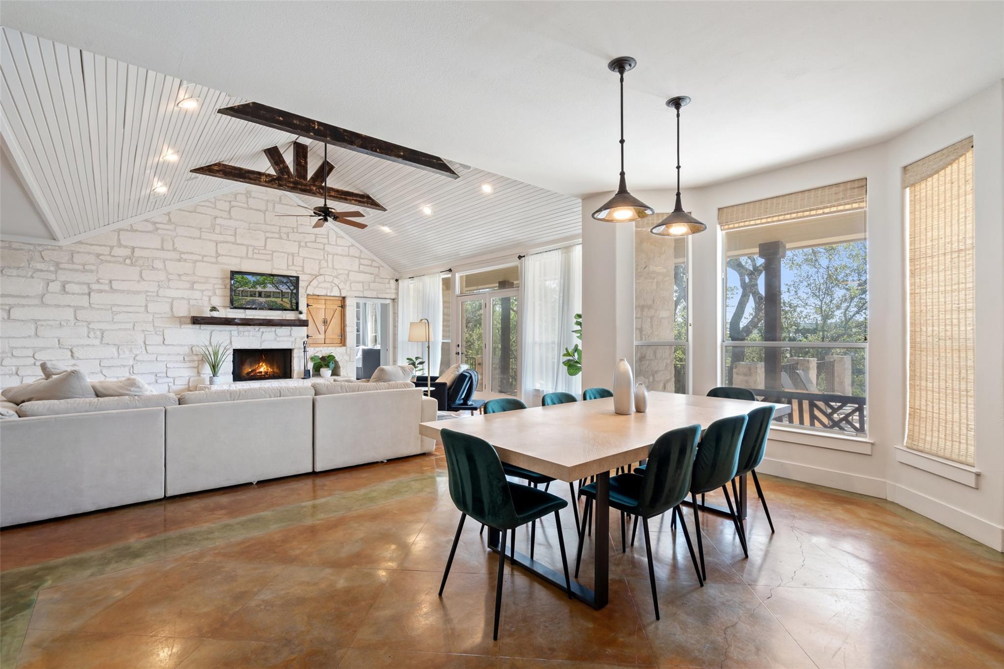 | Interior Features | Two Primary Suties, Bookcases, Breakfast Bar, Built-in Features, Beamed Ceilings, High Ceilings, Vaulted Ceiling(s), Stone Counters, Double Vanity, Eat-in Kitchen, In-Law Floorplan, Multiple Dining Areas, Multiple Living Areas, Natural Woodwork, Open Floorplan, Pantry, Primary Bedroom on Main, Recessed Lighting, Soaking Tub, Storage, Two Primary Closets, Walk-In Closet(s), Washer Hookup, Wired for Sound, See Remarks | |