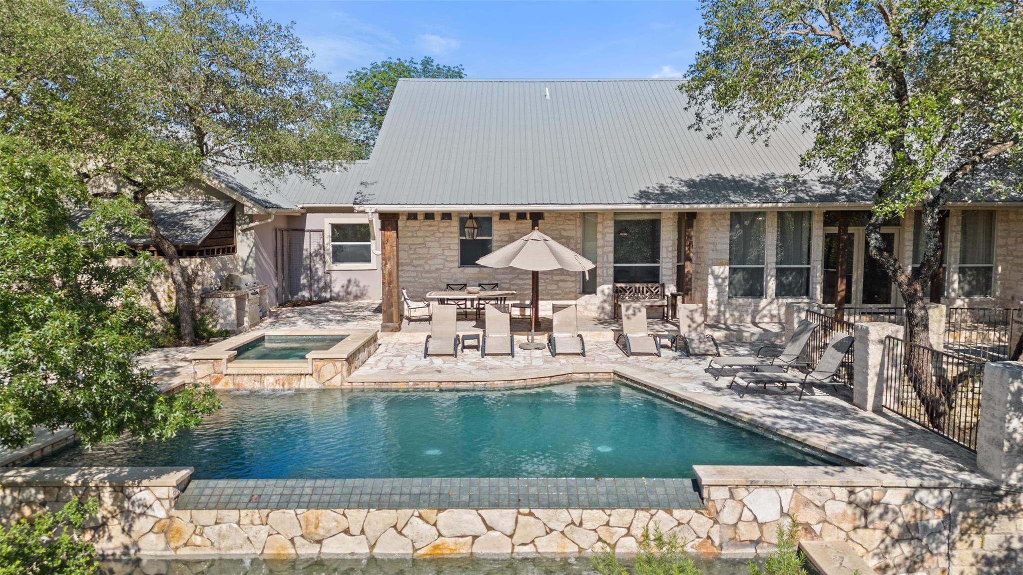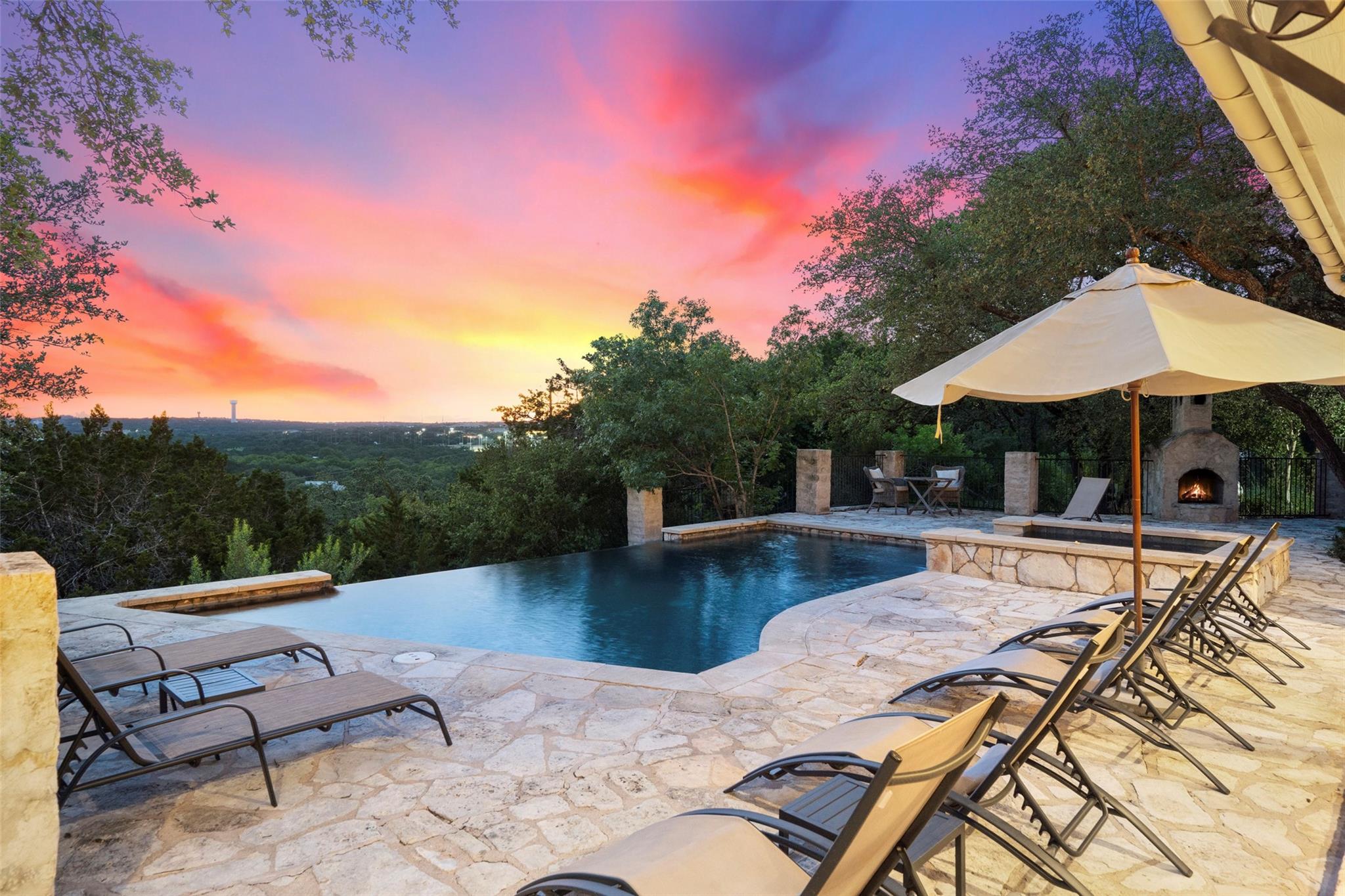 Truly a unicorn, incredible secluded lifestyle residence / vacation home on 8+ very lightly restricted mountaintop acres with expansive views and just 20 minutes from downtown Austin. Classic stone & timber Hill Country ranch style home exudes a warmth, honesty and classic elegance that is authentic and increasingly rare. Extraordinary sunset views from the negative edge pool/ hot tub. The luxurious pool deck features a classic stone fireplace, outdoor bbq area and smoker, waterfall, more - ideal for large gatherings and entertaining or just quiet relaxation. The heart of the main residence is the expansive living room featuring soaring tongue & groove vaulted ceilings, timber trusses and a massive stone fireplace, all exuding true hill country charm. Indoor/ outdoor living spaces that are second to none. Generous master suite itself includes multiple rooms - a library/ sitting area with custom wall to wall bookshelves, through the french doors into the very generous master bedroom, past the double walk-in closets to the exquisite master bathroom. Enjoy the soaking tub while deer and other wildlife walk right past the picture window. Main home is 4 br + office, plus garage apartment with its own spectacular northern views over the detached two car garage/ workshop. Primary or vacation home, short or long term rental, or any combination thereof. Coveted Lake Travis ISD. Shopping + dining just minutes away at the Galleria, but once you enter the gate, wind through the trees, past the wildflowers to the circle drive, it feels like a private mountain oasis. Austin address but low Travis Co/ Bee Caves taxes. Includes both Lots 10 & 11 in The Homestead, one of the best kept secrets in Travis Co, small rural equestrian subdivision with huge wooded lots, luxury homes, voluntary HOA and the kind of freedom & privacy that is almost impossible to find this close in. It’s a special and unique property with a mix of attributes and assets that is nearly impossible to match.