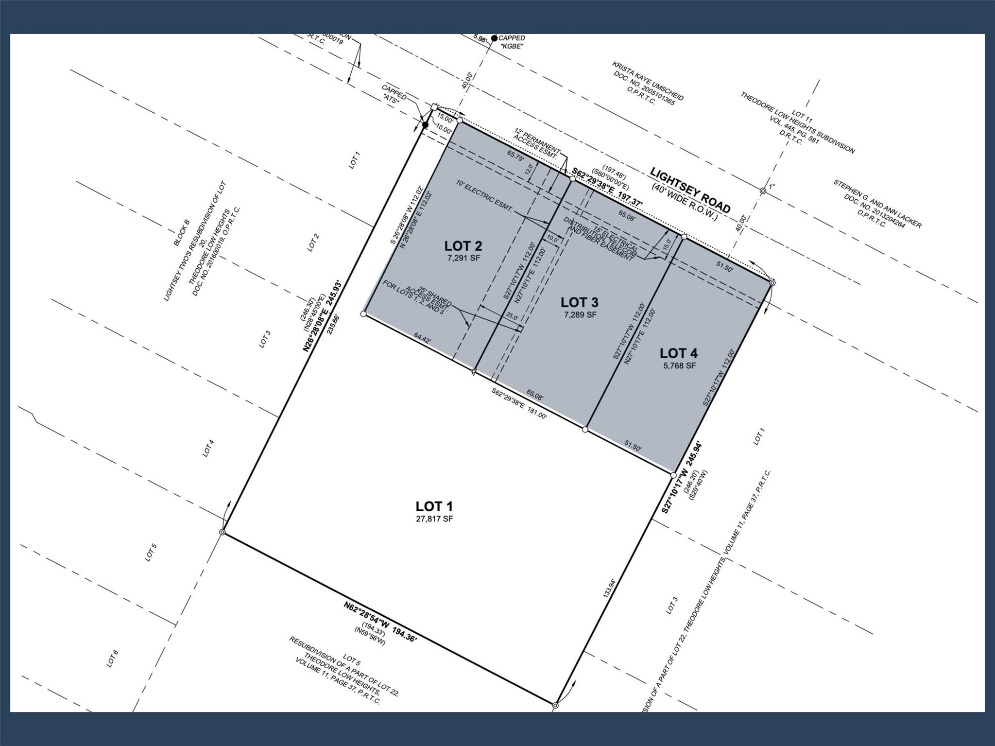 Lightsey Road is a unique builder / investor opportunity in 78704 which allows up to 5 units on the front three lots. This listing includes three legal lots (1717, 1713 and 1709 Lightsey Road) totaling 20,348 square feet. A feasibility study has been conducted to show what can be built on the front 3 lots (5 units). We also have 1801 Lightsey Road for sale (MLS #6950854) which includes the entire parcel (1801, 1717, 1713 and 1709 Lightsey - 4 legal lots totaling 47,000 square feet). This is an unbelievably rare opportunity to own over an acre in Central Austin with views of Downtown! Build your private estate or build a multi-family community. The back lot currently has two structures on it, including a one-of-a-kind ferro-concrete dome with a viewing tower for a fantastic view of Downtown Austin. Tucked away in the quiet pocket of Low Theodore Heights, this tree-lined area is close to everything that Central Austin has to offer with easy access to major highways!