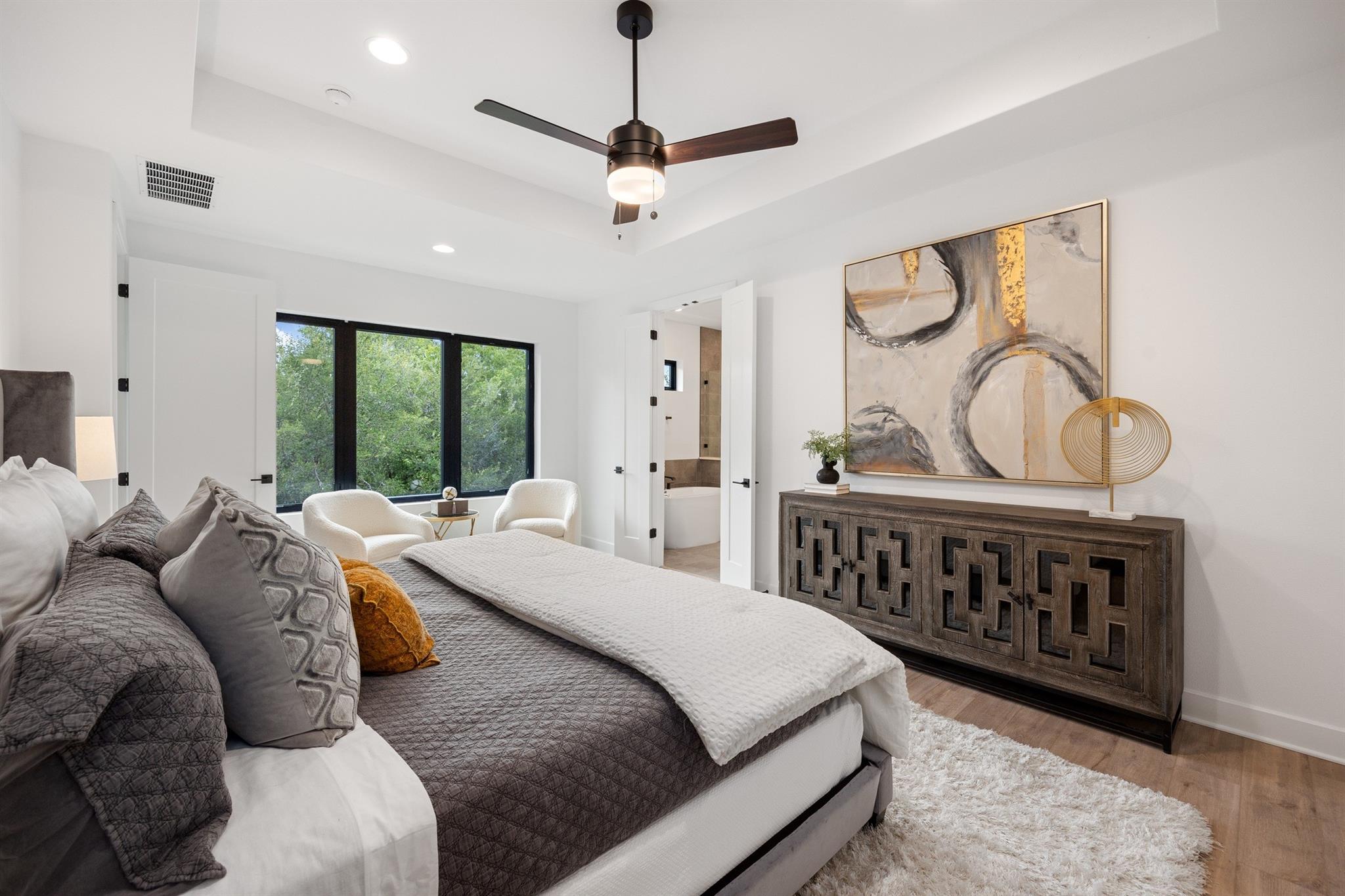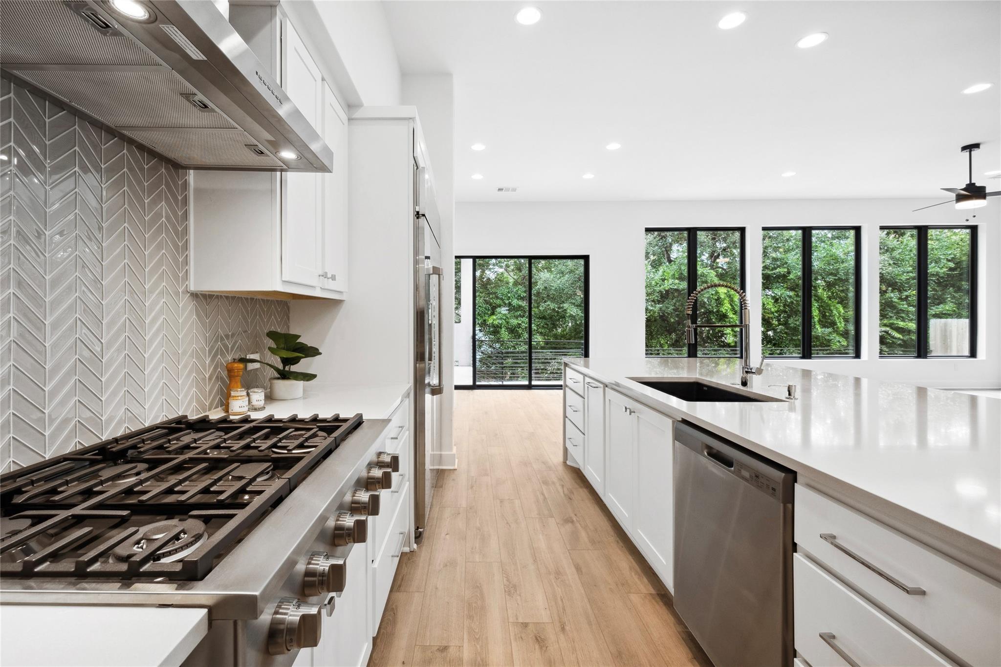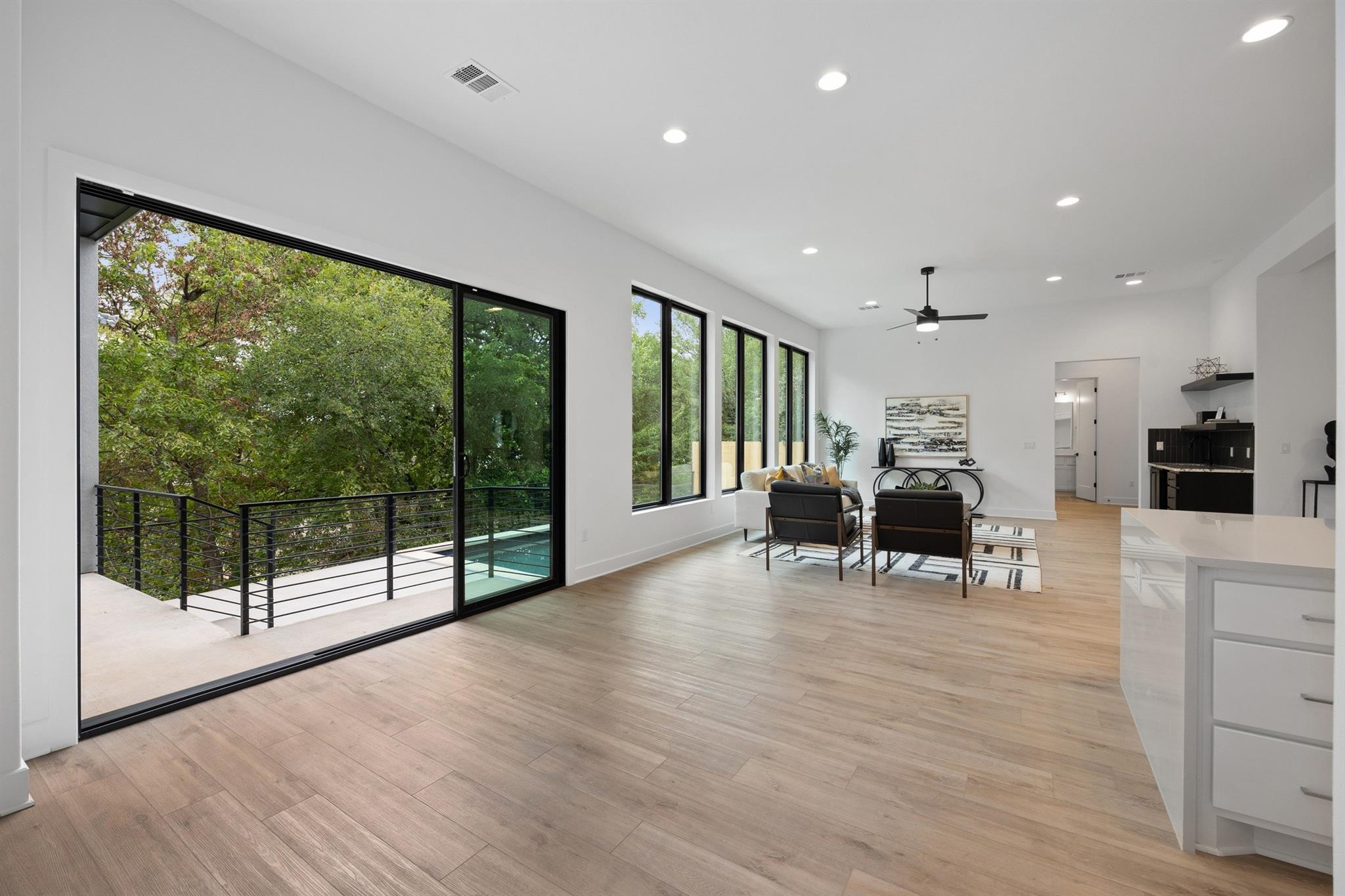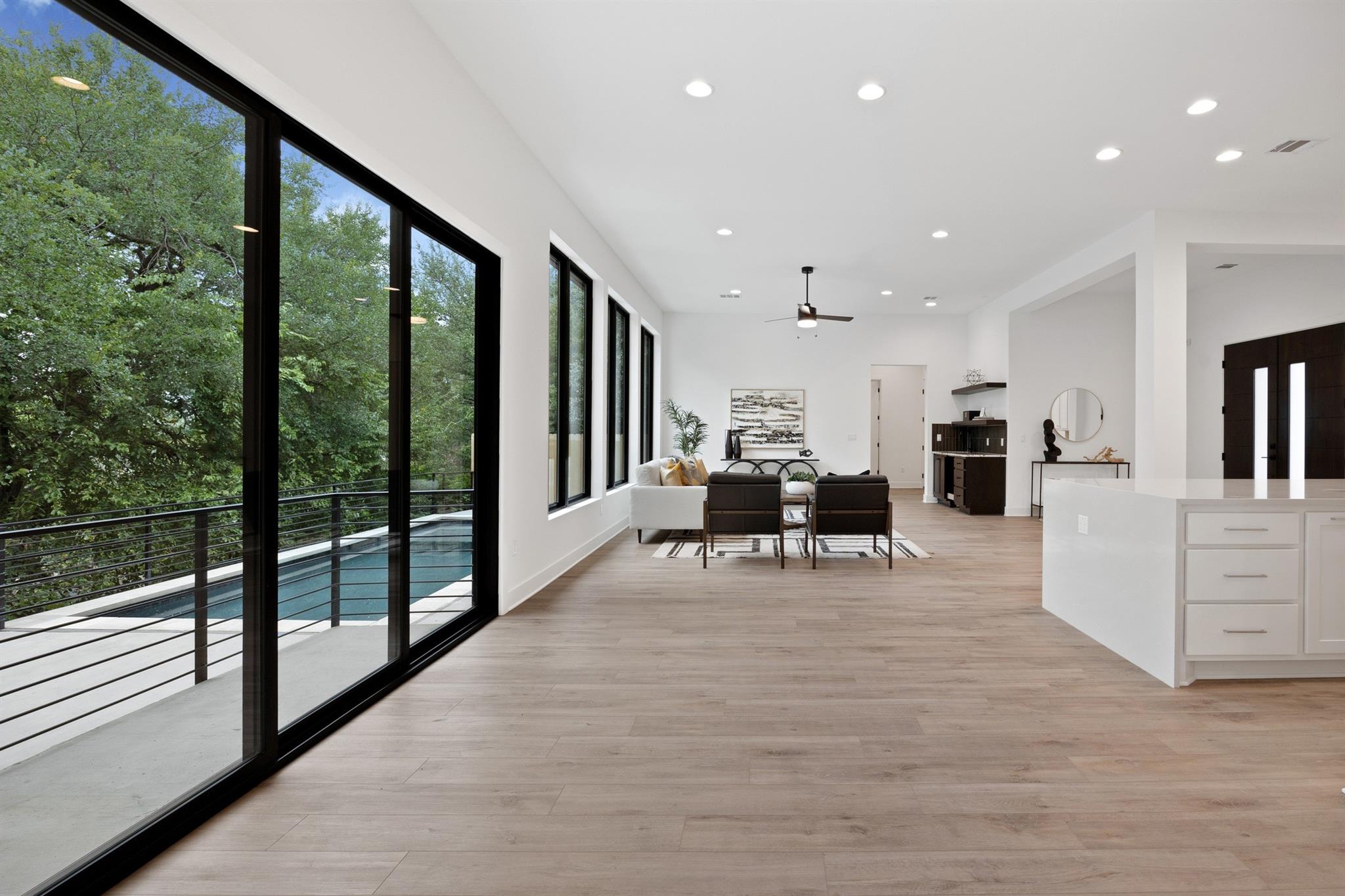 A spacious and beautiful new construction home with a pool and views among the treetops. Located on a quiet corner in sought after Rosedale near Ramsey Park and tons of amazing retail, food and entertainment, this new home checks all the boxes. Intently designed with modern, sleek, sophisticated finishes. Two living spaces, indoor and outdoor dining, oversized walk-in pantry, spacious living areas, 12 foot ceilings with wet bar and so much more. 5 beds plus office and 5 baths on a quarter acre lot that backs to a private row of trees and greens. Your first floor is made for entertaining and living well with an open concept living/kitchen. Mornings and evenings are easy with ample cabinetry in the kitchen, GE Cafe appliances, Moen fixtures throughout, an oversized island, double oven, six burner stove and large pantry/storage. Seller will order fridge of buyer's choosing. The dining room is just off the kitchen with a relaxing green view and sliders to the back patio. A guest bed and bath are tucked away from the main living space offering accessible privacy. The first floor also includes an office overlooking the pool and trees and a pool bath with immediate access to the pool and back area. The pool offers a Hydrazzo finish with a beach area and is next to an outdoor kitchen area ready for gas appliances. There is 1500sqft of back yard space beyond the pool fence! Upstairs you'll find a large second living area and oversized laundry utility room. A spacious primary suite with more treetop serene views offers a spa-like bathroom. Three additional bedrooms are located up, two connected via a beautiful jack and jill bath while the third has access to its own bath. Feeds to highly acclaimed Bryker Woods Elementary School/O. Henry Middle/Austin High. The front yard offers plenty of green space at a quiet location where Shoalwood ends for very little traffic. Just blocks from Uchiko, Ramsey Park, Taco Deli, the Triangle, Kerbey Lane, Tiny Boxwoods and much much more.