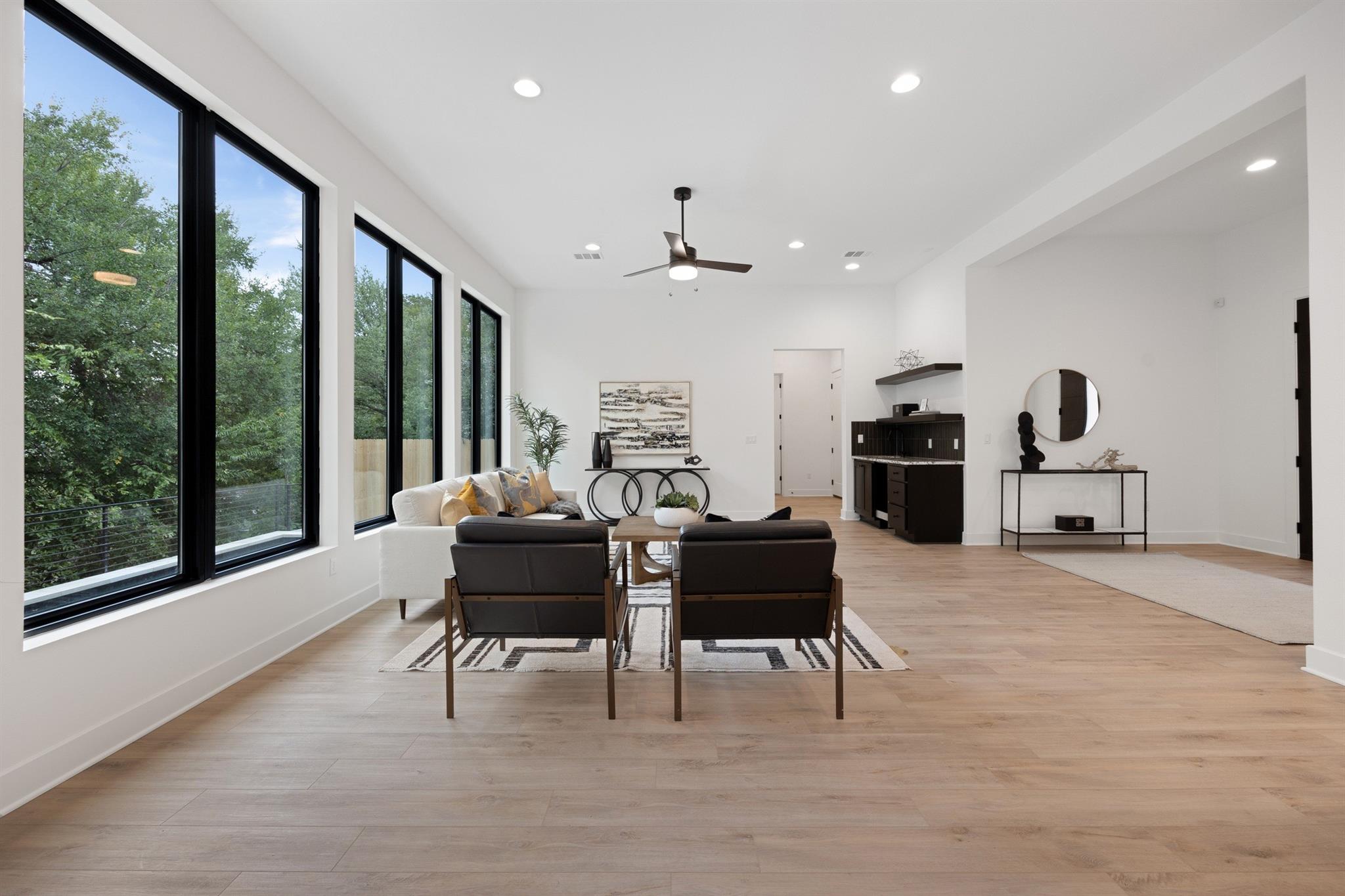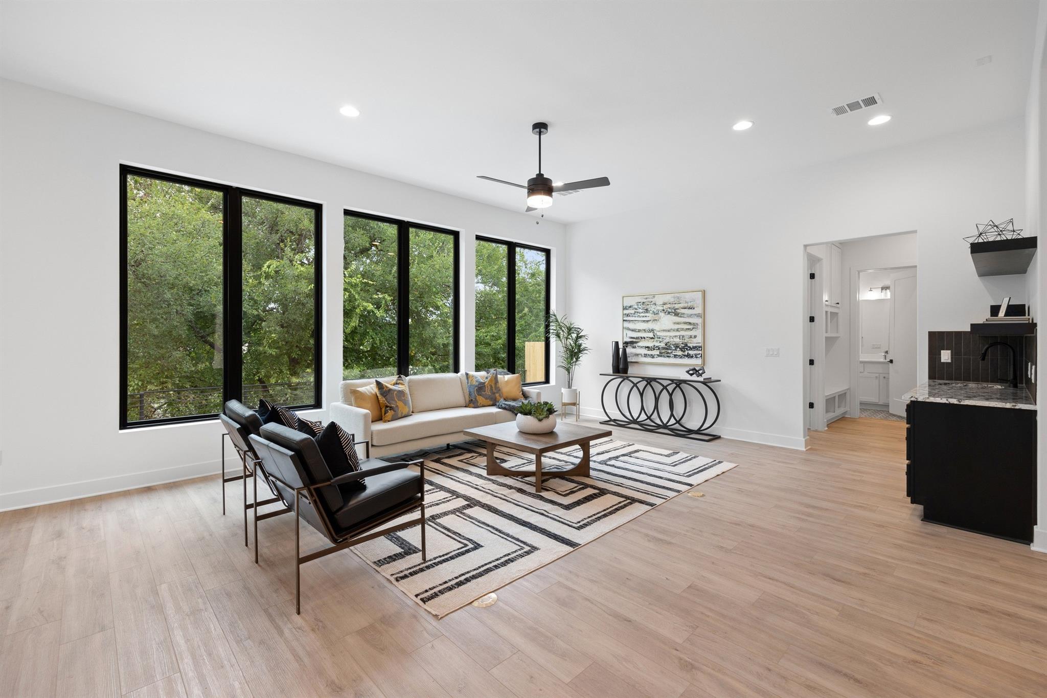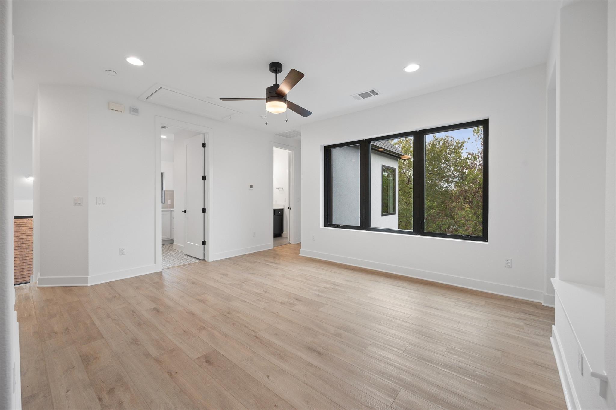 A spacious and beautiful new construction home with a pool and views among the treetops. Located on a quiet corner in sought after Rosedale near Ramsey Park and tons of amazing retail, food and entertainment, this new home checks all the boxes. Intently designed with modern, sleek, sophisticated finishes. Two living spaces, indoor and outdoor dining, oversized walk-in pantry, spacious living areas, 12 foot ceilings with wet bar and so much more. 5 beds plus office and 5 baths on a quarter acre lot that backs to a private row of trees and greens. Your first floor is made for entertaining and living well with an open concept living/kitchen. Mornings and evenings are easy with ample cabinetry in the kitchen, GE Cafe appliances, Moen fixtures throughout, an oversized island, double oven, six burner stove and large pantry/storage. Seller will order fridge of buyer's choosing. The dining room is just off the kitchen with a relaxing green view and sliders to the back patio. A guest bed and bath are tucked away from the main living space offering accessible privacy. The first floor also includes an office overlooking the pool and trees and a pool bath with immediate access to the pool and back area. The pool offers a Hydrazzo finish with a beach area and is next to an outdoor kitchen area ready for gas appliances. There is 1500sqft of back yard space beyond the pool fence! Upstairs you'll find a large second living area and oversized laundry utility room. A spacious primary suite with more treetop serene views offers a spa-like bathroom. Three additional bedrooms are located up, two connected via a beautiful jack and jill bath while the third has access to its own bath. Feeds to highly acclaimed Bryker Woods Elementary School/O. Henry Middle/Austin High. The front yard offers plenty of green space at a quiet location where Shoalwood ends for very little traffic. Just blocks from Uchiko, Ramsey Park, Taco Deli, the Triangle, Kerbey Lane, Tiny Boxwoods and much much more.