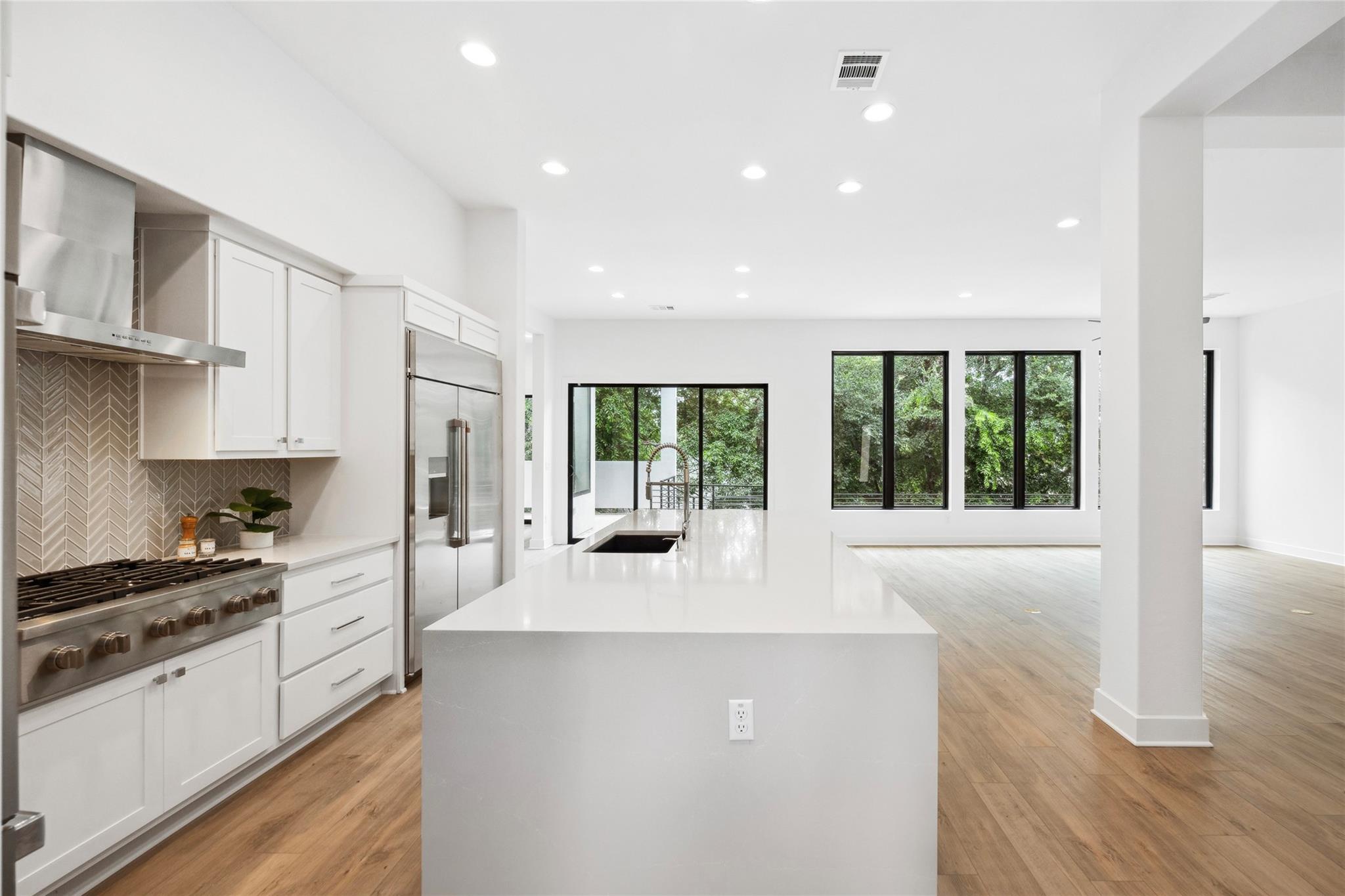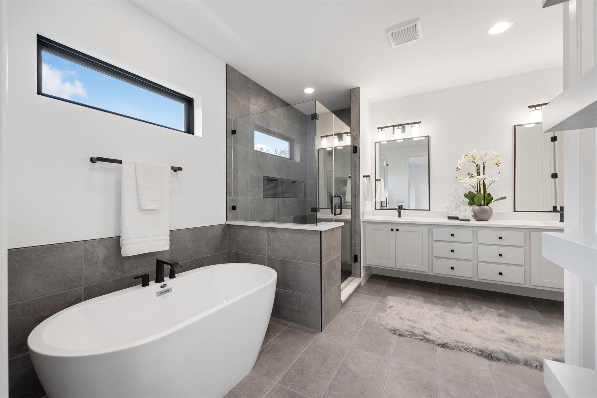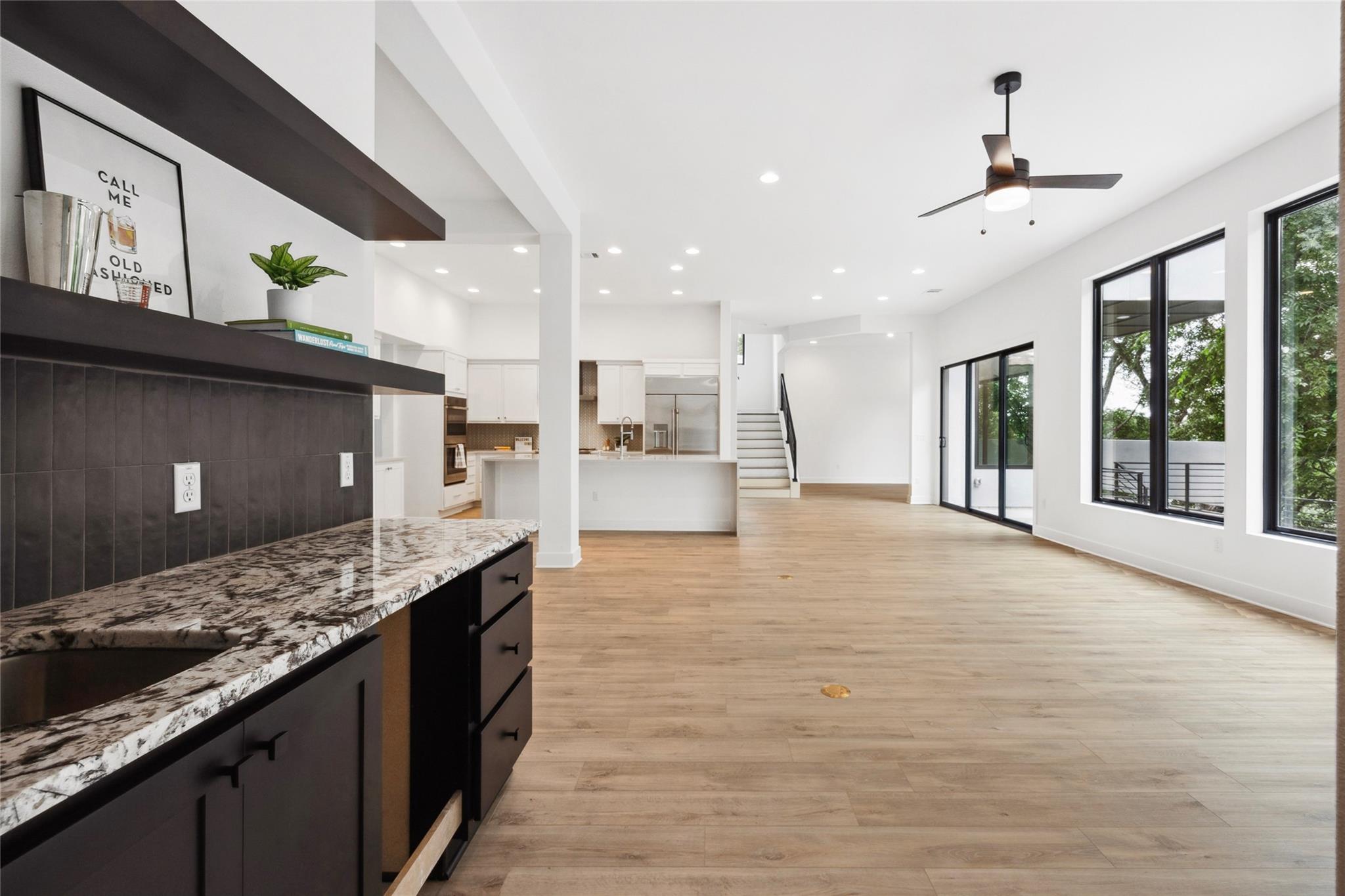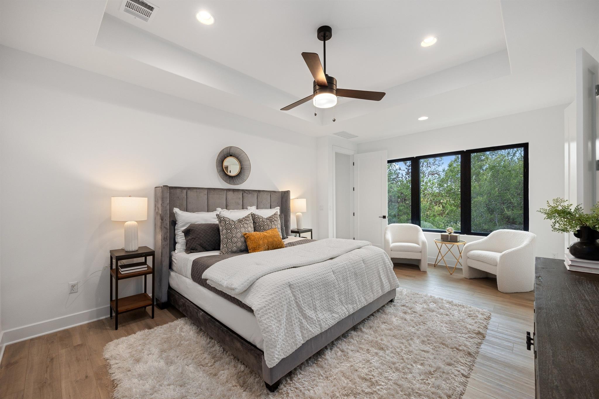 A spacious and beautiful new construction home with a pool and views among the treetops. Located on a quiet corner in sought after Rosedale near Ramsey Park and tons of amazing retail, food and entertainment, this new home checks all the boxes. Intently designed with modern, sleek, sophisticated finishes. Two living spaces, indoor and outdoor dining, oversized walk-in pantry, spacious living areas, 12 foot ceilings with wet bar and so much more. 5 beds plus office and 5 baths on a quarter acre lot that backs to a private row of trees and greens. Your first floor is made for entertaining and living well with an open concept living/kitchen. Mornings and evenings are easy with ample cabinetry in the kitchen, GE Cafe appliances, Moen fixtures throughout, an oversized island, double oven, six burner stove and large pantry/storage. Seller will order fridge of buyer's choosing. The dining room is just off the kitchen with a relaxing green view and sliders to the back patio. A guest bed and bath are tucked away from the main living space offering accessible privacy. The first floor also includes an office overlooking the pool and trees and a pool bath with immediate access to the pool and back area. The pool offers a Hydrazzo finish with a beach area and is next to an outdoor kitchen area ready for gas appliances. There is 1500sqft of back yard space beyond the pool fence! Upstairs you'll find a large second living area and oversized laundry utility room. A spacious primary suite with more treetop serene views offers a spa-like bathroom. Three additional bedrooms are located up, two connected via a beautiful jack and jill bath while the third has access to its own bath. Feeds to highly acclaimed Bryker Woods Elementary School/O. Henry Middle/Austin High. The front yard offers plenty of green space at a quiet location where Shoalwood ends for very little traffic. Just blocks from Uchiko, Ramsey Park, Taco Deli, the Triangle, Kerbey Lane, Tiny Boxwoods and much much more.