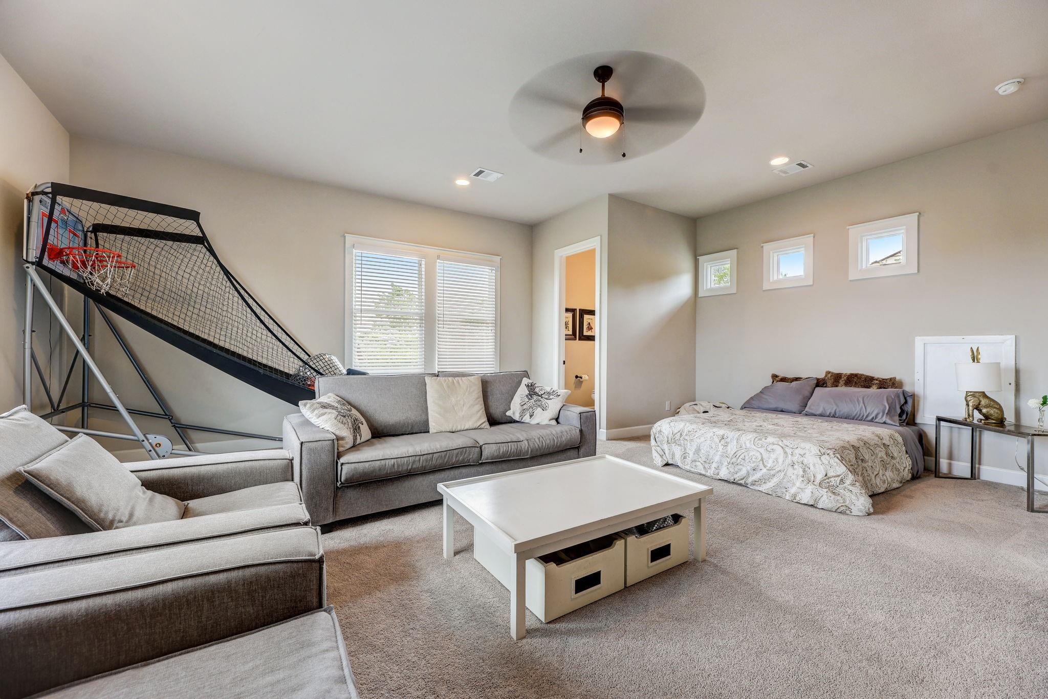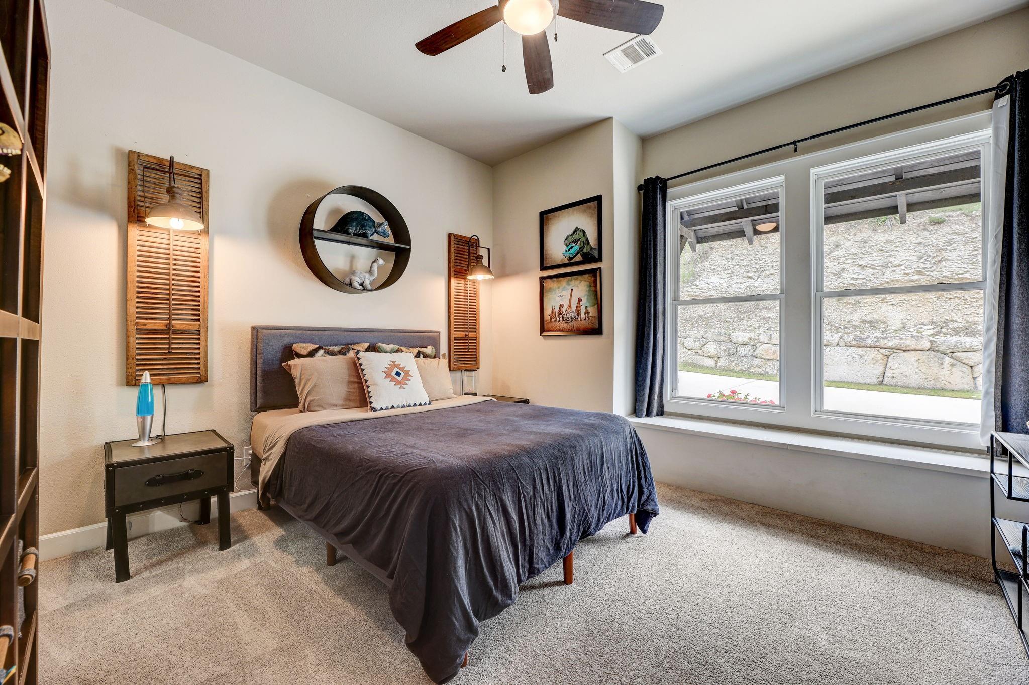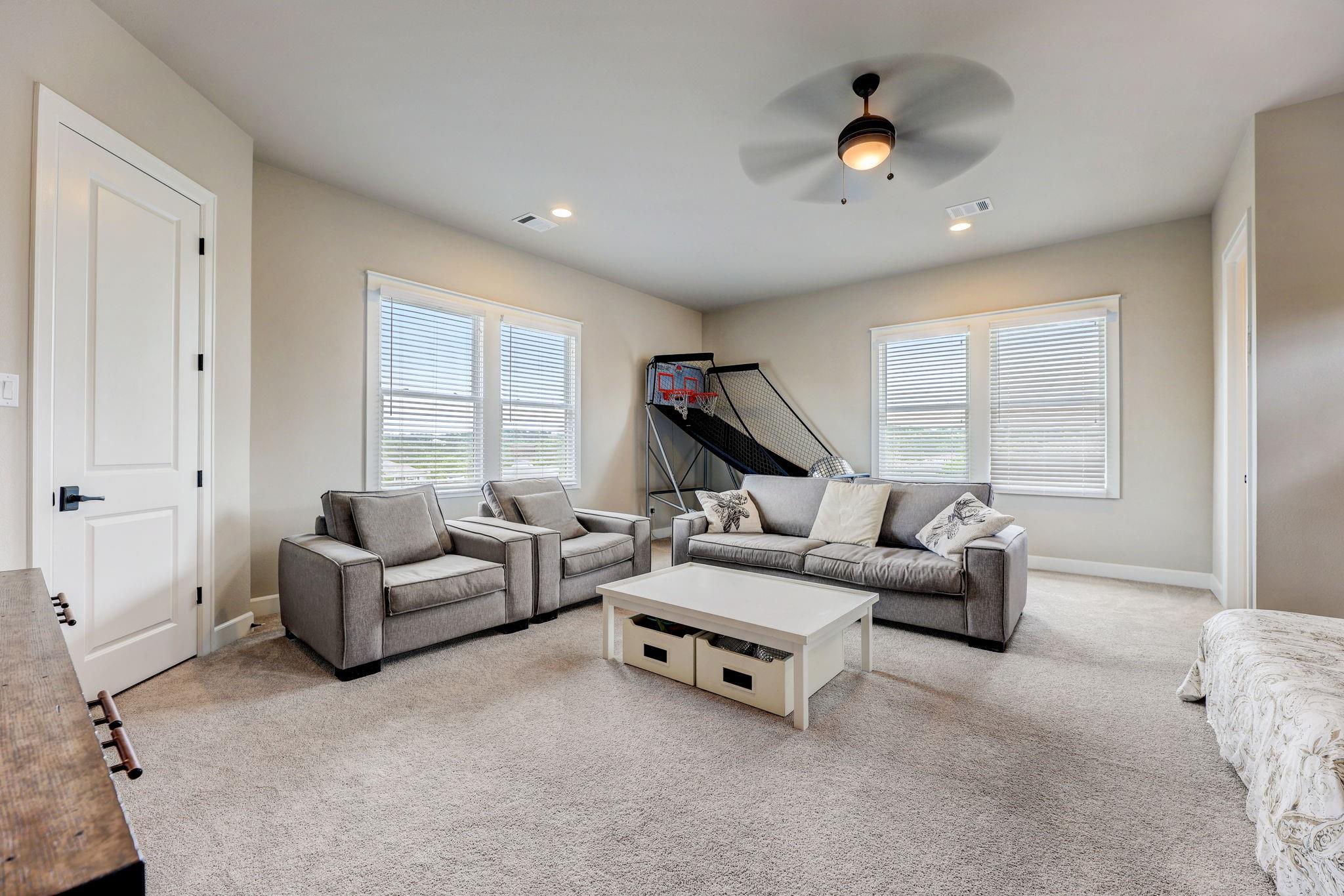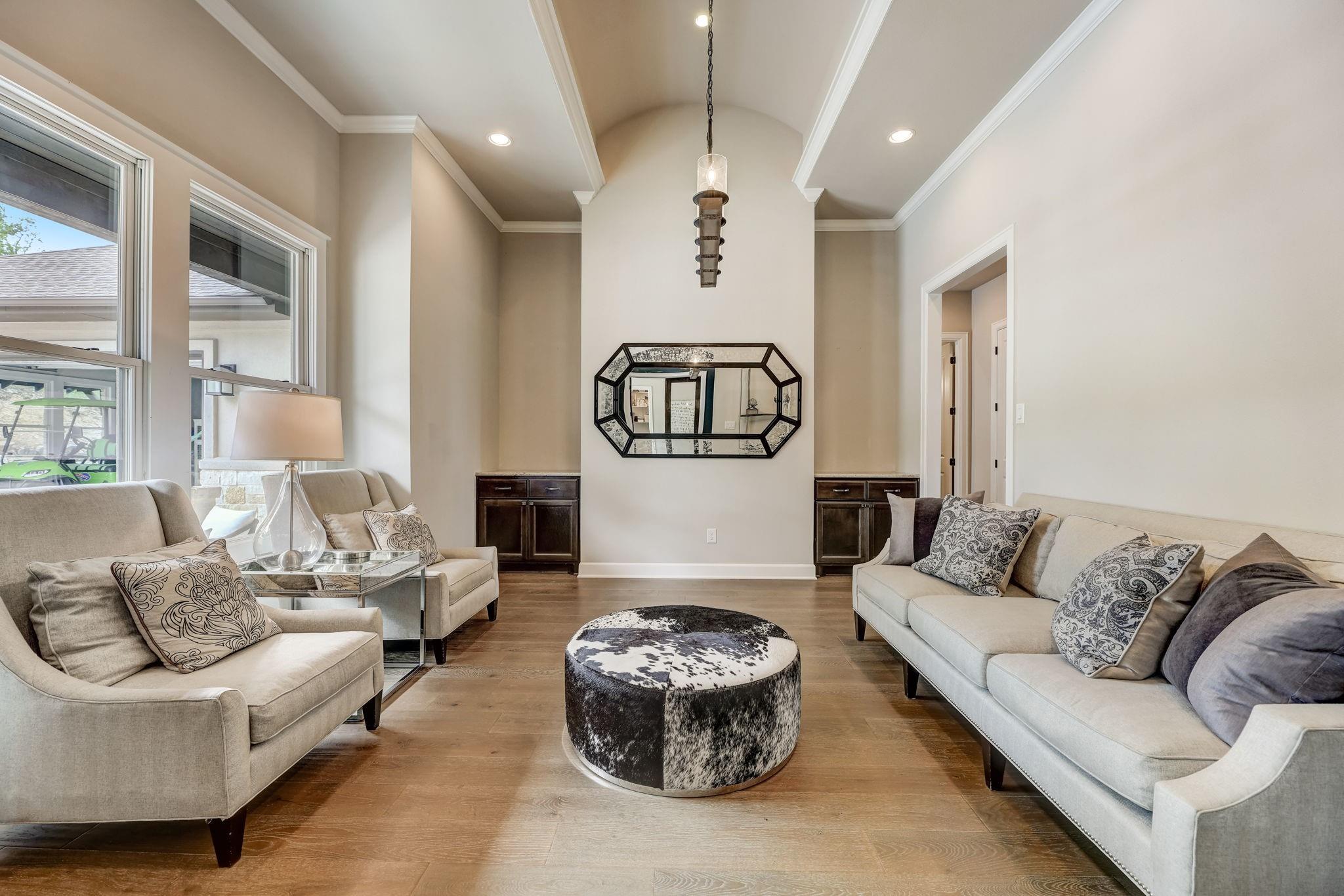 Hill Country luxury awaits in this stunning custom home set on one of the largest estate lots in the exclusive gated community of Grand Mesa at Crystal Falls with a sprawling 3.4-acre lot with almost 180-degree hill country views that will never be altered. With plenty of acreage on the lot to add supplemental space; a separate dwelling for company, fun, and storage or to transform the current separate garage (currently with ½ bath) to a guest house, or for your specific personal needs. Originally the builder's personal home, this backyard oasis features an in-ground pool complemented by an optional hot tub, a cabana, fire pit, and a huge covered patio with a built-in outdoor kitchen. All bedrooms, along with a flexible office space with closet (could be 5th bedroom), are conveniently located on the main level, offering the comfort of a single-story home. The master suite is a private escape, complete with a spa-like bath and two generous walk-in closets. Upstairs, the spacious game room with a half bath provides additional leisure space and/or option 5th bedroom. The spacious open floor plan features large light-filled rooms, and modern, luxurious touches like hand-scraped hardwood floors and designer lighting. The gourmet kitchen offers top-of-the-line stainless steel appliances, a large center island, and a cozy breakfast area - all overlooking the family room. Storage is plentiful with an oversized attached garage and an additional detached garage with a half bath. Situated close to schools, entertainment, medical facilities, shopping, and The Highland Lakes, with access to two amenity centers featuring pools, splash pad, parks, playgrounds, sand volleyball, tennis courts, fishing lake, and outdoor pavilion. Zoned for the highly-rated schools within Leander ISD. Schedule a showing today.