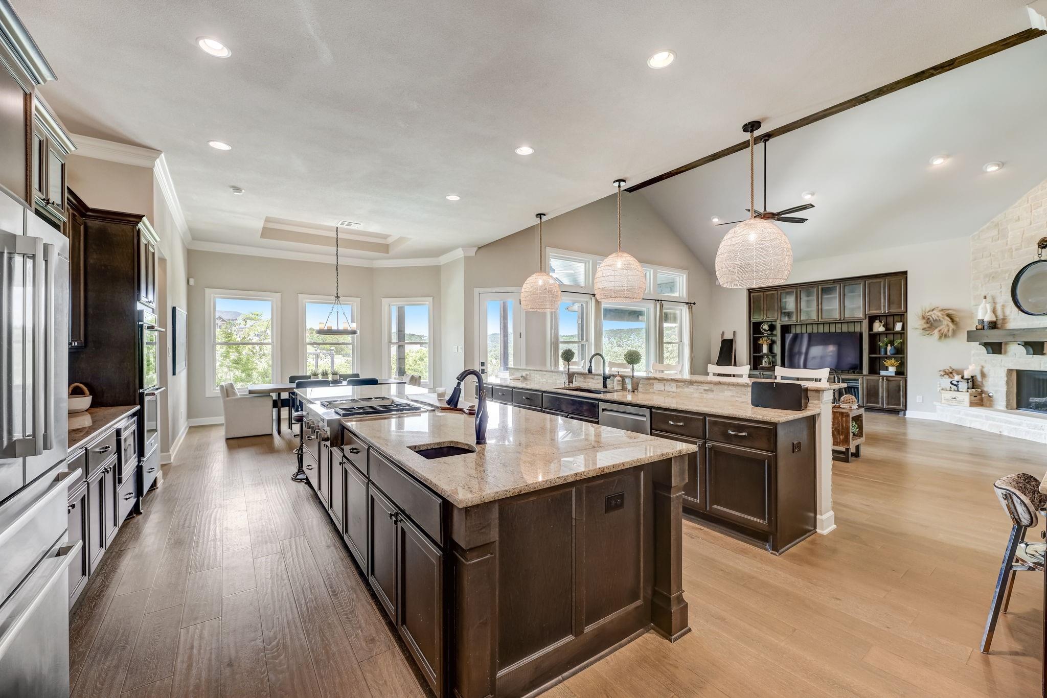 | Interior Features | Bar, Bookcases, Breakfast Bar, Built-in Features, Ceiling Fan(s), Beamed Ceilings, Cathedral Ceiling(s), High Ceilings, Vaulted Ceiling(s), Chandelier, Granite Counters, Crown Molding, Double Vanity, Electric Dryer Hookup, Entrance Foyer, French Doors, Kitchen Island, Multiple Dining Areas, Multiple Living Areas, Open Floorplan, Pantry, Primary Bedroom on Main, Recessed Lighting, Storage, Two Primary Closets, Walk-In Closet(s), Washer Hookup, Wired for Sound | |