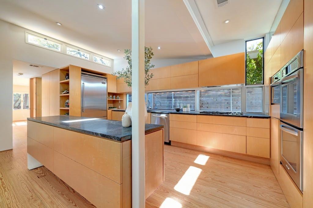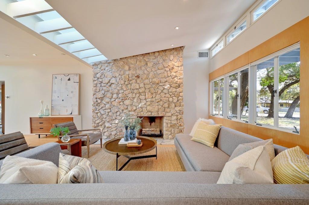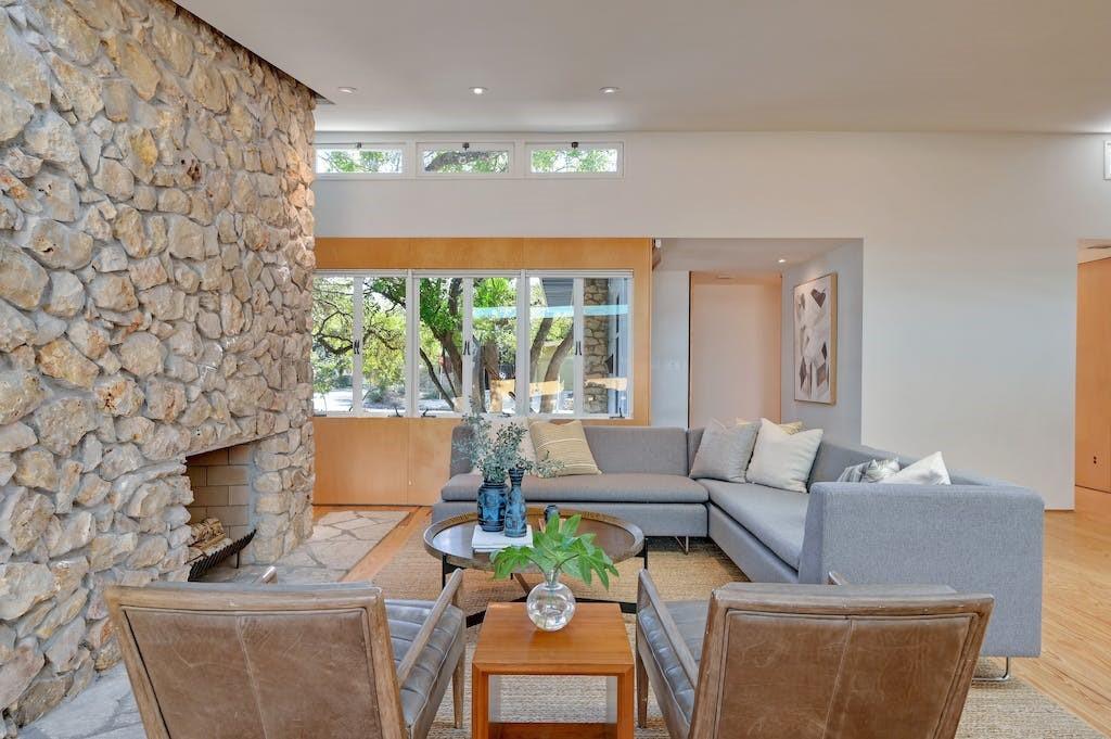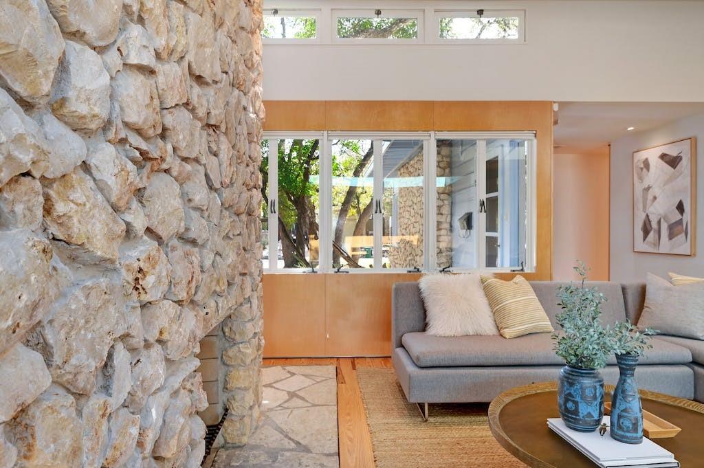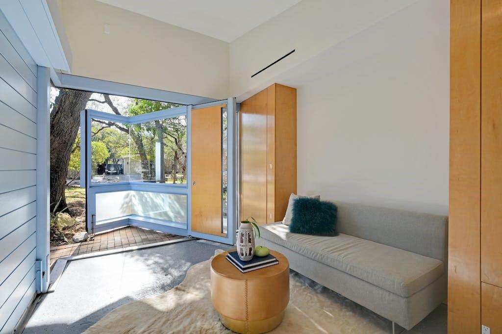Nestled in the heart of Zilker Park, this exceptional mid-century modern home is a testament to the timeless design of renowned designer / builder AD Stenger, enhanced by the visionary touch of architect MJ Neal in 2009 and further elevated in 2016. This property seamlessly blends mid-century charm with modern sophistication. Originally built in 1950, this home retains the original lines and low profile exterior and features signature AD Stenger clerestory windows and stone fireplace. In 2009, MJ Neal remodeled the entire home with a modern twist. The project featured an open gourmet kitchen with soapstone counters and Viking appliances, custom maple cabinetry and paneling to compliment the pine floors, walls of glass opening to a central atrium, updated baths including a primary glass shower overlooking a private side atrium and a massive central skylight that floods the interior with natural light. In 2016, the award winning "transformer room" was created to connect the interior to the exterior via architectural walls featuring a modern drawbridge and custom glass corner that hinges open to the neighborhood. Don't miss the opportunity to own a piece of Austin's architectural history with this meticulously updated mid-century masterpiece.