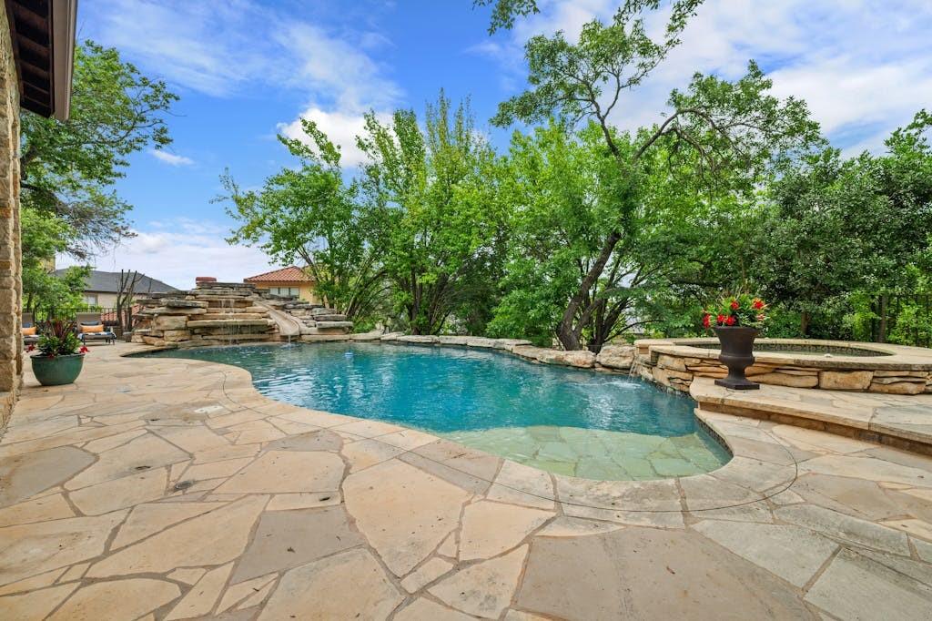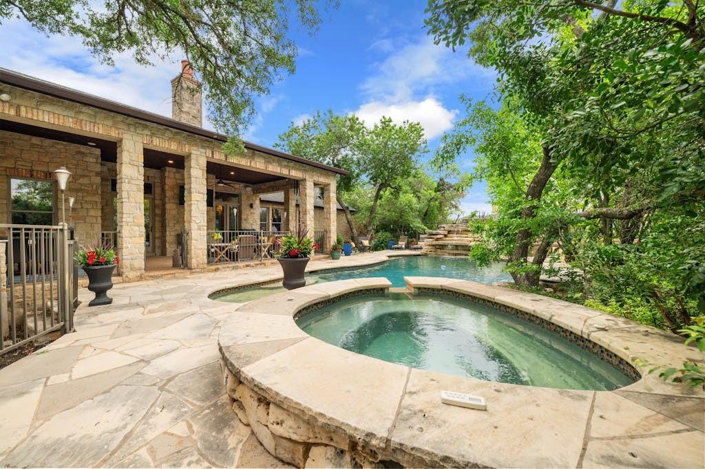 Experience unparalleled comfort and style in this stunning 5-bedroom estate in the prestigious, gated section of Lake Pointe. This residence offers an abundance of indoor space with soaring ceilings, large bedrooms and an incredible amount of storage. The downstairs living area offers gorgeous ceilings and multiple entertainment areas that all flow seamlessly out to the large covered patio through two pairs of French doors. 4 generously sized bedrooms and 3.5 updated bathrooms downstairs provide ample space for family and guests. Upstairs, discover a private retreat featuring an additional bedroom with a full bath, perfect for a home office, media room, or guest suite. A massive walk-in attic & additional storage behind the utility room ensure you have a place for everything. Step outside to create lasting memories in your own private paradise. The sparkling pool w/a slide beckons for refreshing dips, while the expansive covered patio offers the perfect spot for alfresco dining and lounging. Enjoy serene evenings under the Texas sky, surrounded by the tranquil cul-de-sac setting. Enhance the ambience year-round with extensive landscape lighting package, and never miss a festive occasion w/the permanent installed holiday lighting. The gated porte-cochère adds a touch of elegance & provides convenient covered parking & the detached 3rd garage offers an opportunity for a home gym or studio. Never worry about finding a spot for extra vehicles with the abundance of additional parking available. Start your day with a walk through the flat neighborhood, unwind with an evening gathering on the patio, or simply relax and soak in the peacefulness of your surroundings. Within walking distance to Lake Austin, the Hill Country Galleria and exemplary Lake Pointe Elementary, this home offers so much convenience. You’ll love having 3 routes downtown via Bee Cave Rd, Southwest Parkway or 71. Visit today!
