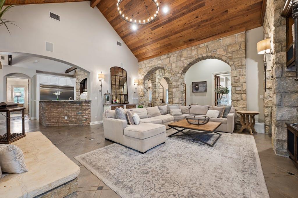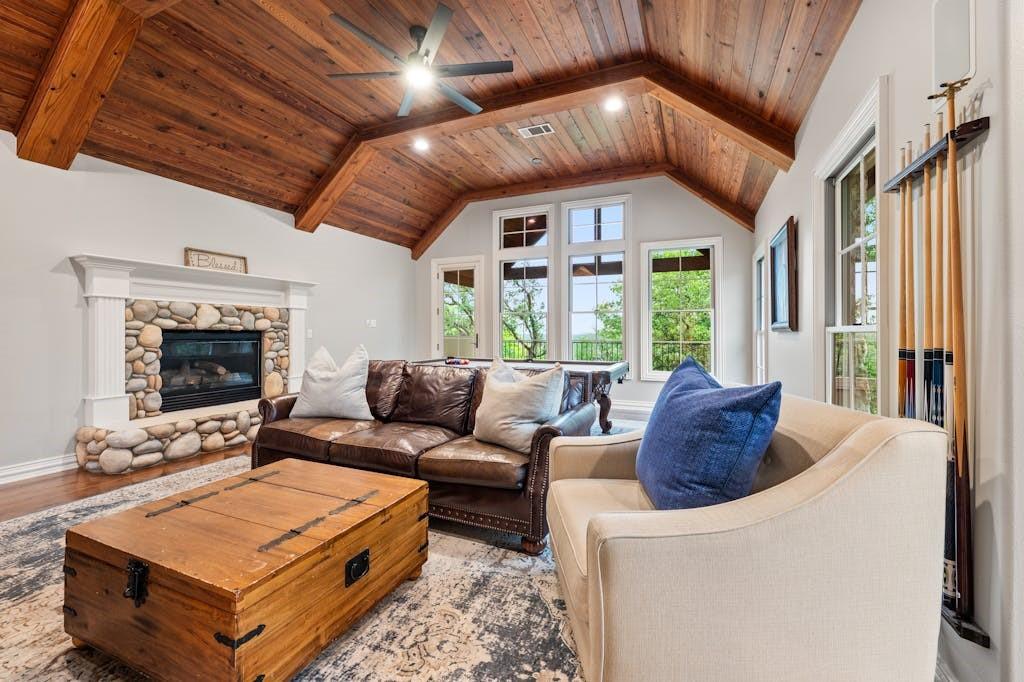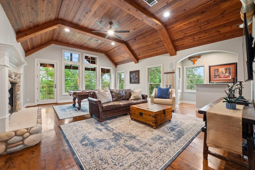 | Interior Features | Ceiling Fan(s), Beamed Ceilings, High Ceilings, Vaulted Ceiling(s), Double Vanity, Eat-in Kitchen, Entrance Foyer, Interior Steps, Kitchen Island, Multiple Dining Areas, Multiple Living Areas, Pantry, Primary Bedroom on Main, Soaking Tub | |